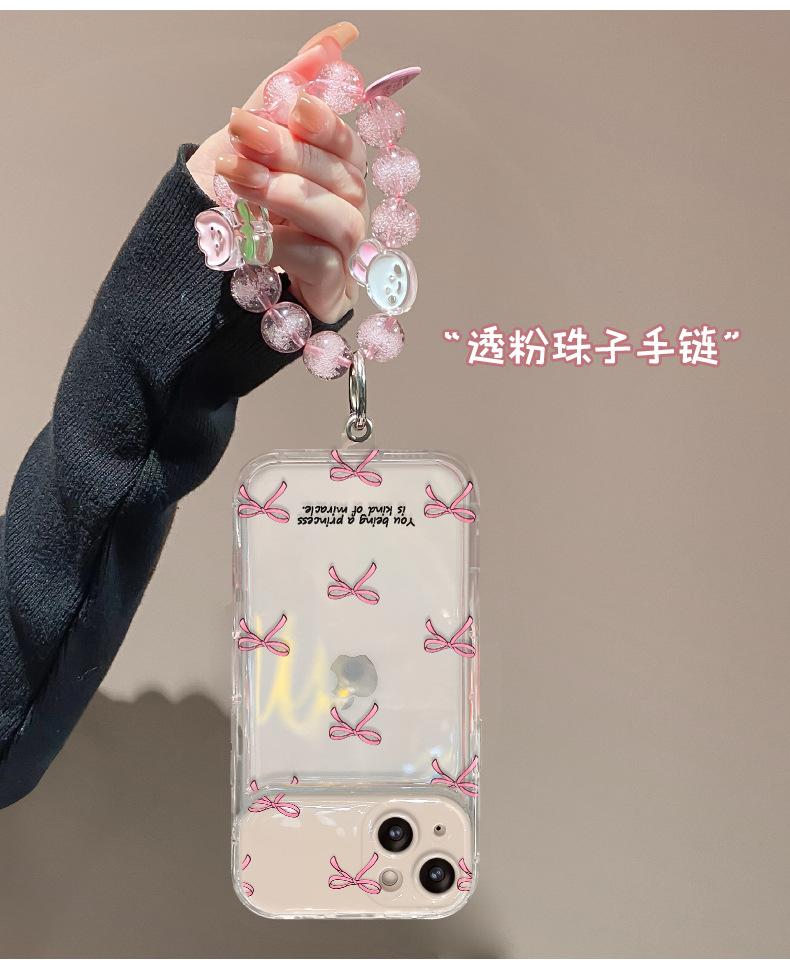 Transparent Shell full screen bow + h380 transparent pink round beads rabbit film bracelet