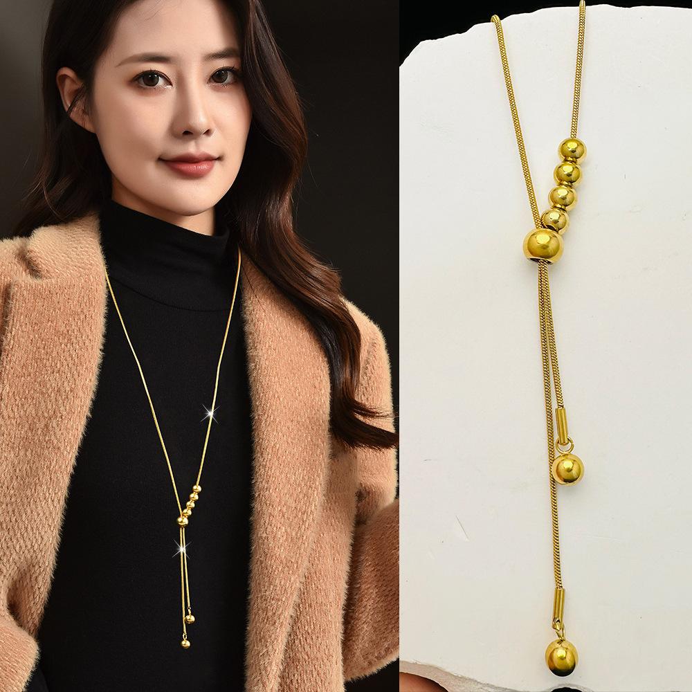 Elegante collar de acero de titanio con borlas y bola de acero, nuevo, sencillo y de doble uso, de alta calidad, para mujer
