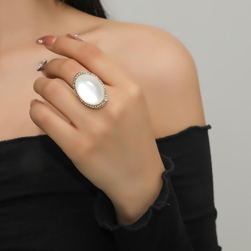 Moda Europea y Americana, Anillo Personalizado y Creativo Nuevo con Incrustaciones de Diamantes en Forma Ovalada, Simple y Elegante, Anillo Ojo de Gato Clásico y Moderno