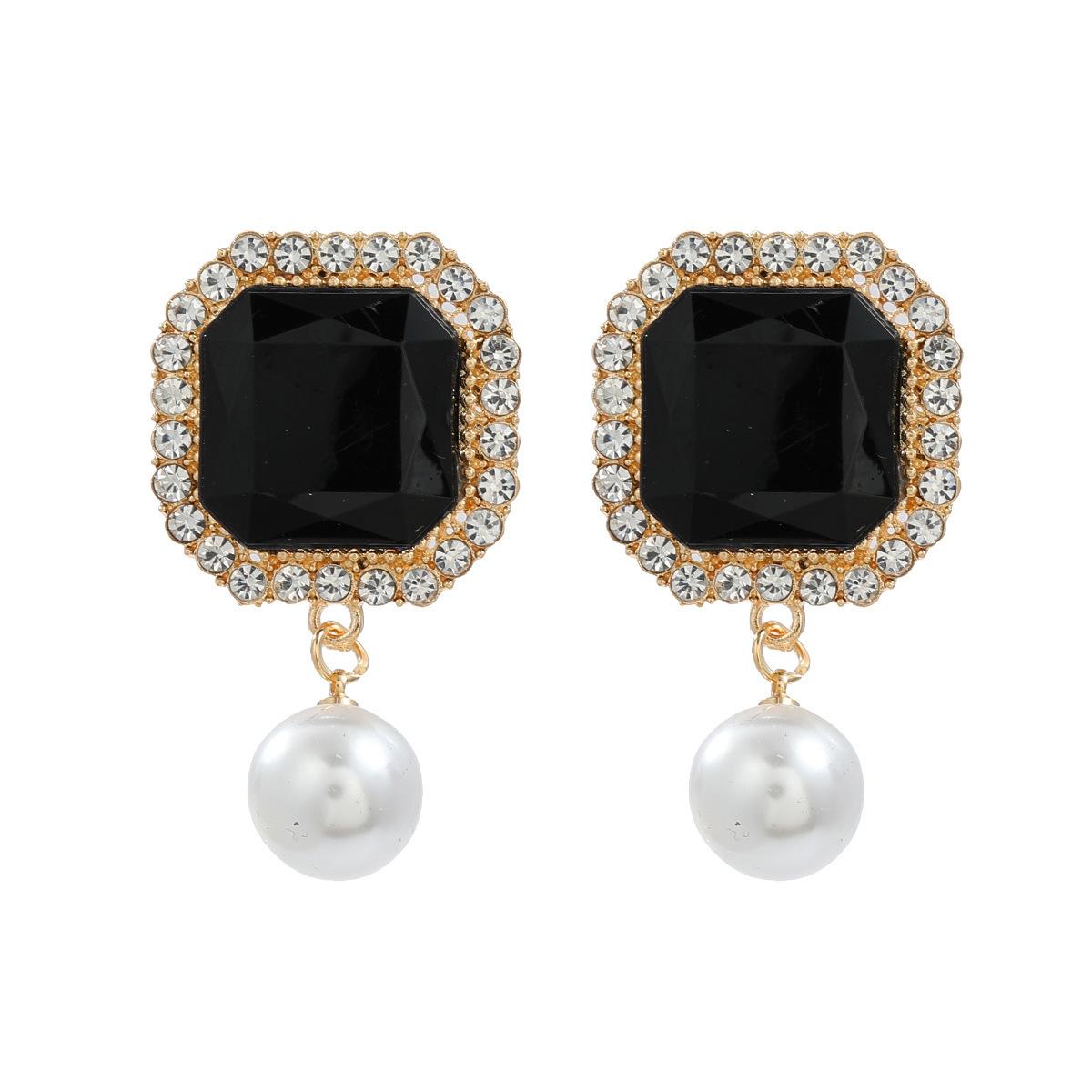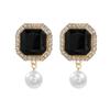 Pendientes transfronterizos europeos y americanos con diamantes cuadrados y perlas de imitación, elegantes pendientes de banquete para mujer, joyería exagerada, suministro de comercio exterior