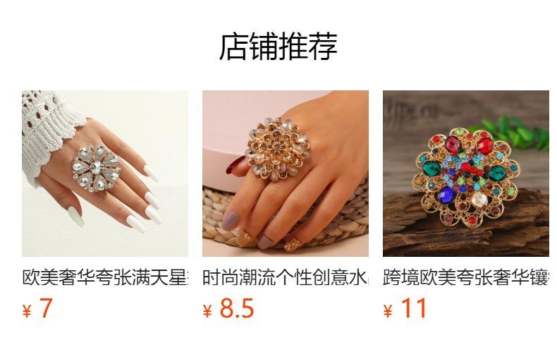 Anillo de Flor de Cristal Creativo Personalizado Moderno de Moda Europeo y Americano Retro Exagerado Elegante Lujo Accesible Anillo de Diamantes Completo