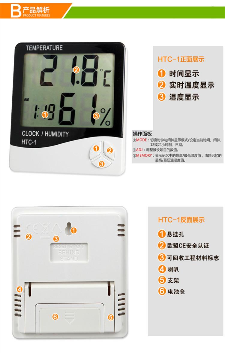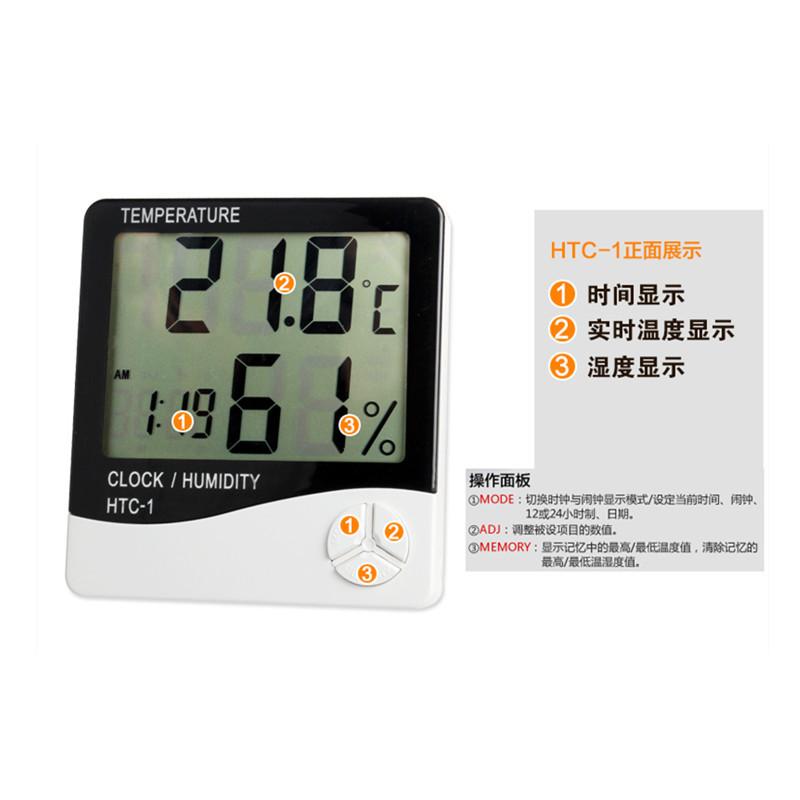 Higrómetro electrónico de temperatura HTC-1, termómetro digital doméstico con pantalla digital, reloj de tiempo con memoria, higrómetro seco