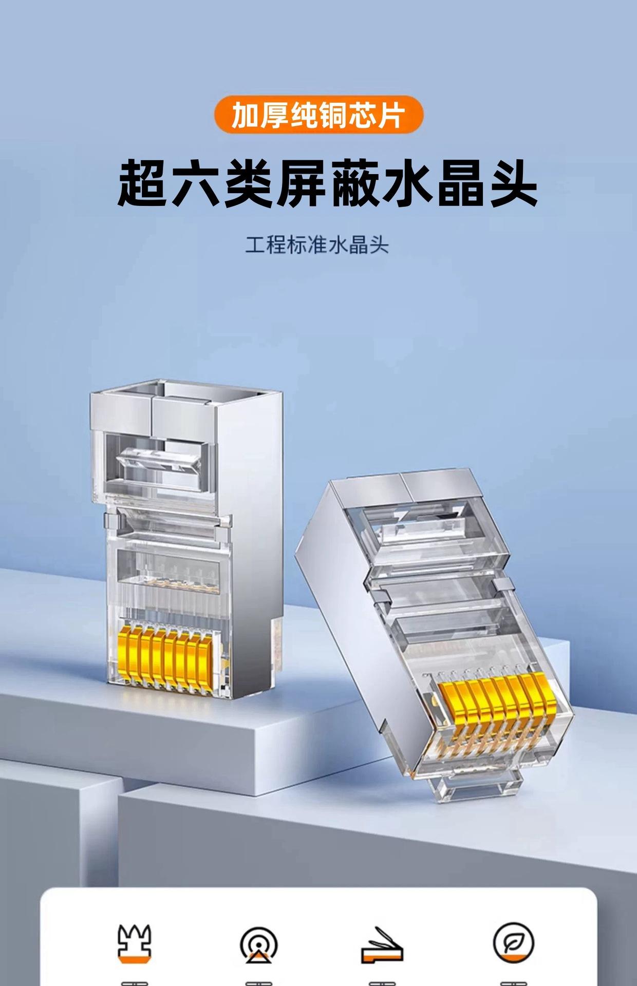 Red cabeza de cristal super seis apantallado 8p8c cabeza de cristal cable de red conector RJ45 conector de cable de red todo cobre