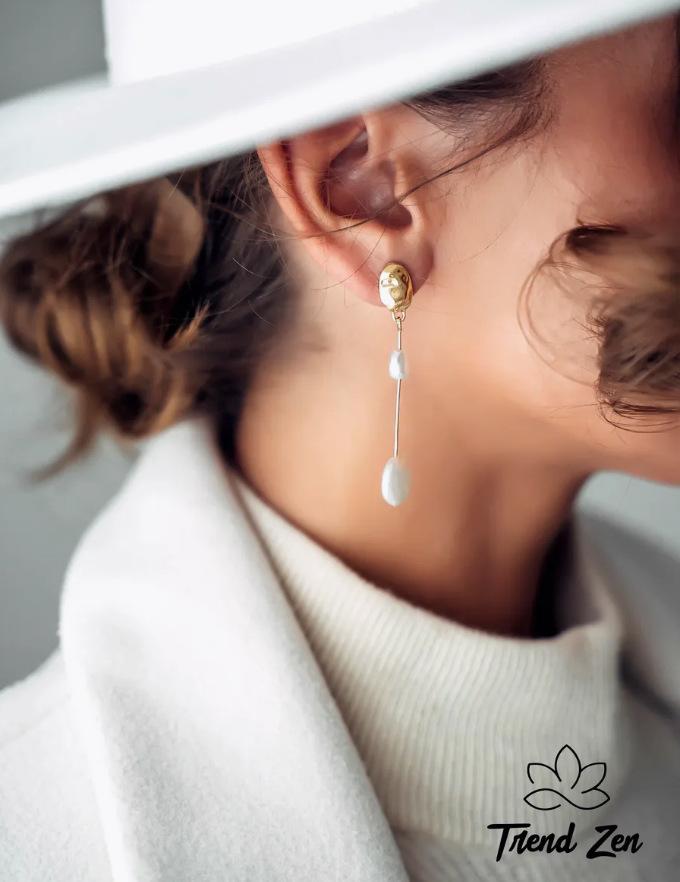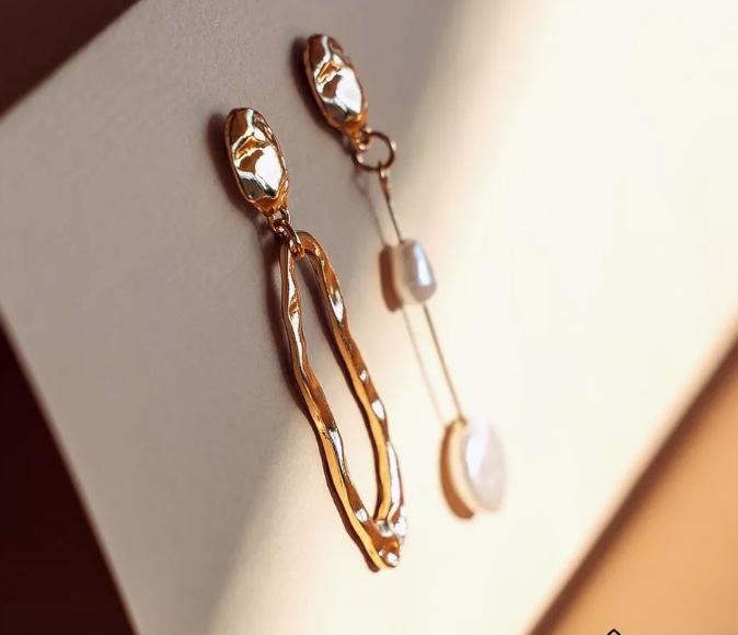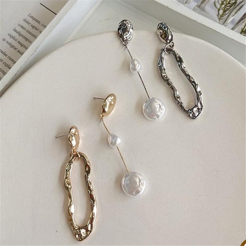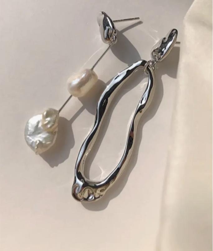 Pendientes de perlas de estilo barroco geométrico con aguja de plata S925, pendientes asimétricos con personalidad irregular.