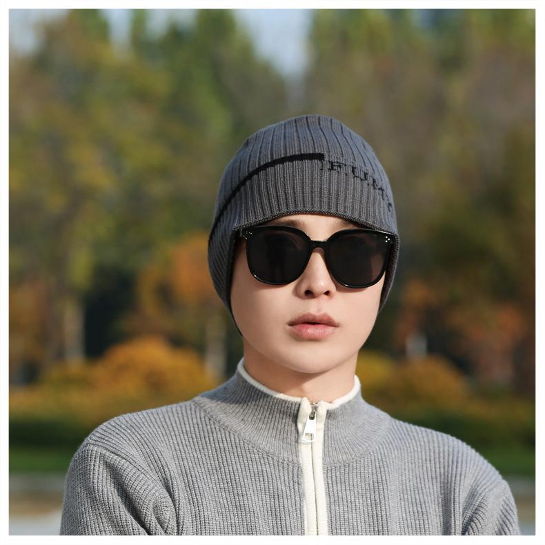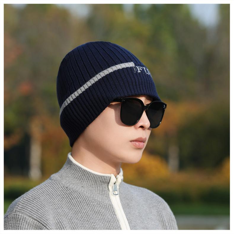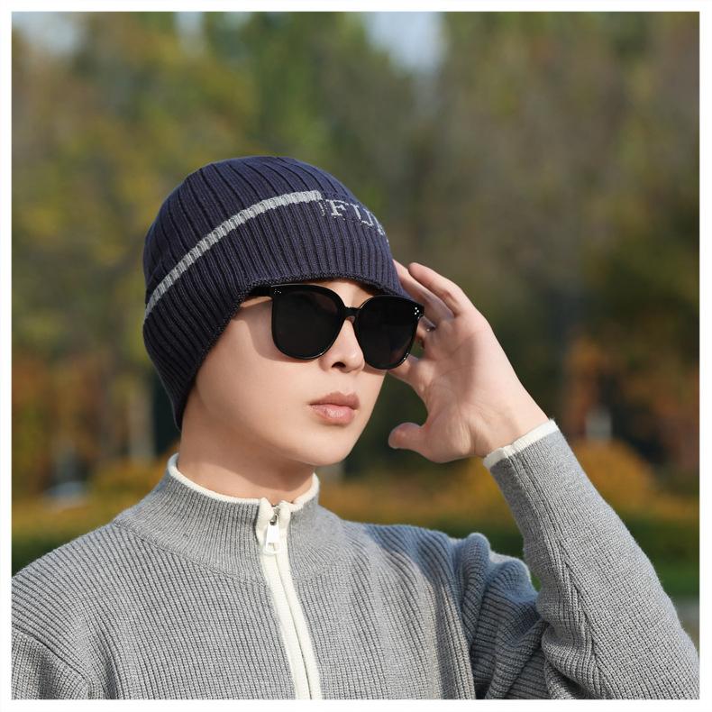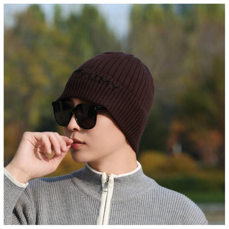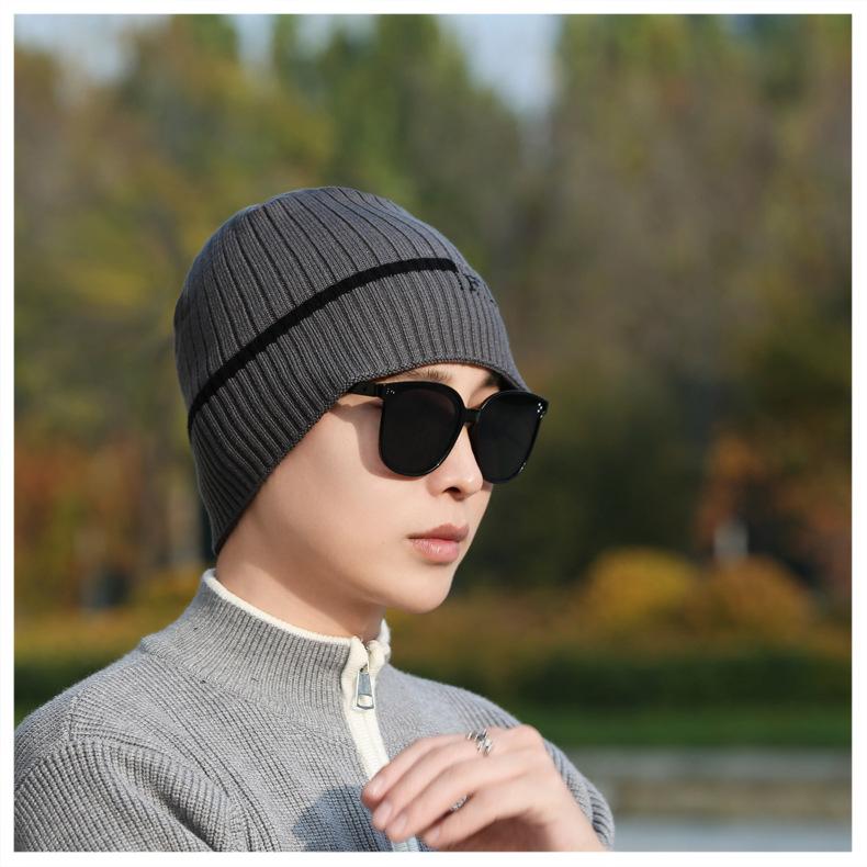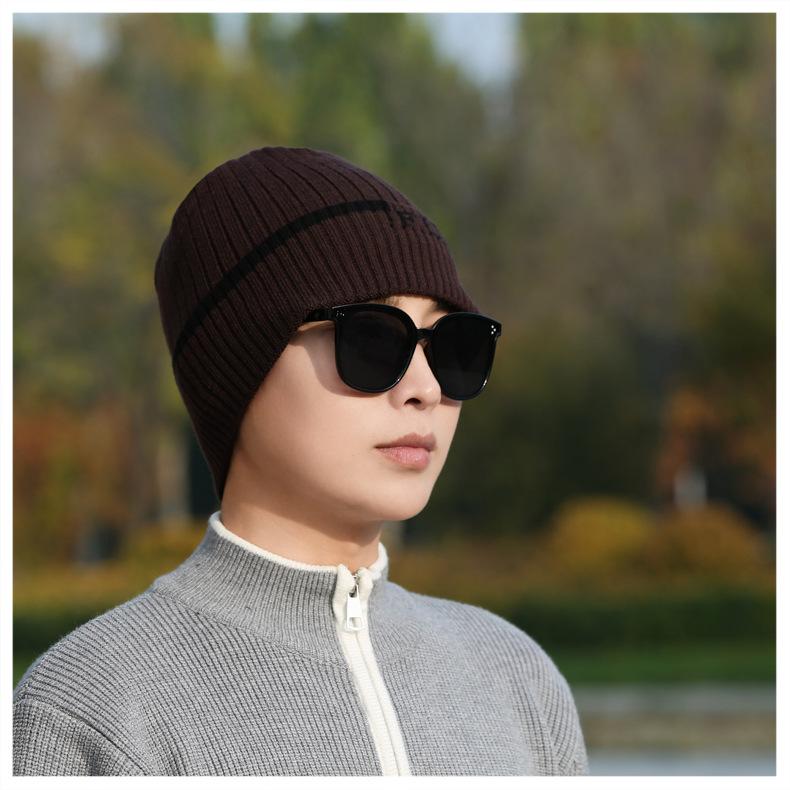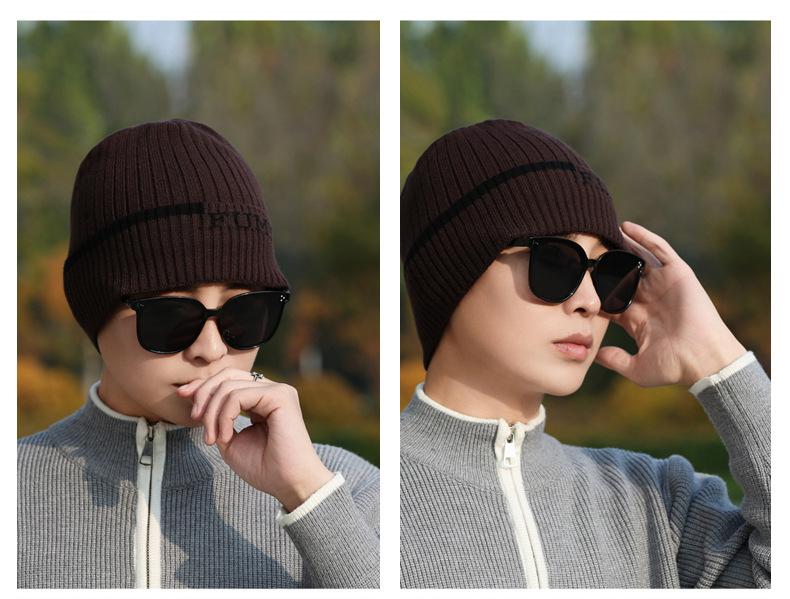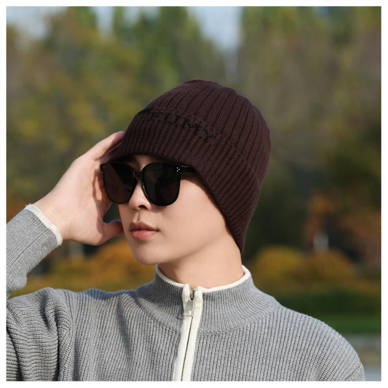 Gorro de Punto para Hombre Otoño e Invierno Casual Combinable Gorro de Lana Deportes al Aire Libre a Prueba de Frío Cálido Gorro de Punto Estilo Europeo y Americano Gorro Doble