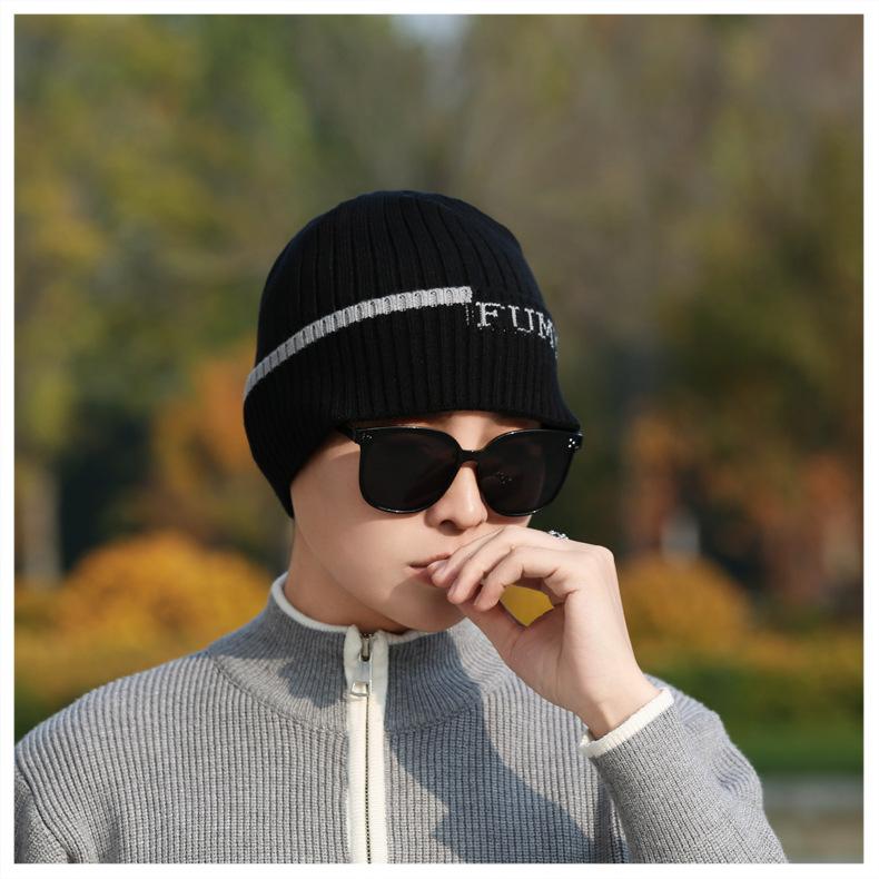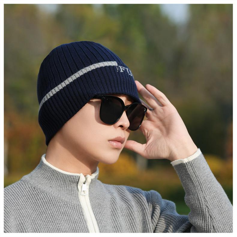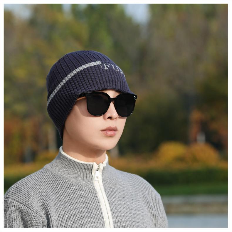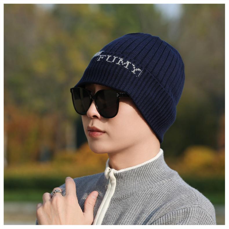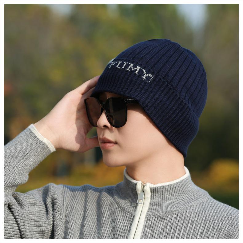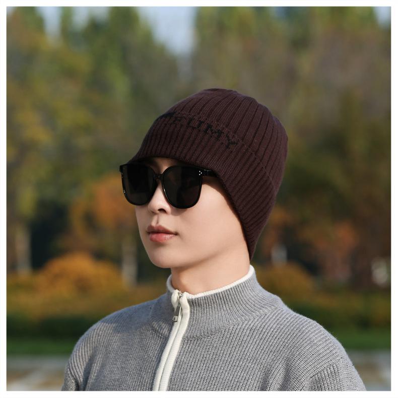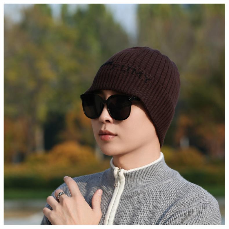 Gorro de Punto para Hombre Otoño e Invierno Casual Combinable Gorro de Lana Deportes al Aire Libre a Prueba de Frío Cálido Gorro de Punto Estilo Europeo y Americano Gorro Doble
