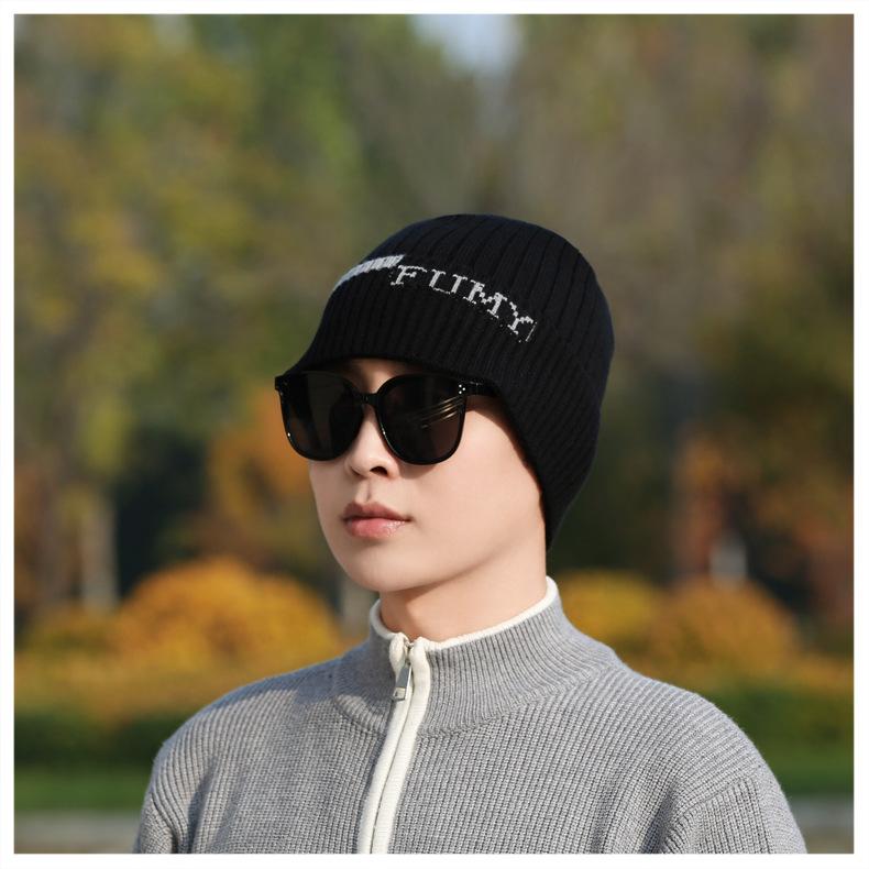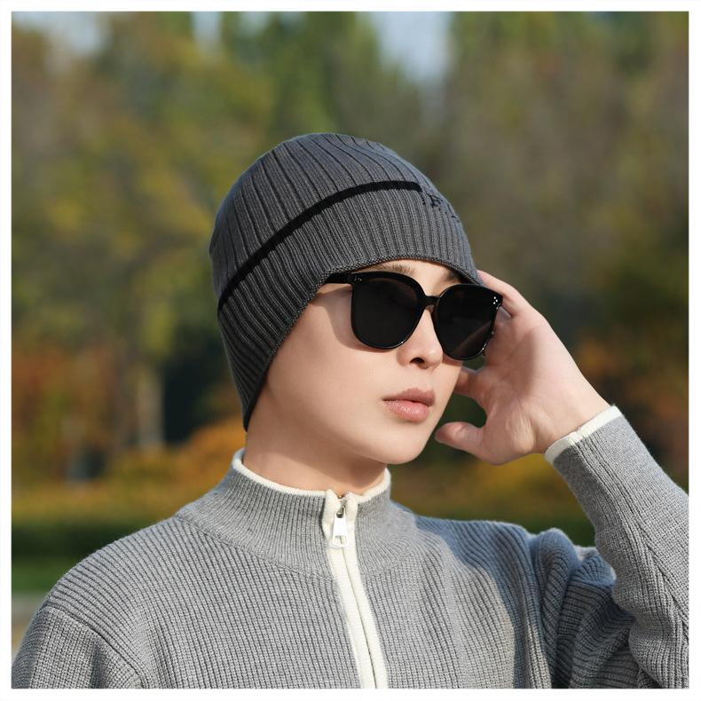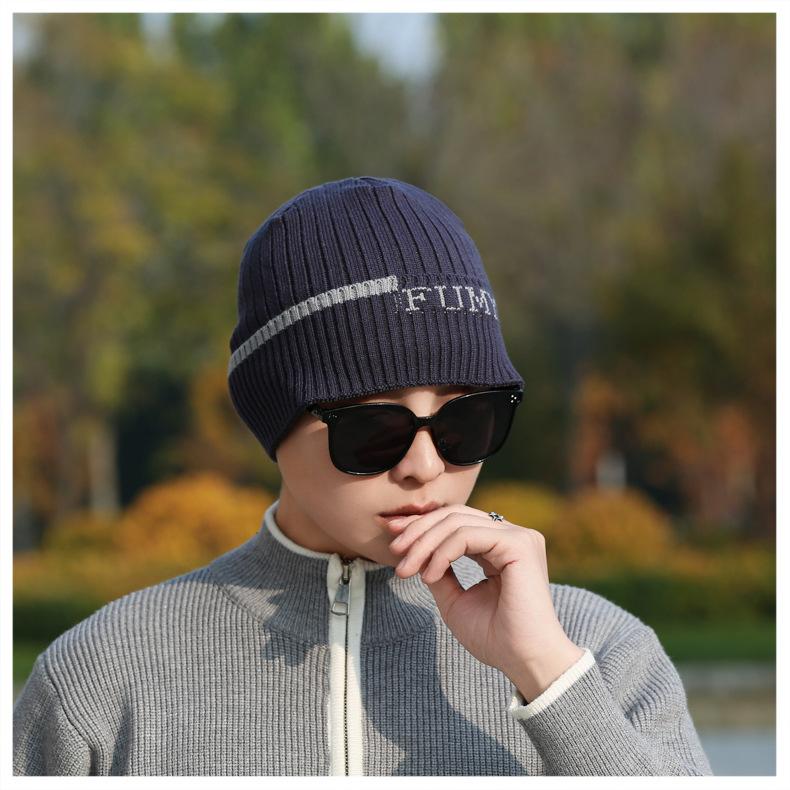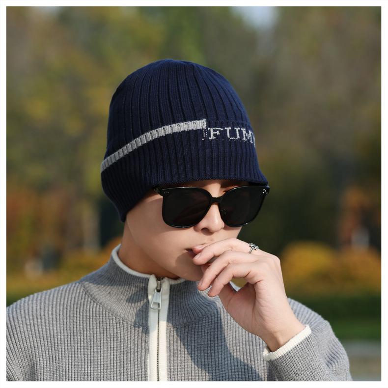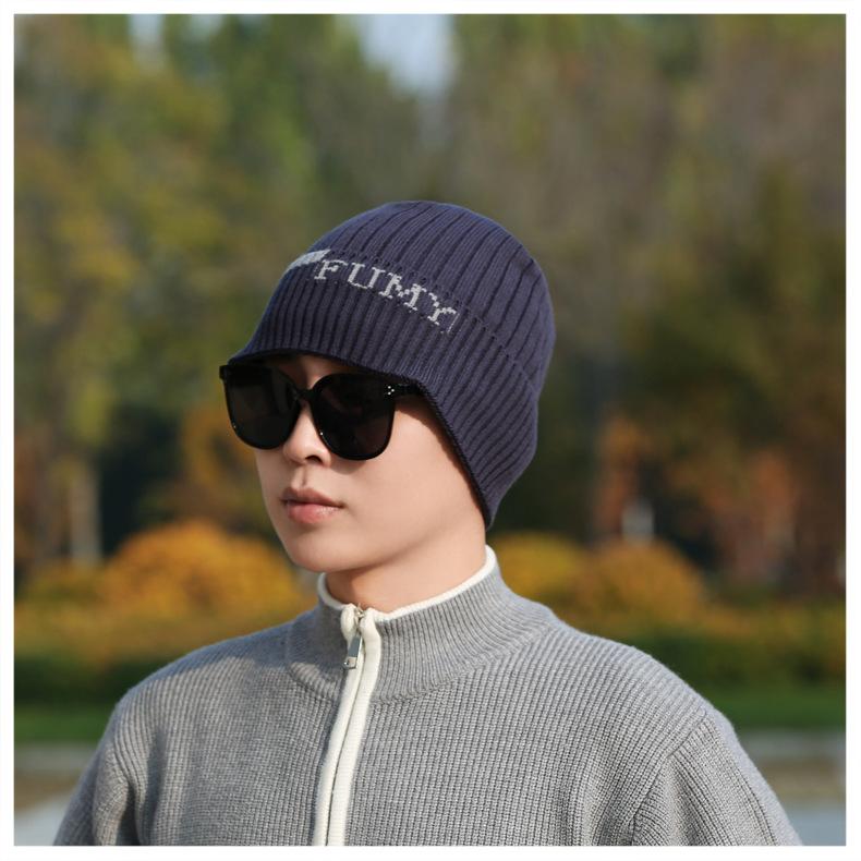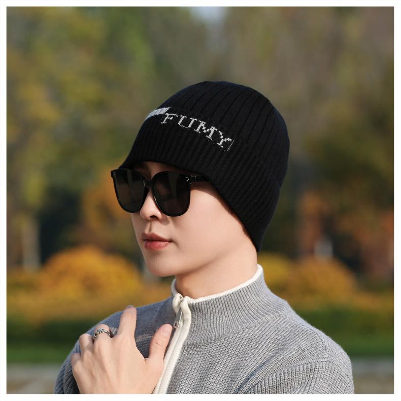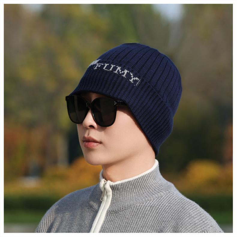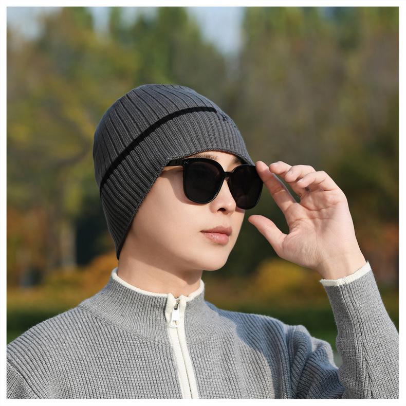 Gorro de Punto para Hombre Otoño e Invierno Casual Combinable Gorro de Lana Deportes al Aire Libre a Prueba de Frío Cálido Gorro de Punto Estilo Europeo y Americano Gorro Doble