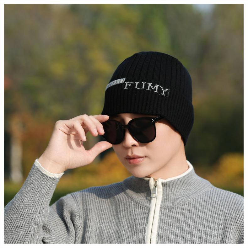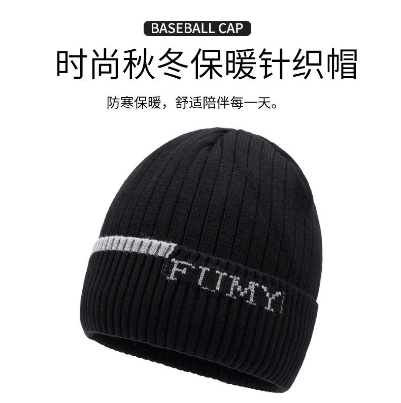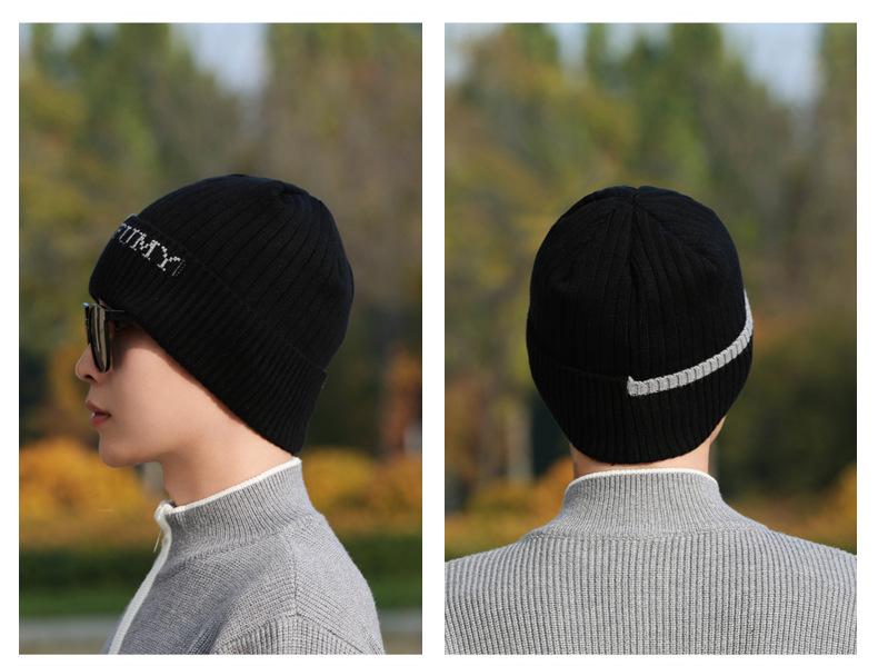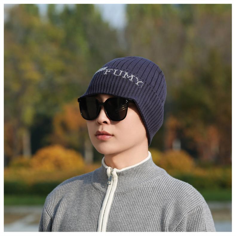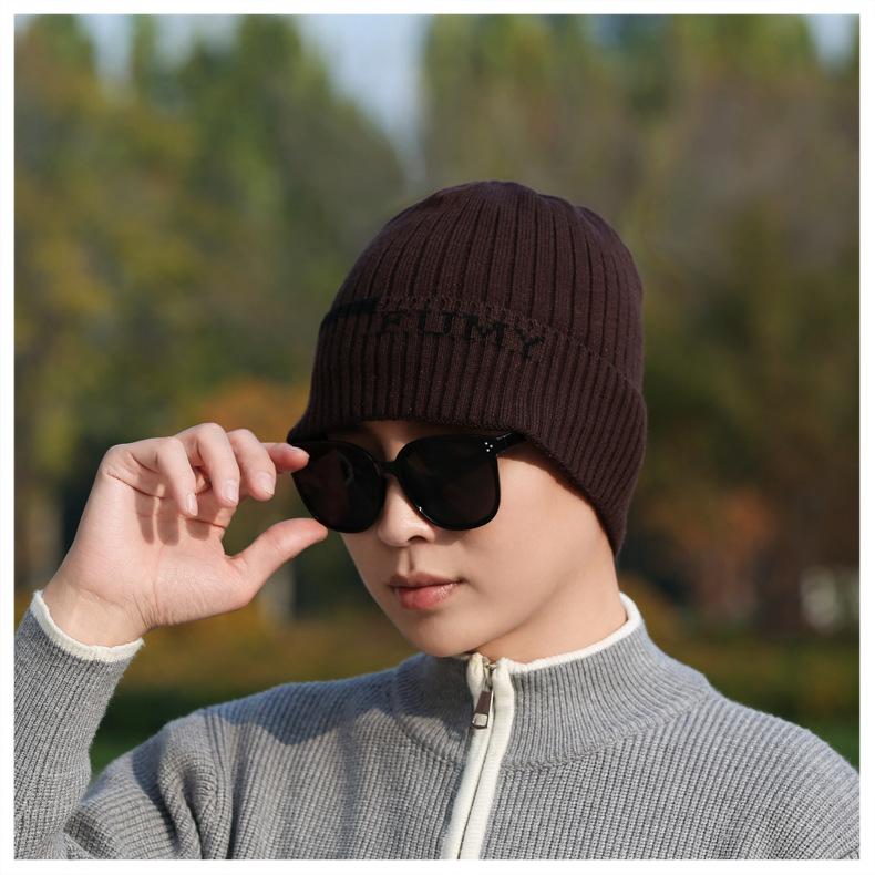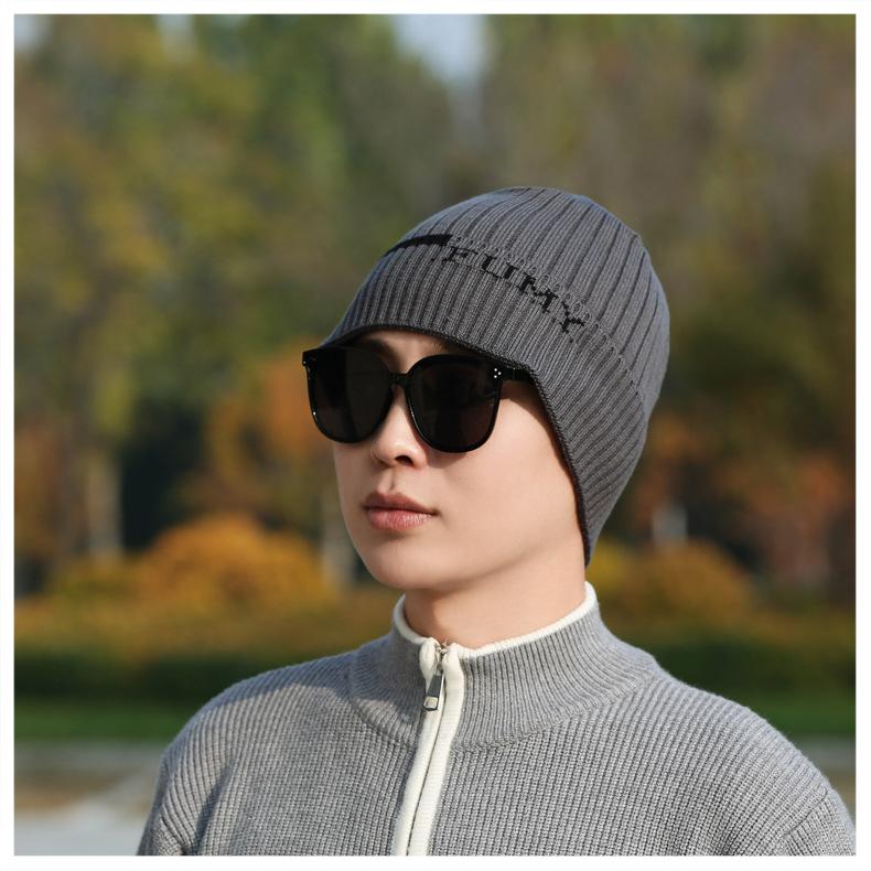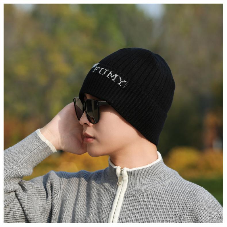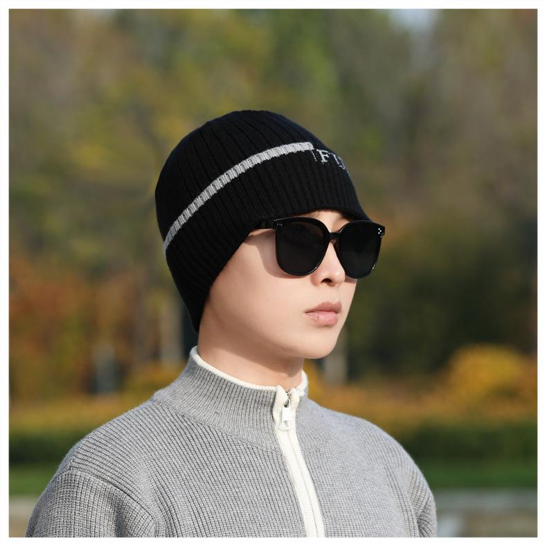 Gorro de Punto para Hombre Otoño e Invierno Casual Combinable Gorro de Lana Deportes al Aire Libre a Prueba de Frío Cálido Gorro de Punto Estilo Europeo y Americano Gorro Doble