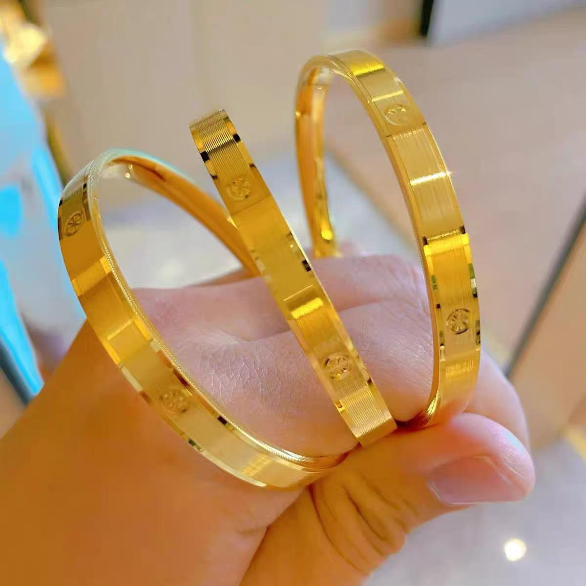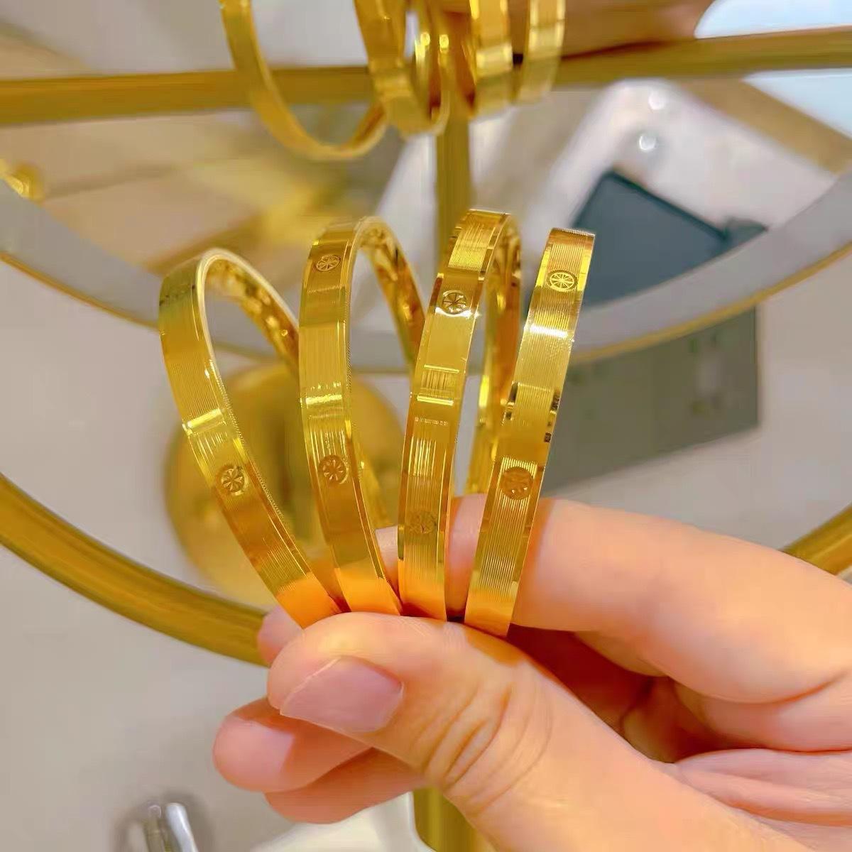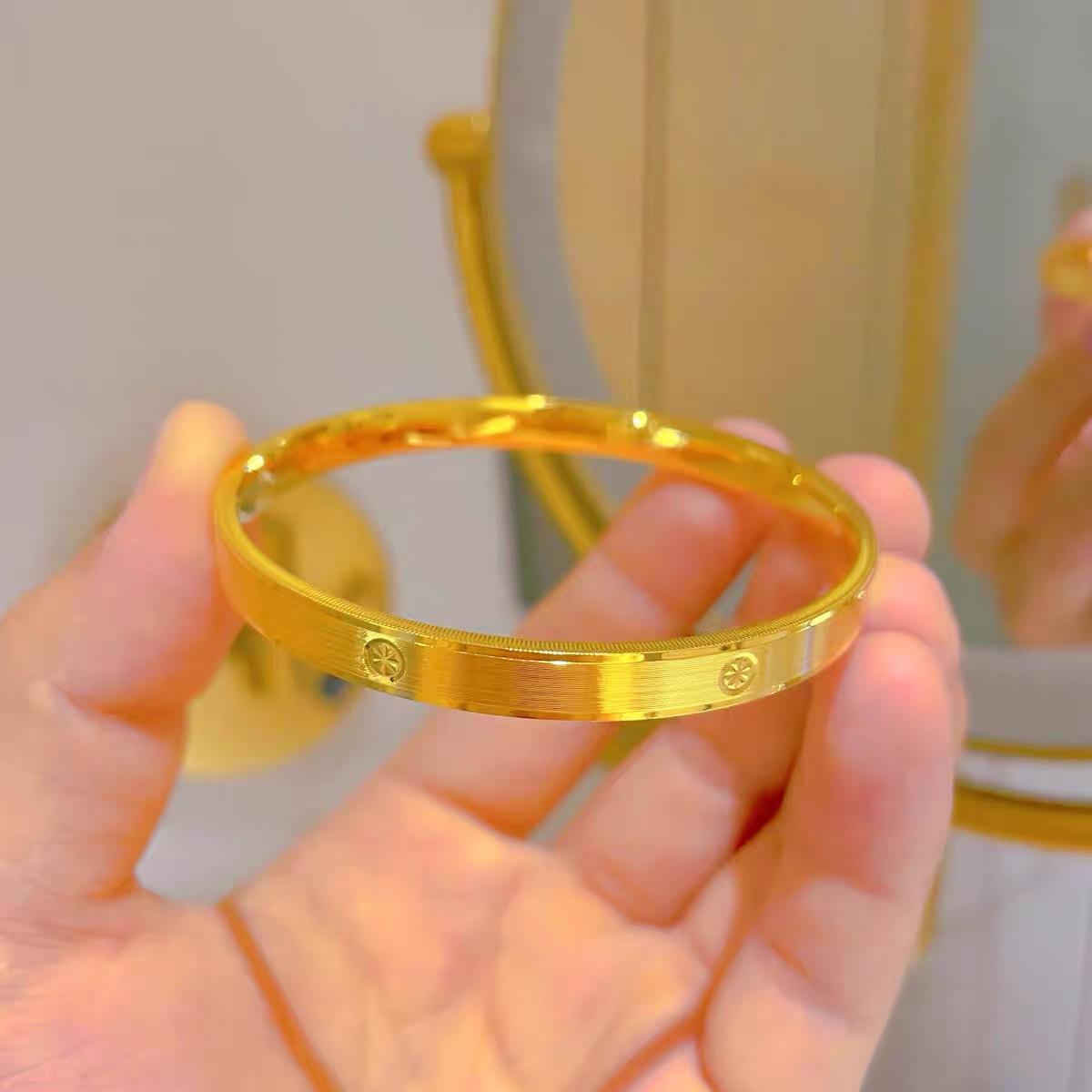 Pulsera de estrella artesanal CNC de oro y arena de Vietnam, pulsera de cobre chapada en oro para mujer, pulsera chapada en oro con boca cerrada y patrón de diamantes, venta al por mayor
