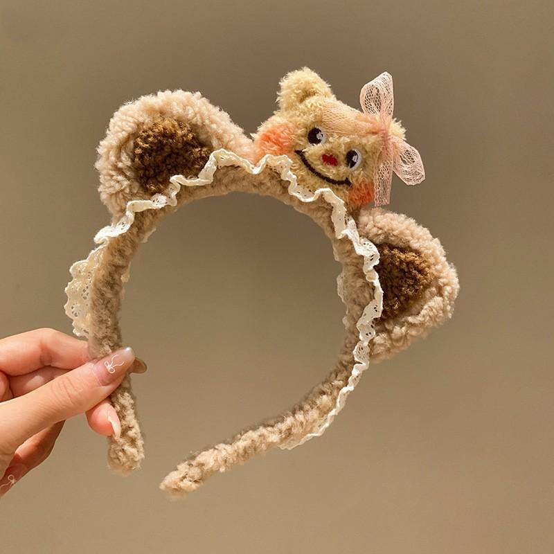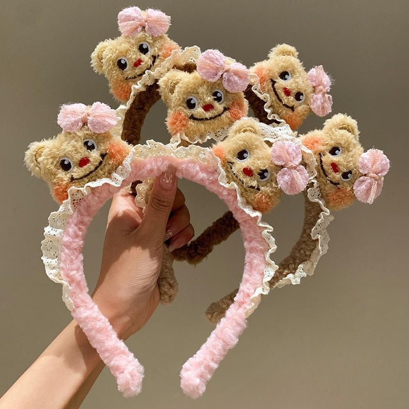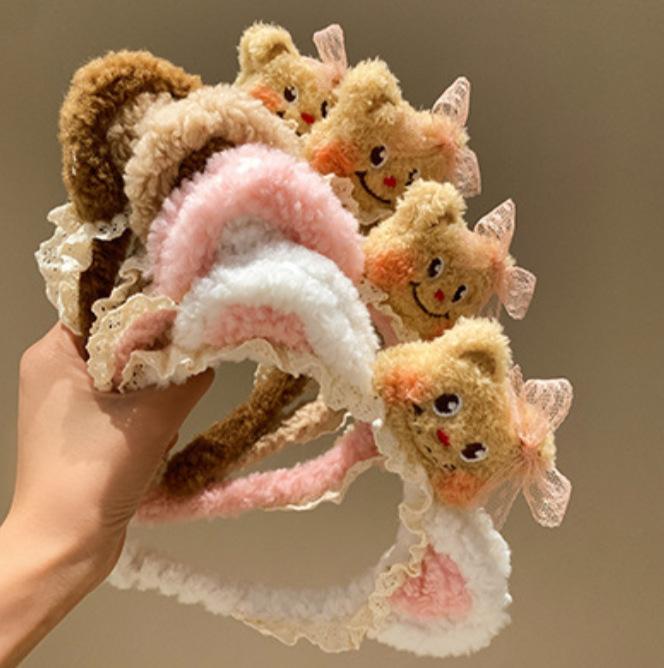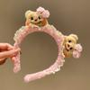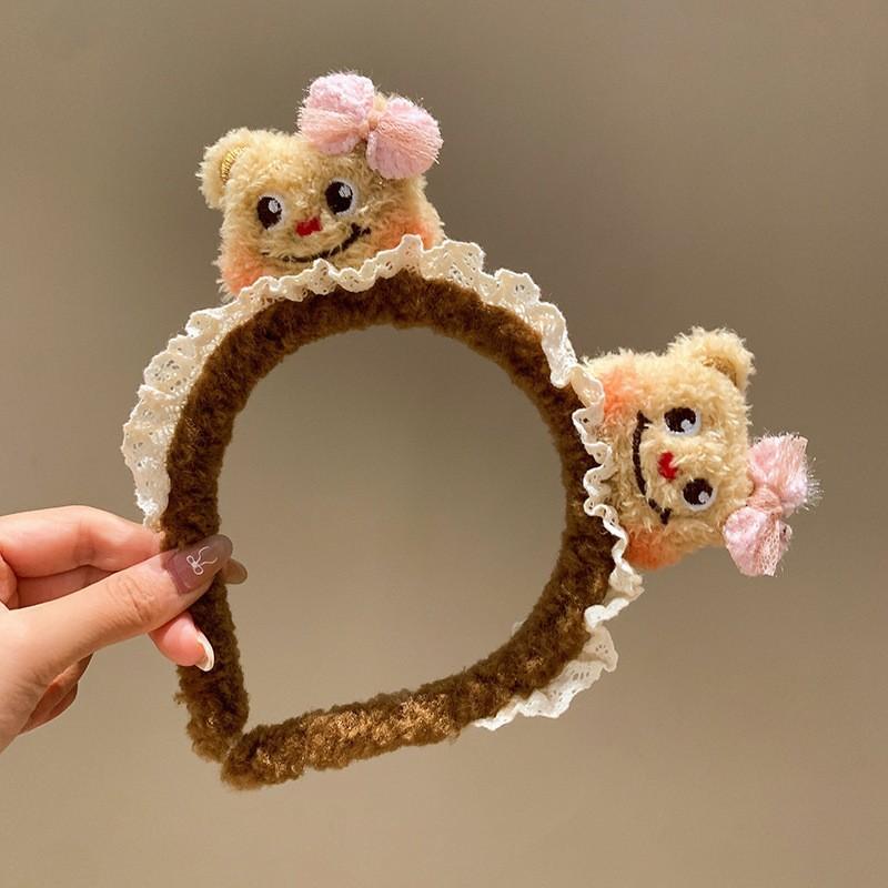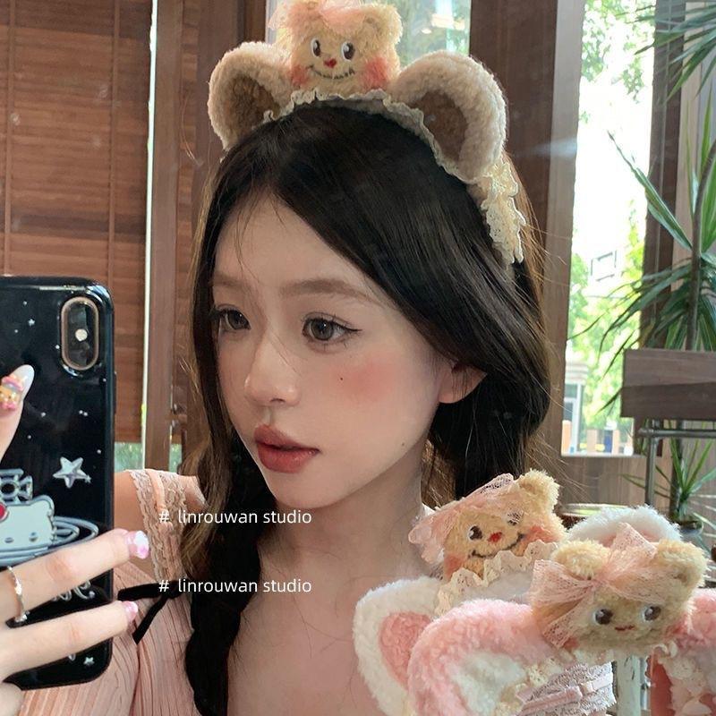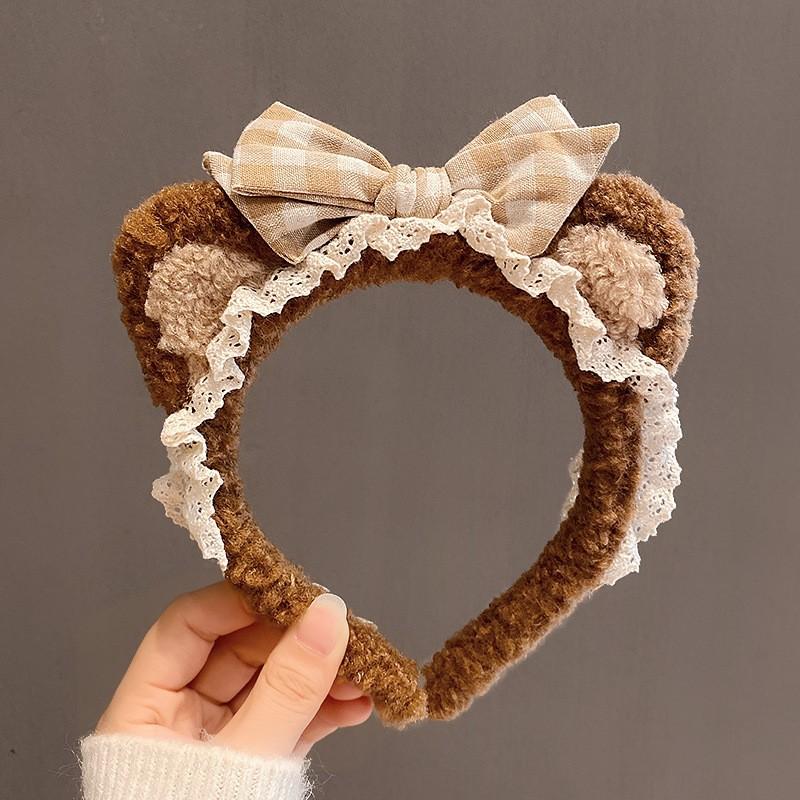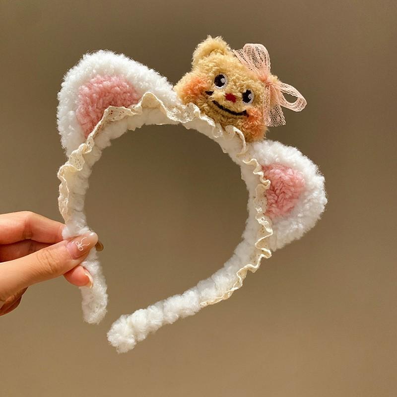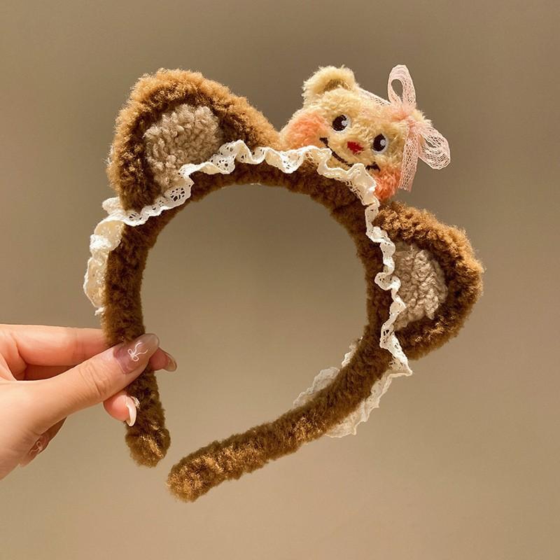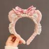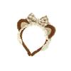 Diadema de Pelo de Oso de Mantequilla de Dibujos Animados Encaje Lazo Encaje Lavar Cara Diadema Suave Lindo Orejas de Oso Niña Accesorios para el Cabello de Felpa