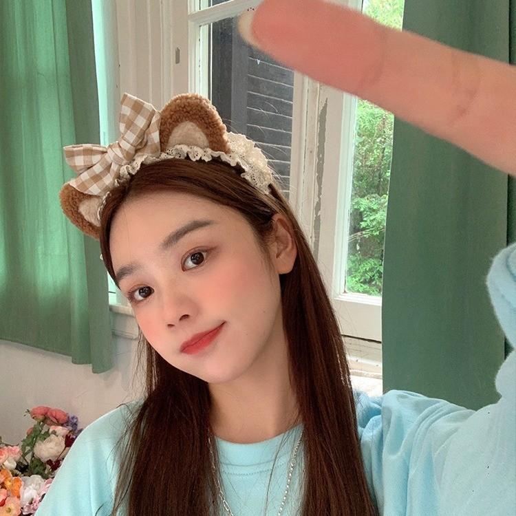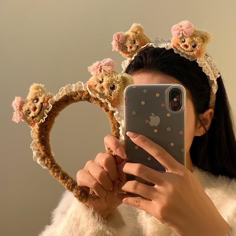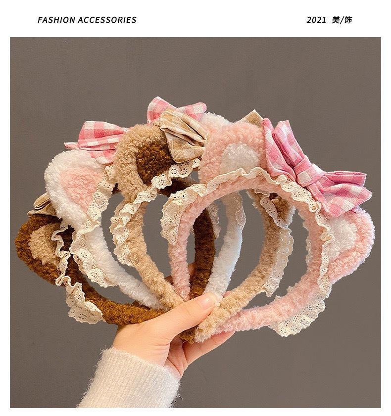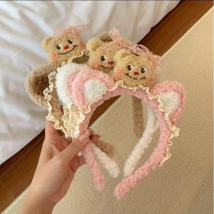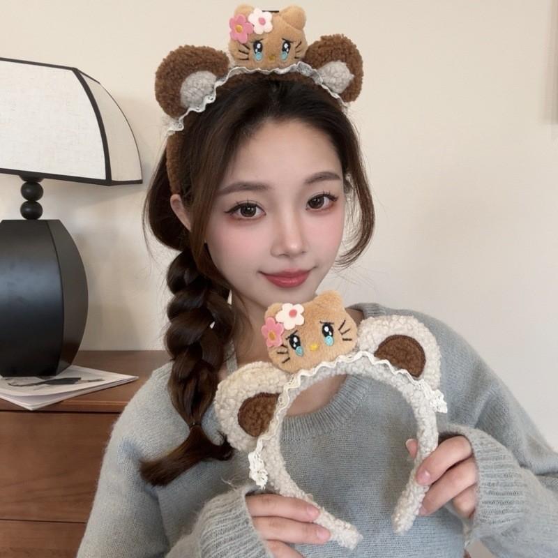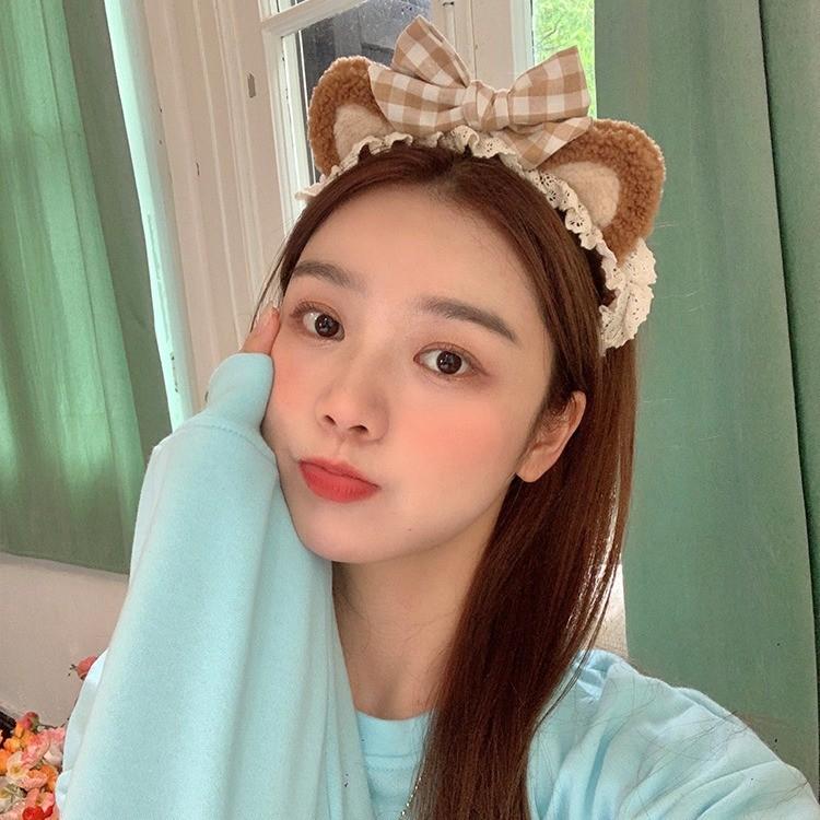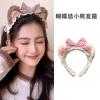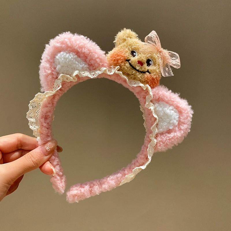 Diadema de Pelo de Oso de Mantequilla de Dibujos Animados Encaje Lazo Encaje Lavar Cara Diadema Suave Lindo Orejas de Oso Niña Accesorios para el Cabello de Felpa