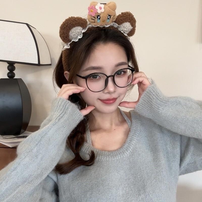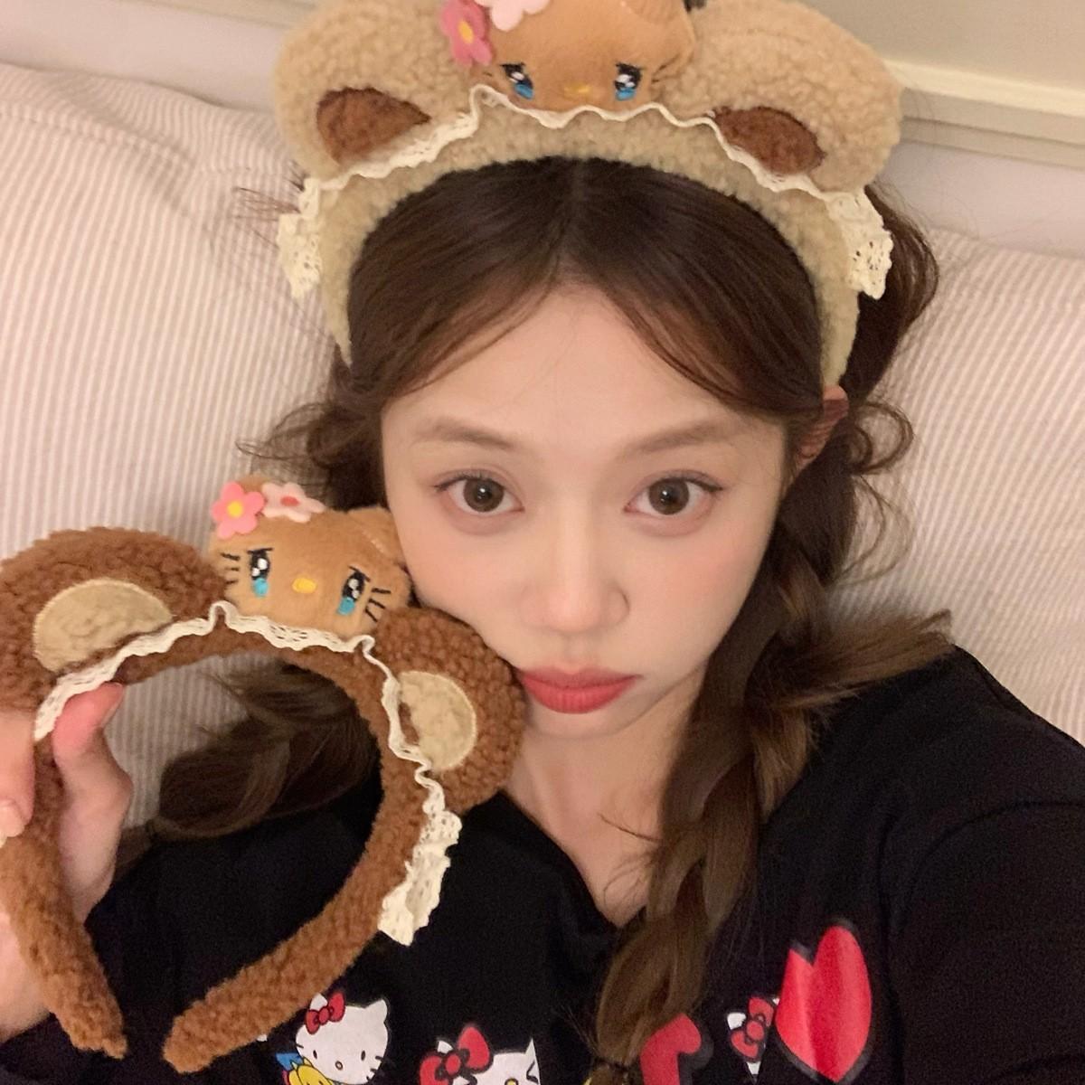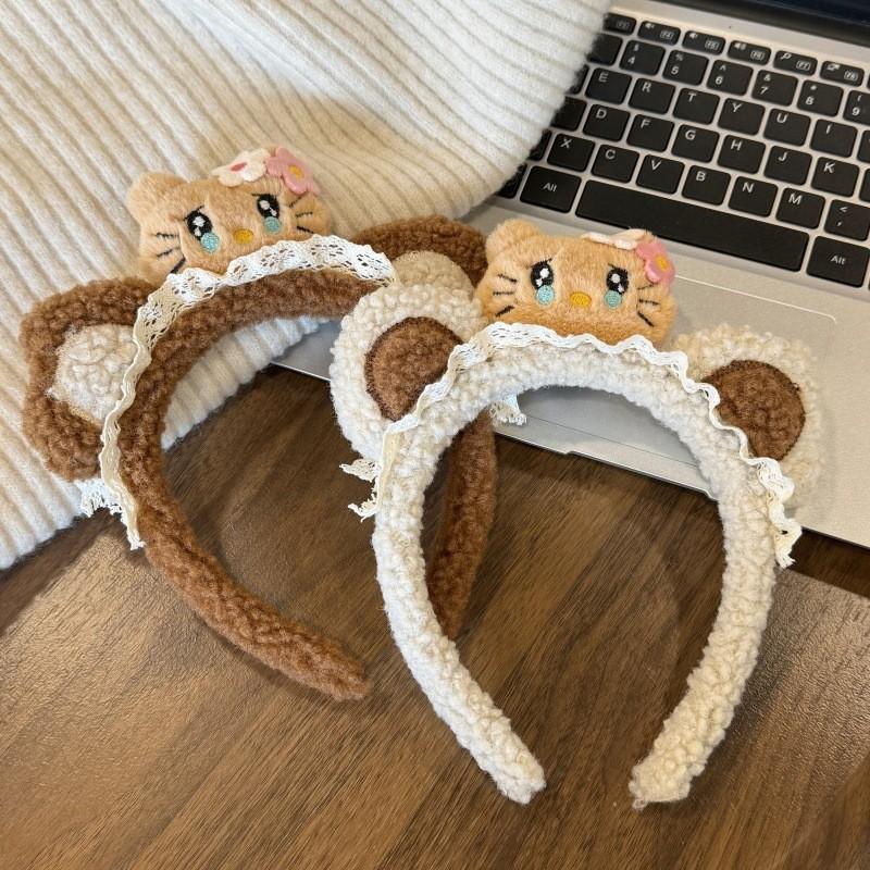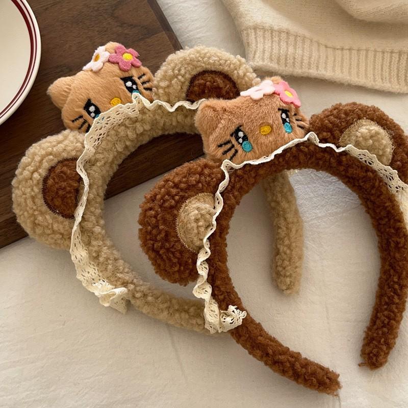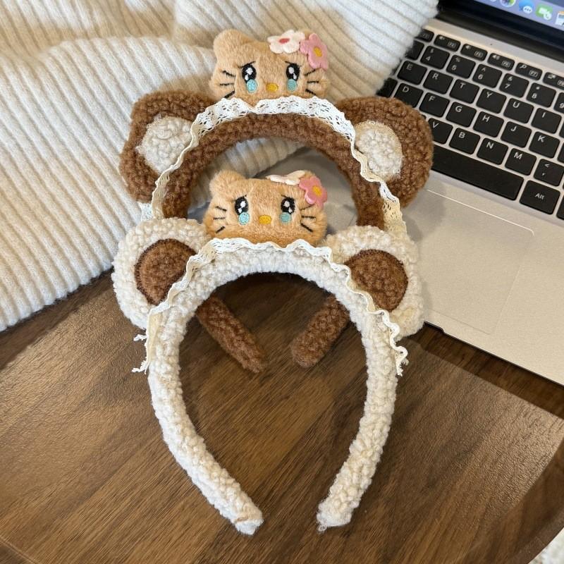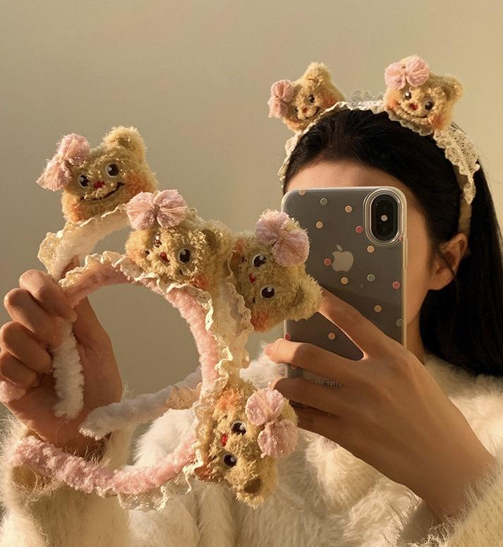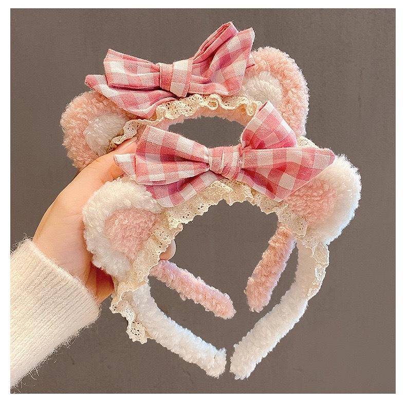 Diadema de Pelo de Oso de Mantequilla de Dibujos Animados Encaje Lazo Encaje Lavar Cara Diadema Suave Lindo Orejas de Oso Niña Accesorios para el Cabello de Felpa