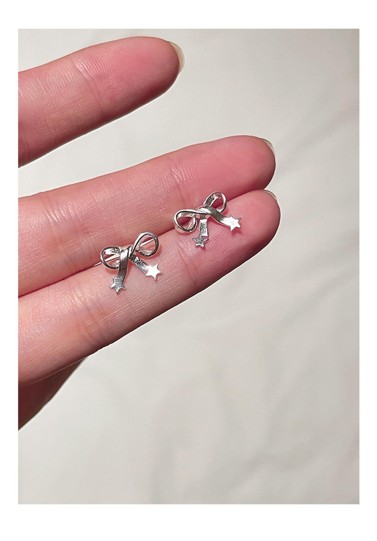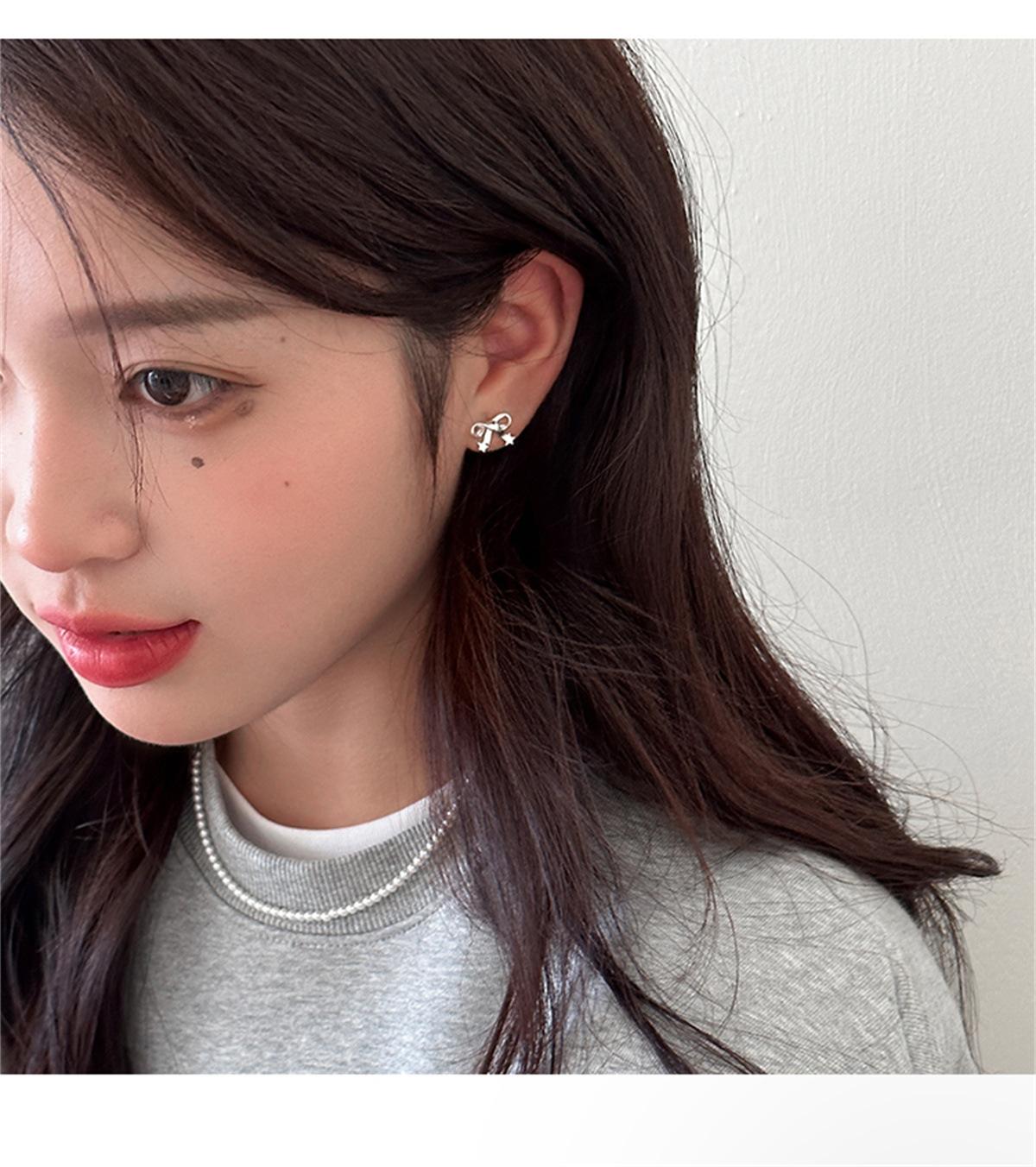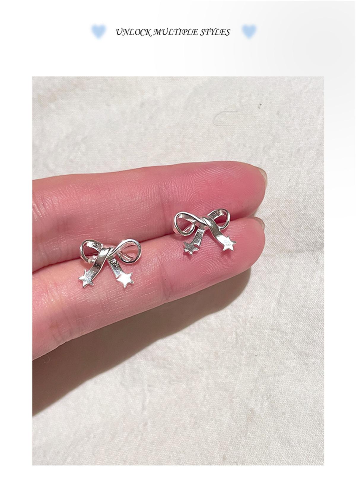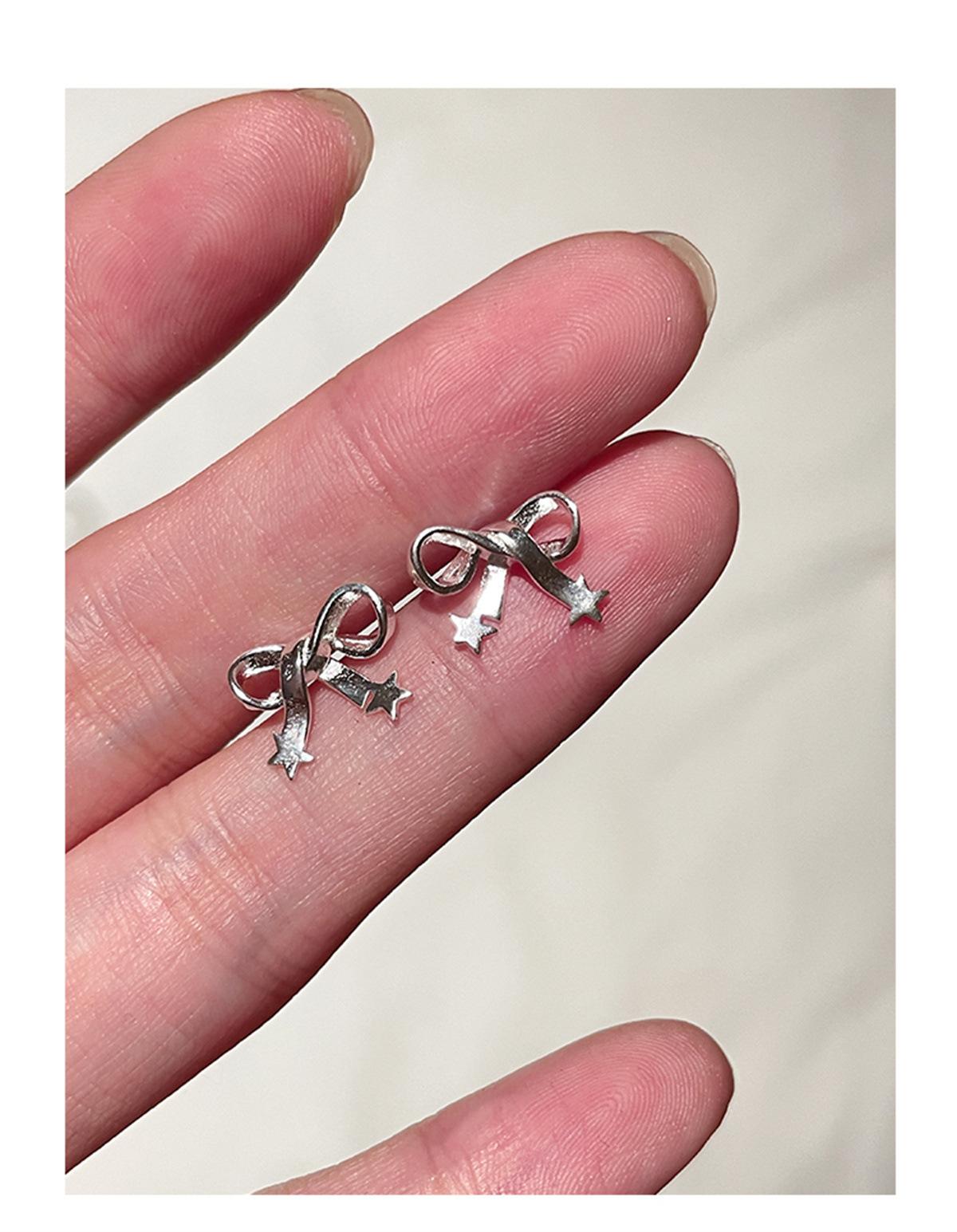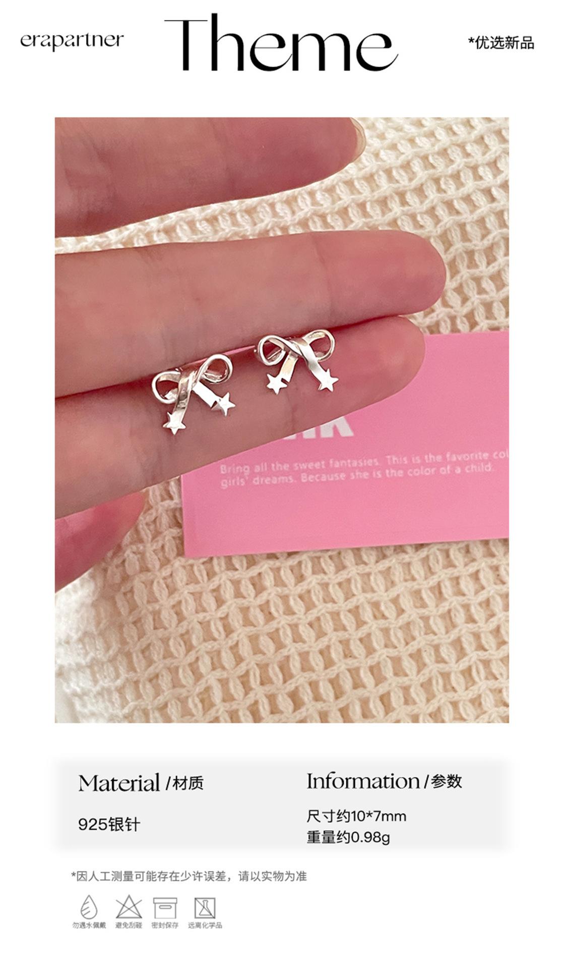 Pendientes de plata 925 con forma de estrella y lazo, para mujer, con un diseño que combina con todo, sencillos y de alta gama.