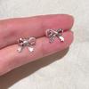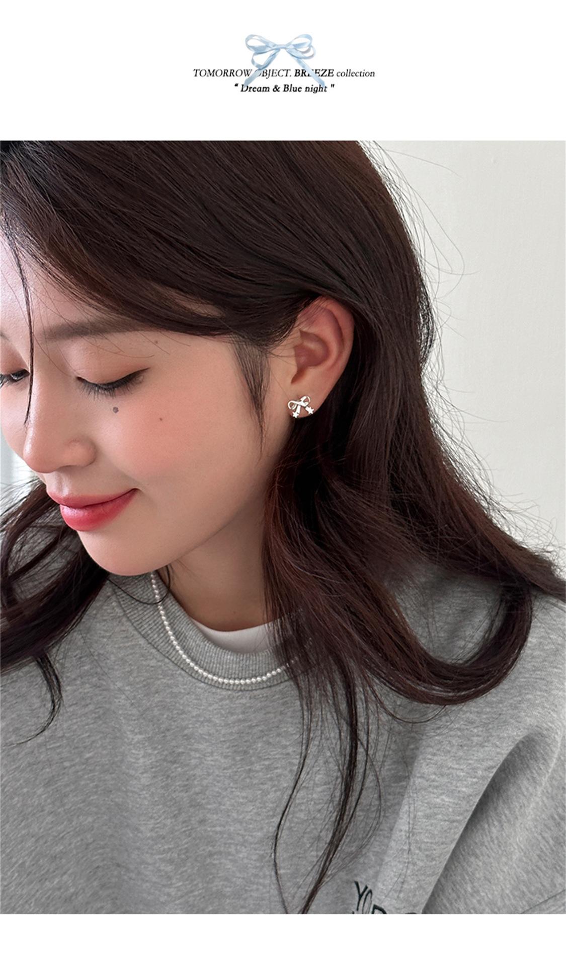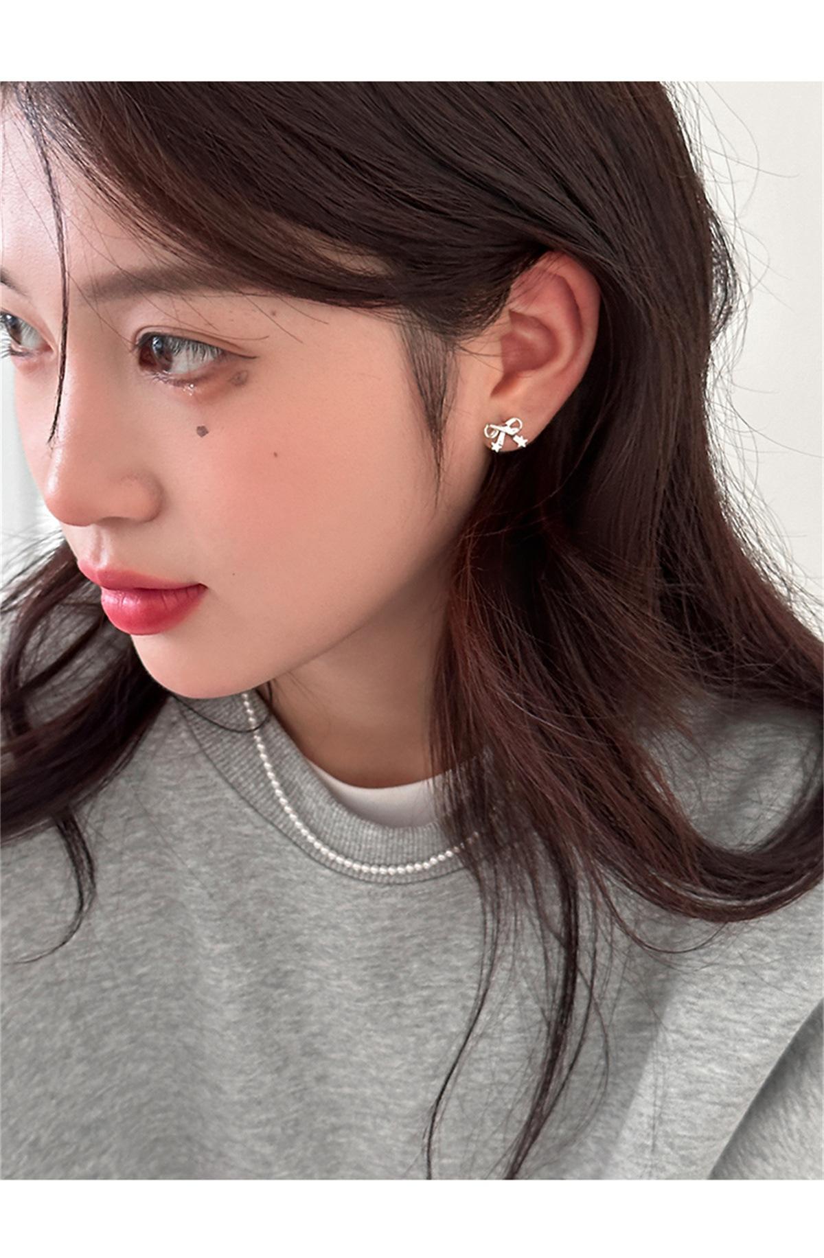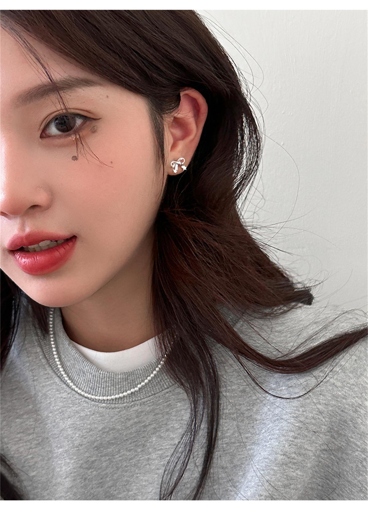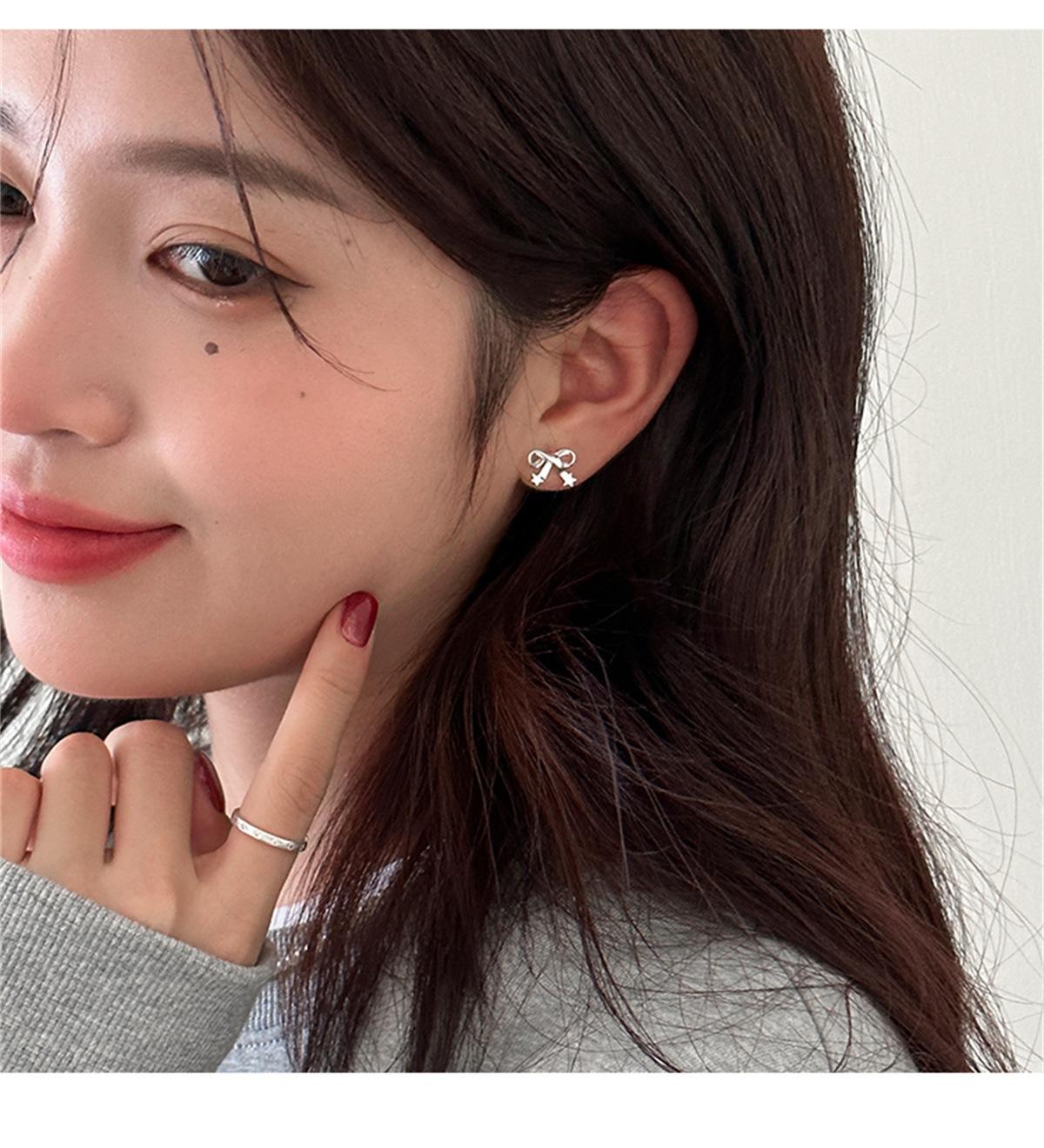 Pendientes de plata 925 con forma de estrella y lazo, para mujer, con un diseño que combina con todo, sencillos y de alta gama.