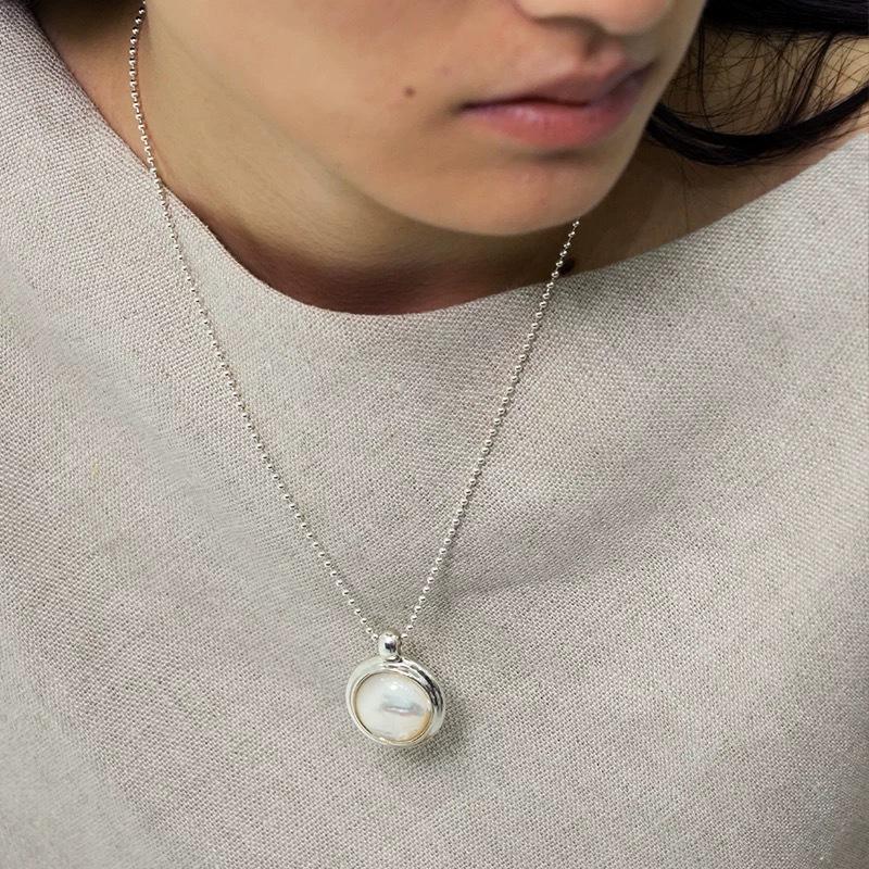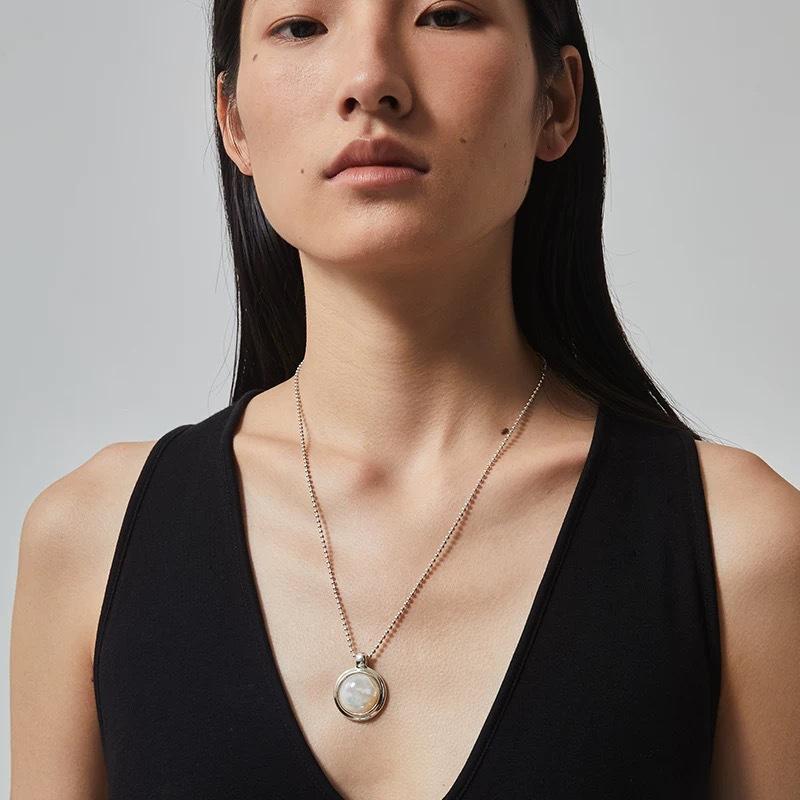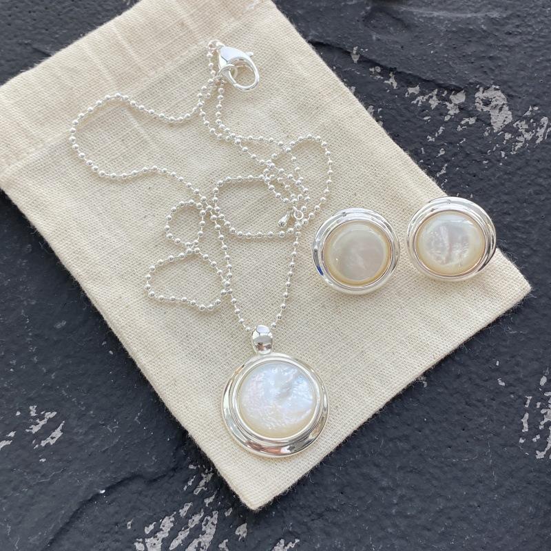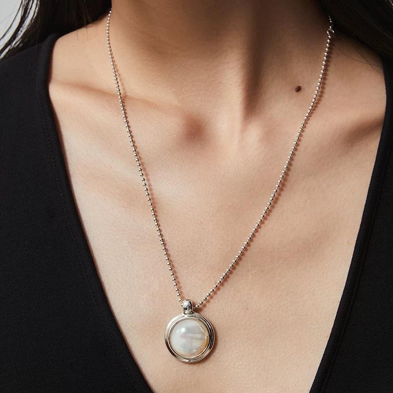 Collar y pendientes con colgante de luna de fritilaria blanca con serpentina de otoño e invierno, diseño de nicho femenino, cadena de suéter simple, cadena de clavícula