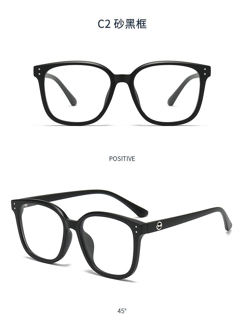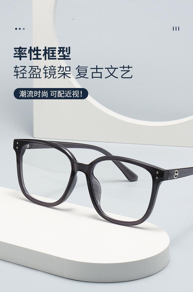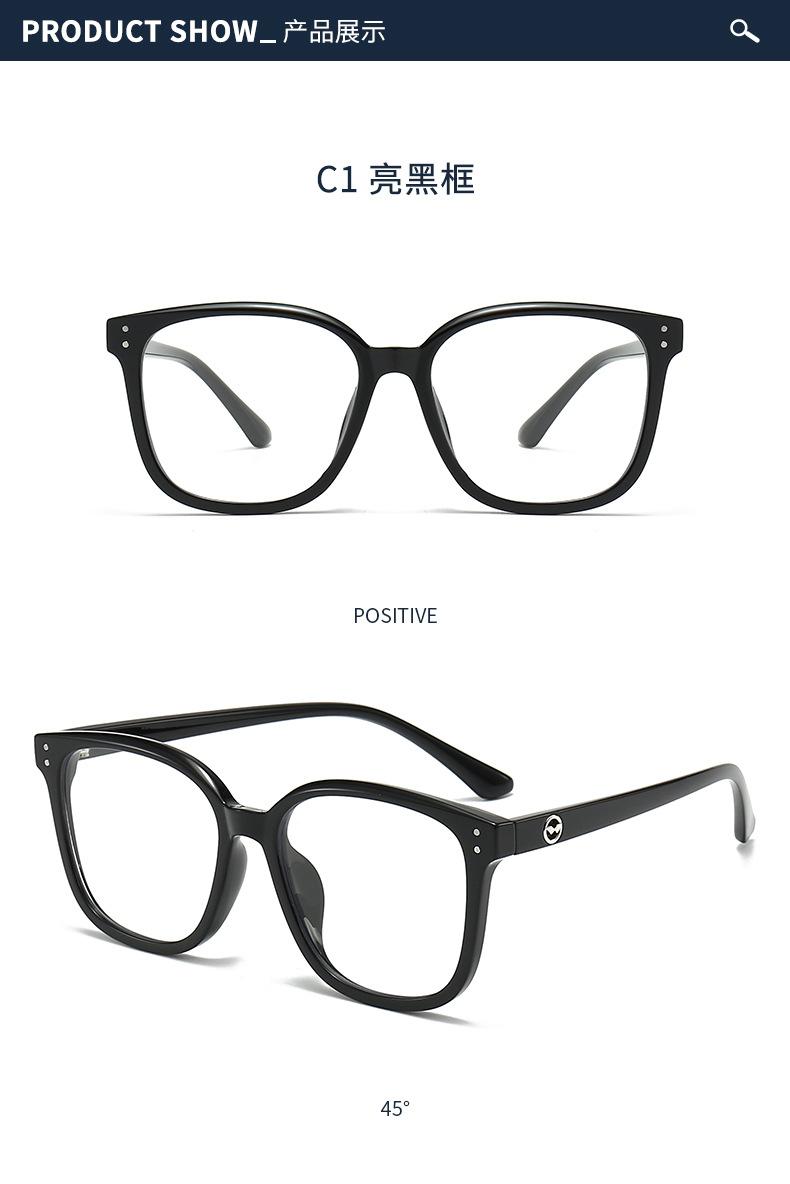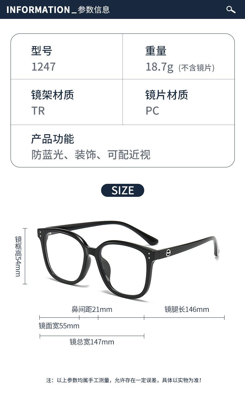 1247 Nuevas gafas ópticas TR90 de montura grande de celebridades de Internet, montura negra, gafas lisas anti-luz azul para hombres y mujeres.