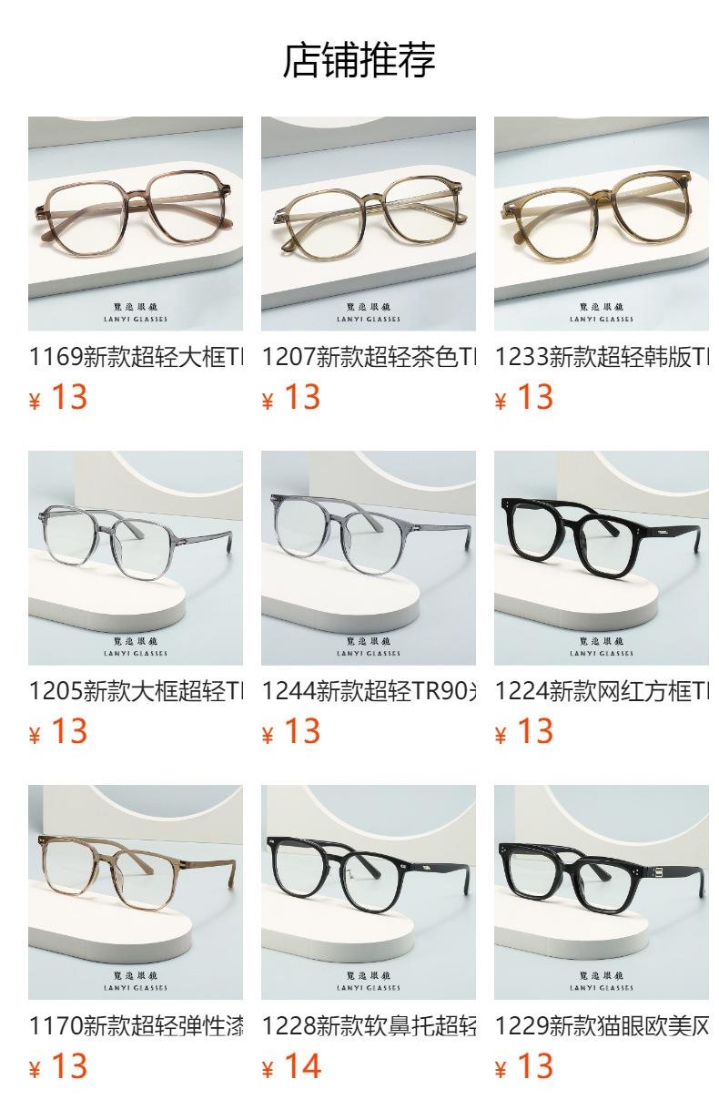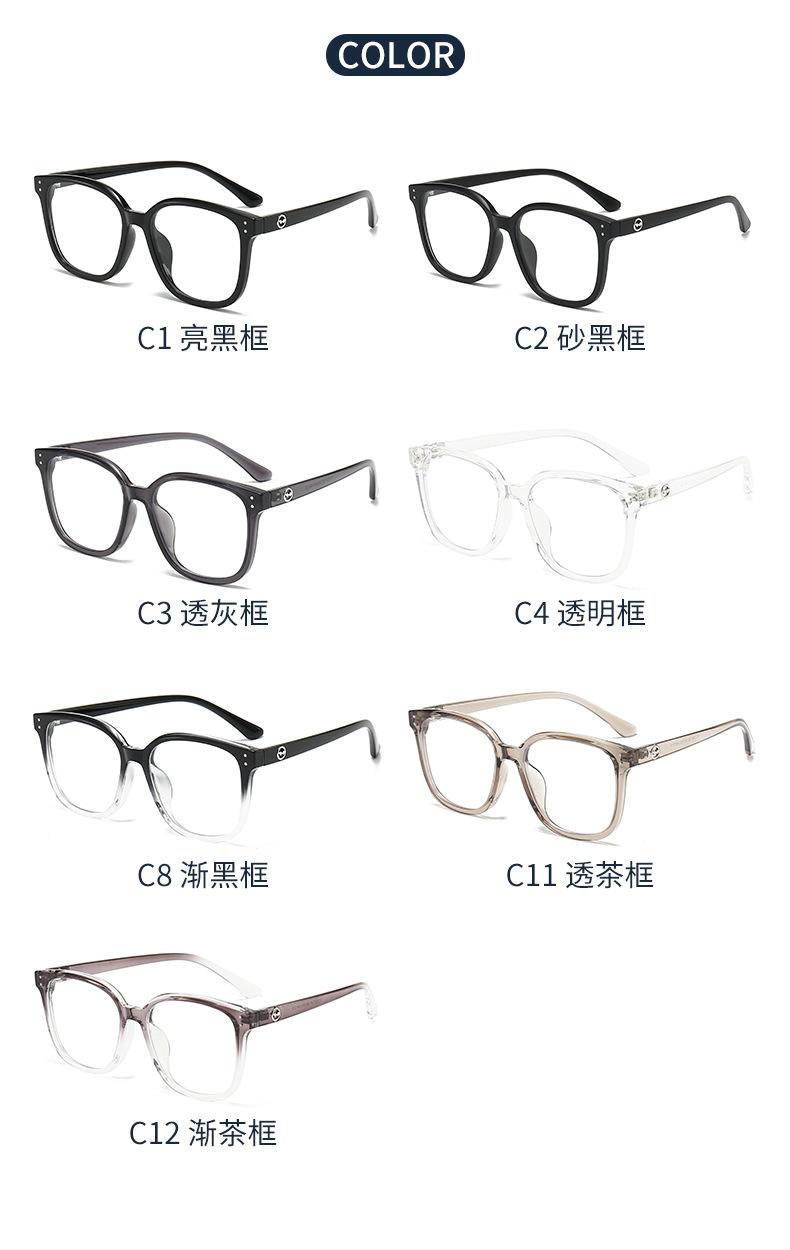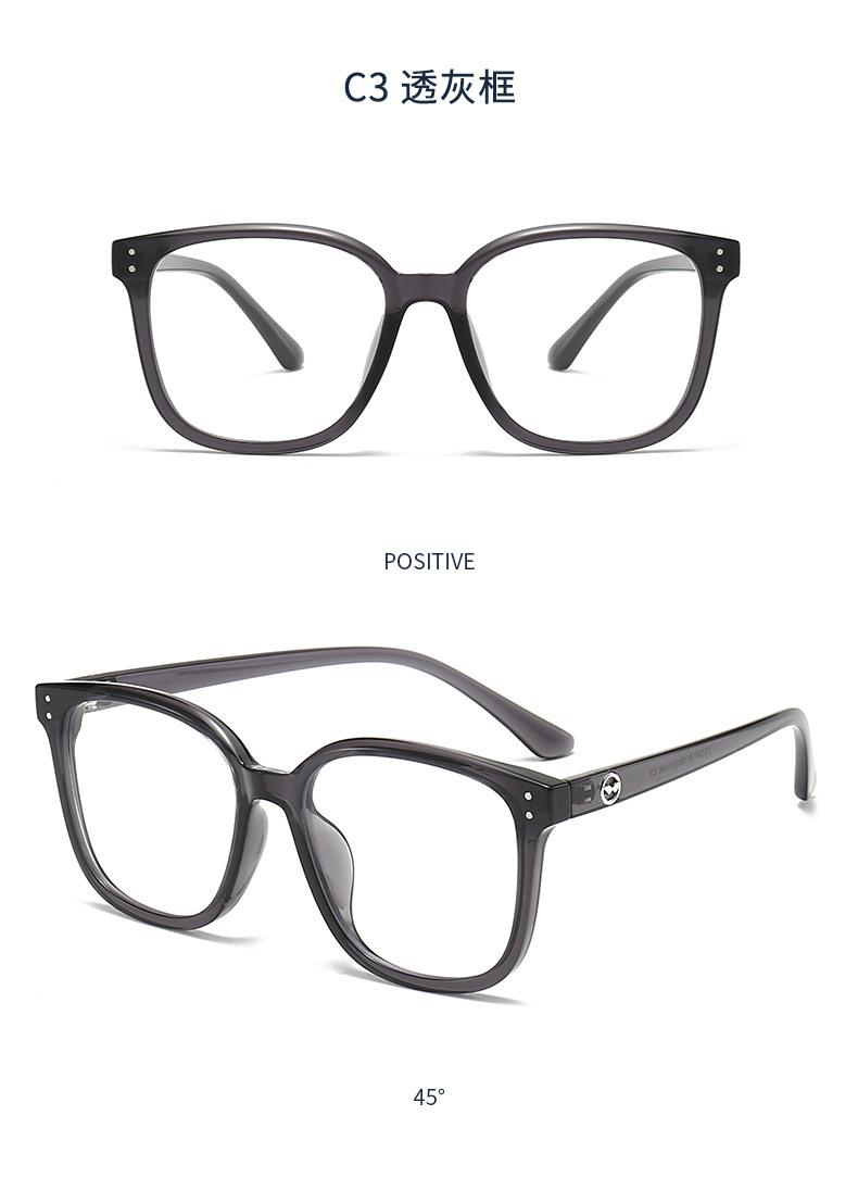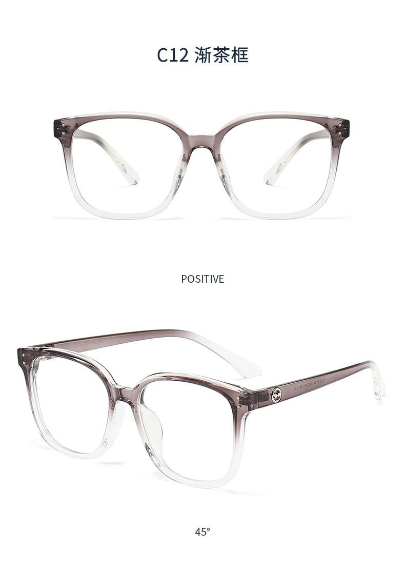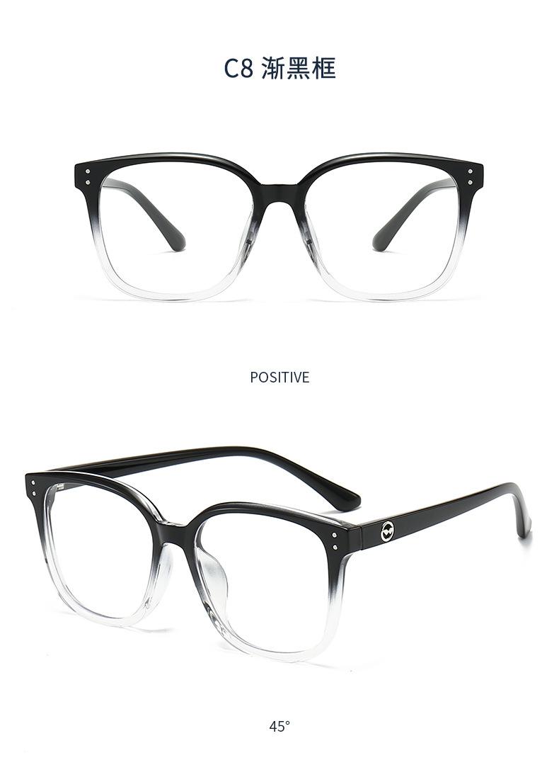 1247 Nuevas gafas ópticas TR90 de montura grande de celebridades de Internet, montura negra, gafas lisas anti-luz azul para hombres y mujeres.
