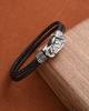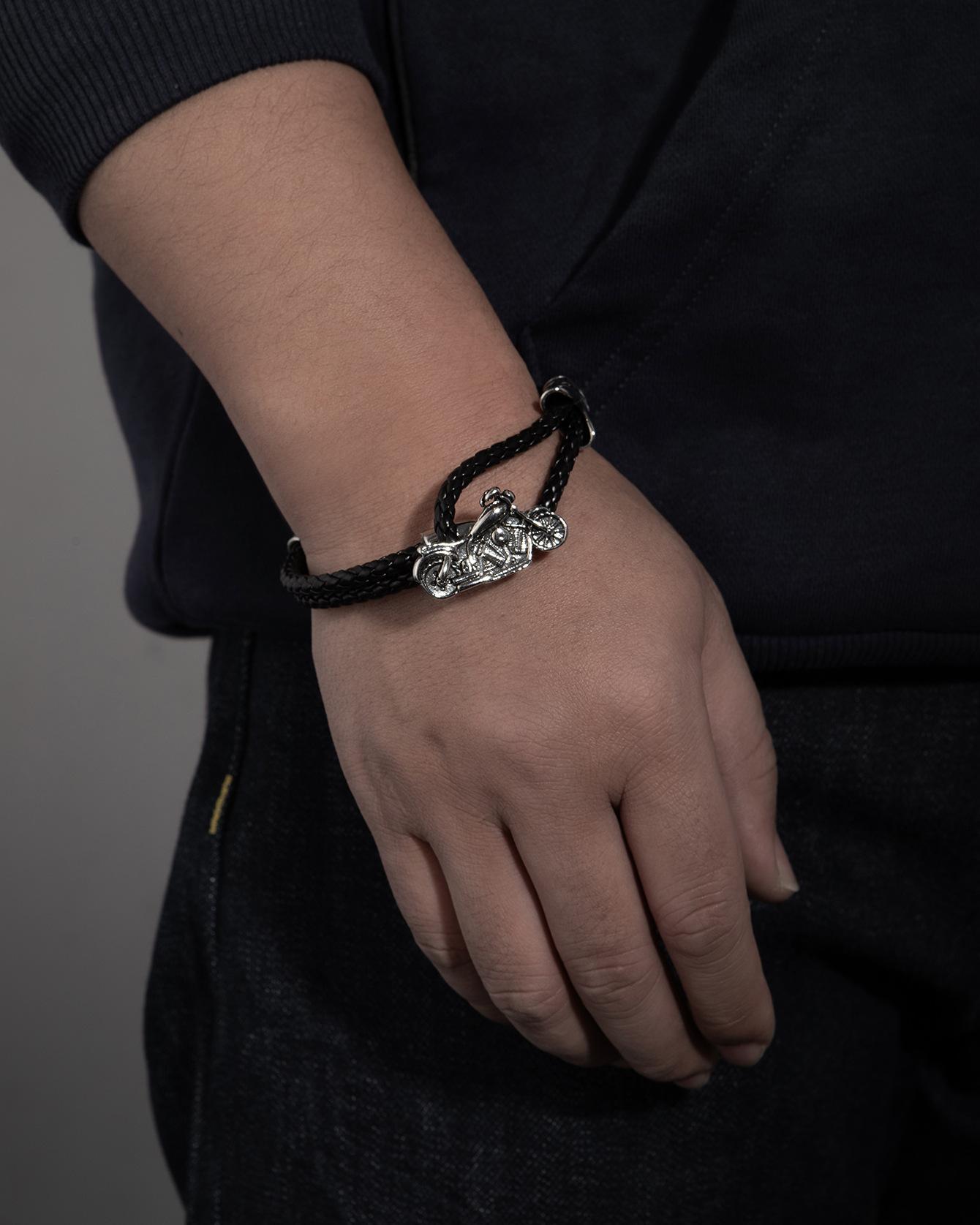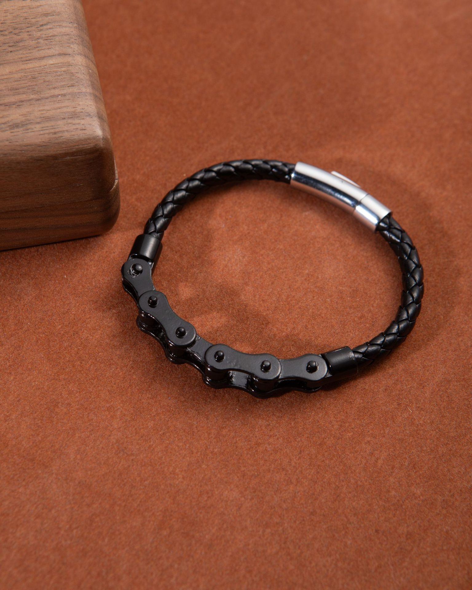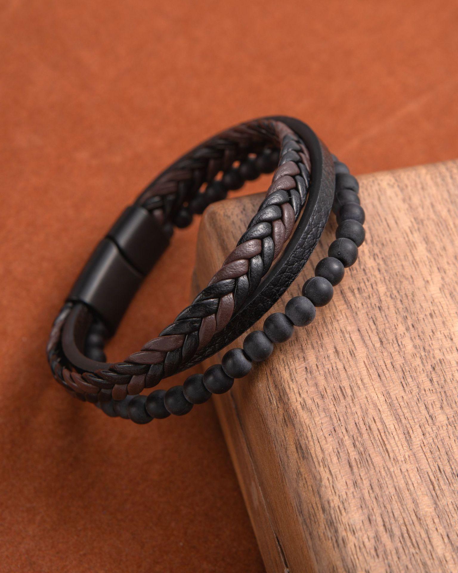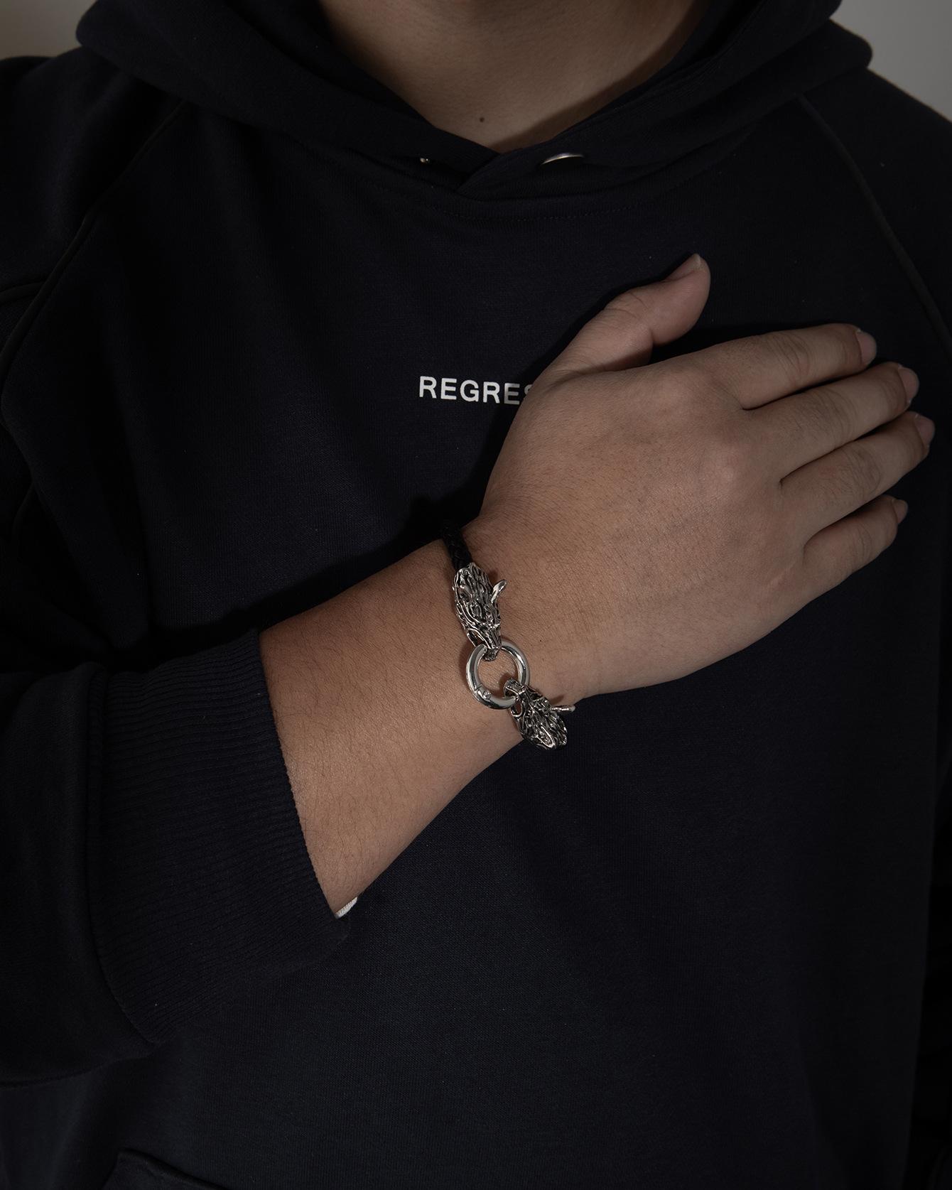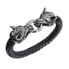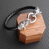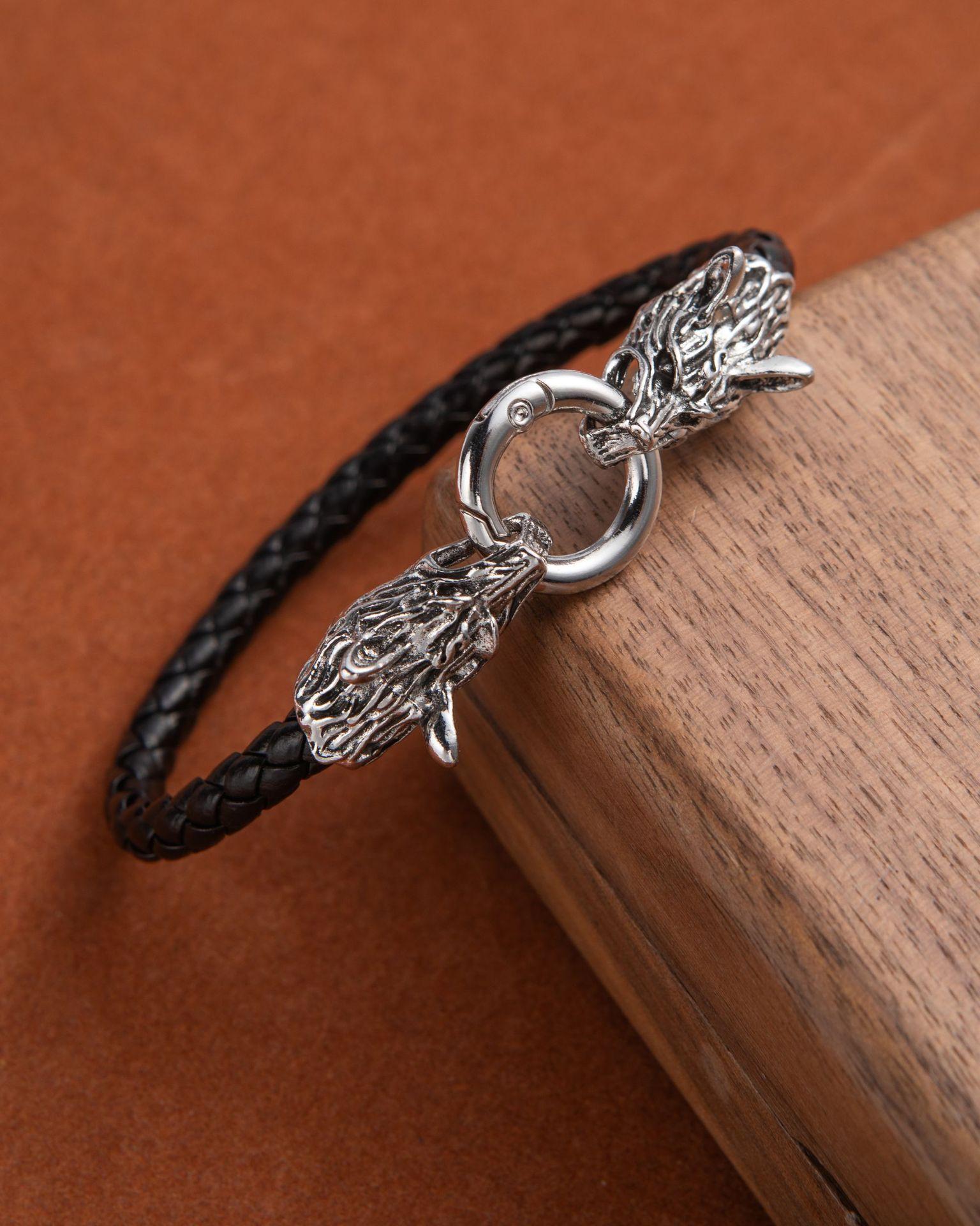 Pulsera punk de cuero con cabeza de lobo para comercio exterior europeo y americano, pulsera de cuentas tejida a mano, joyería de mano personalizada para hombre, suministro al por mayor