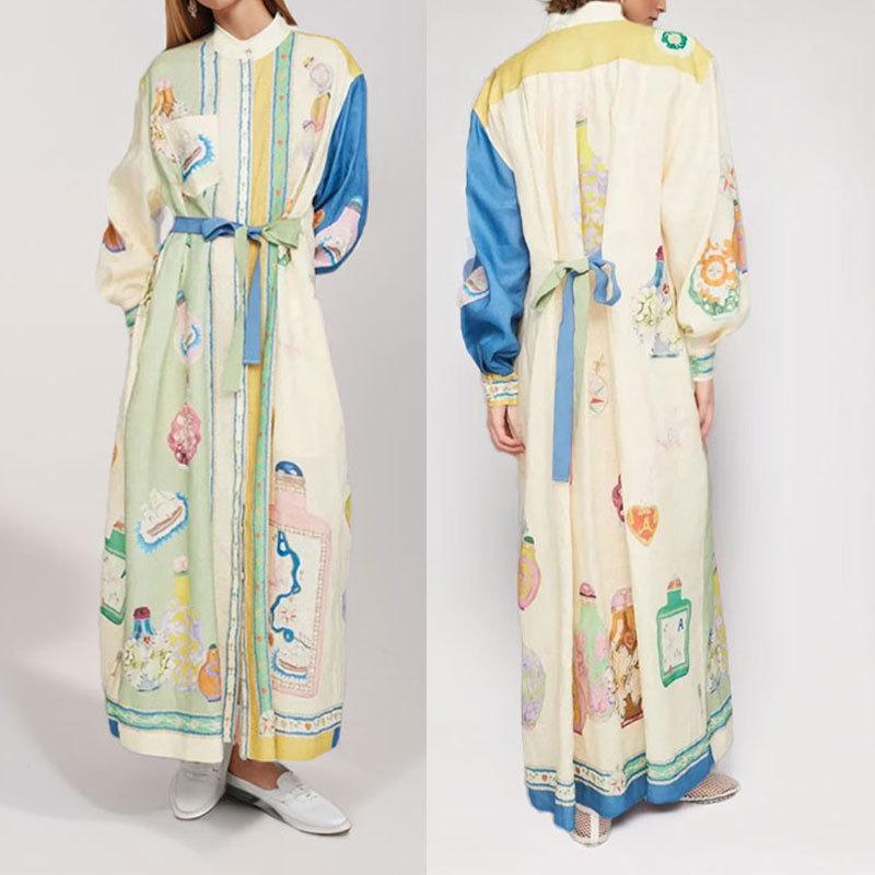 Vestido elegante con estampado de tirantes en la cintura para mujer europea y americana de Amazon Spring 2025