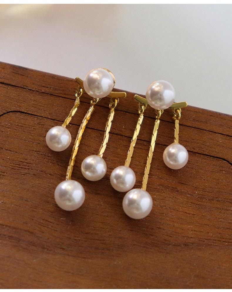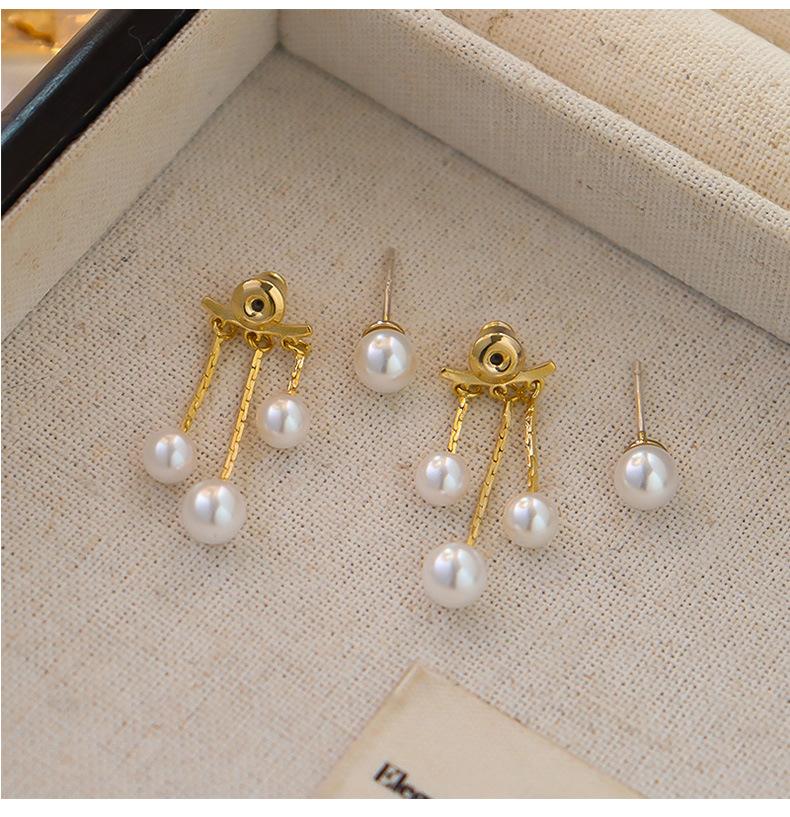 Pendientes de borlas de perlas sencillos de nueva moda francesa, de alta gama, diseño exquisito y versátil, largos para usar dos veces.