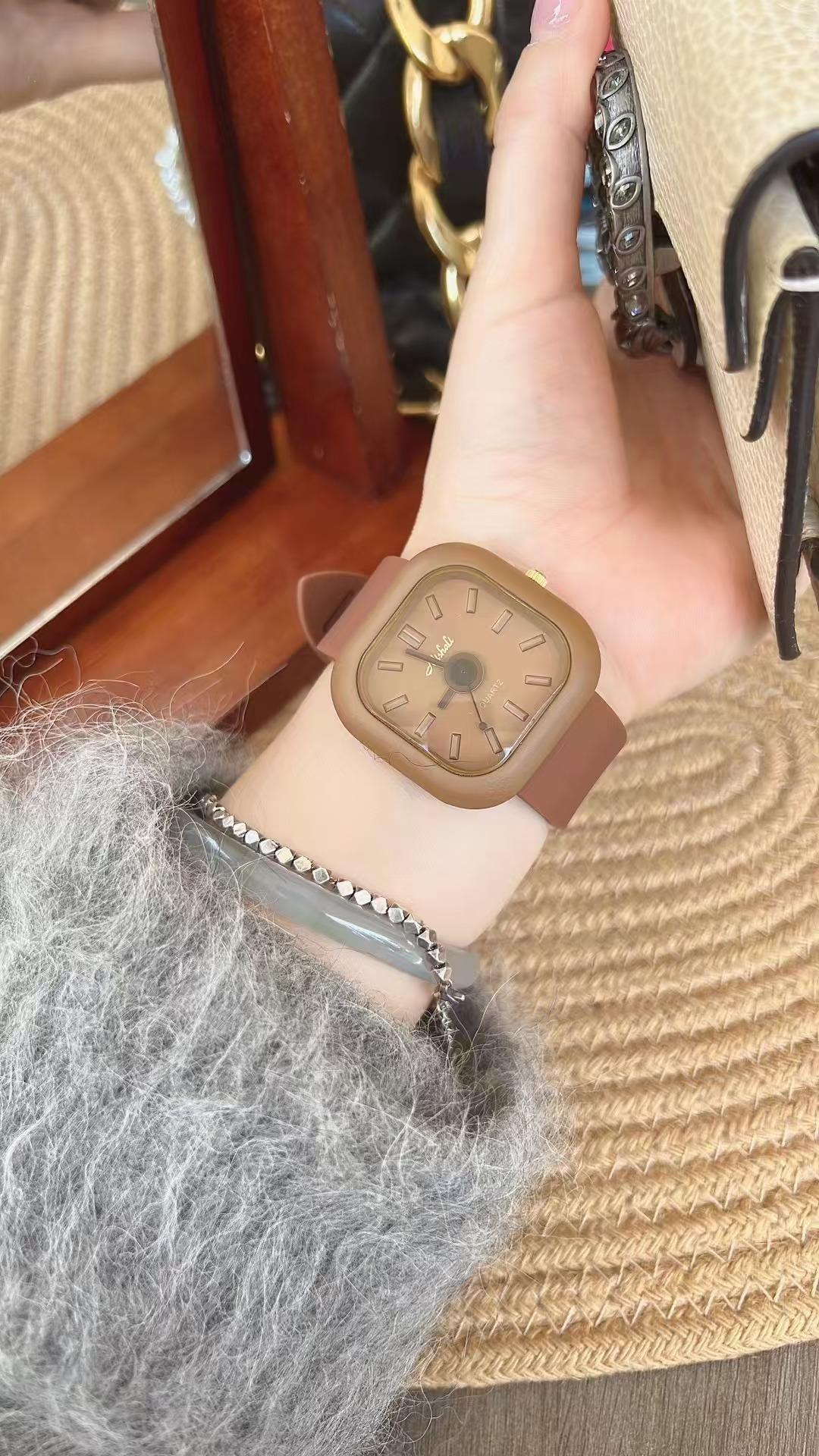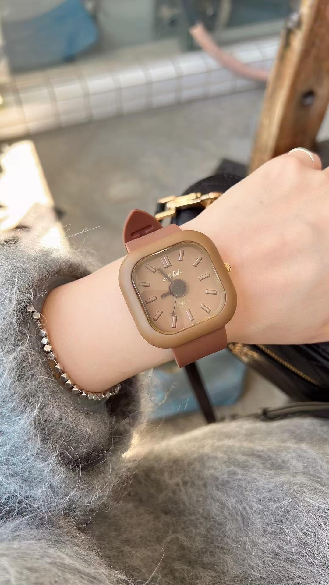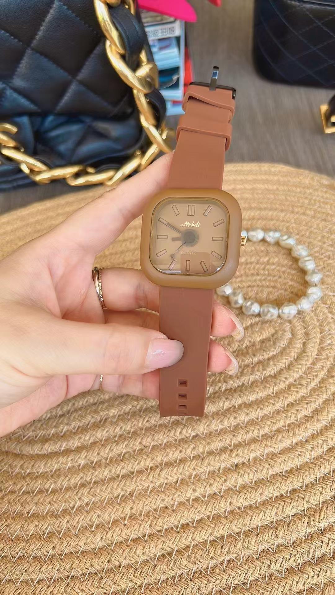 Reloj Melissa Maillard con esfera grande marrón para mujer, correa de silicona, informal, de moda, unisex, resistente al agua, de marca.