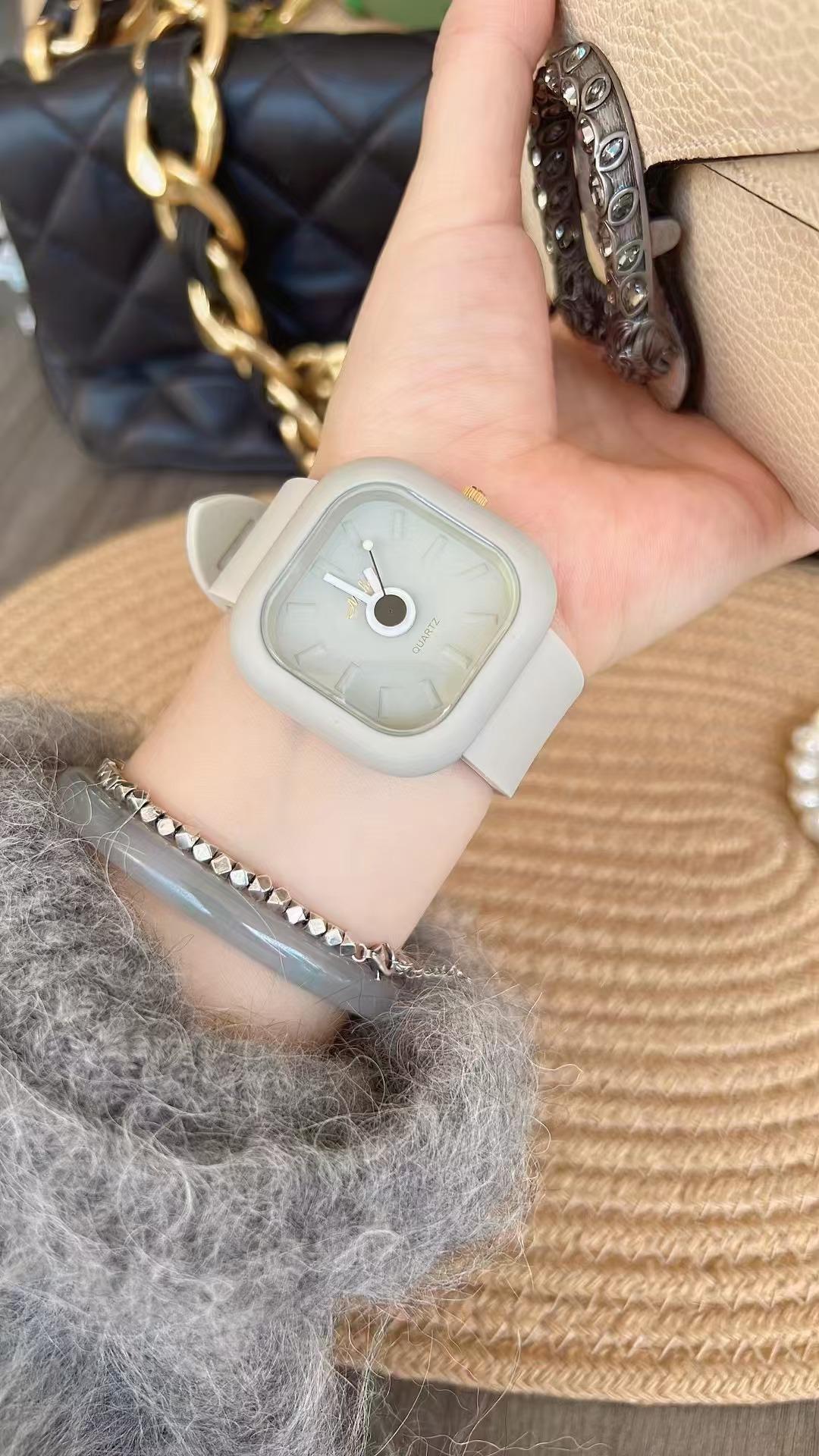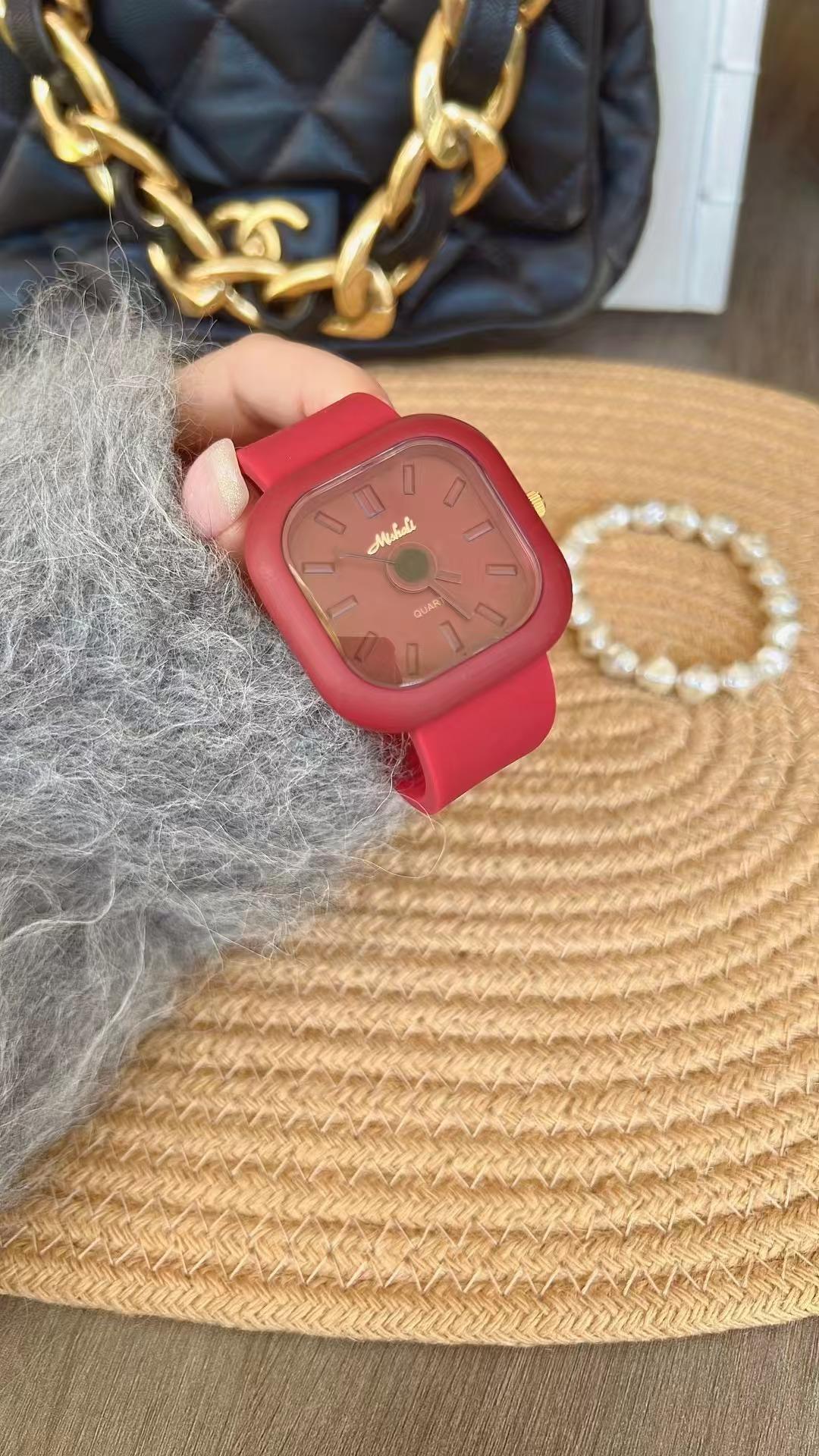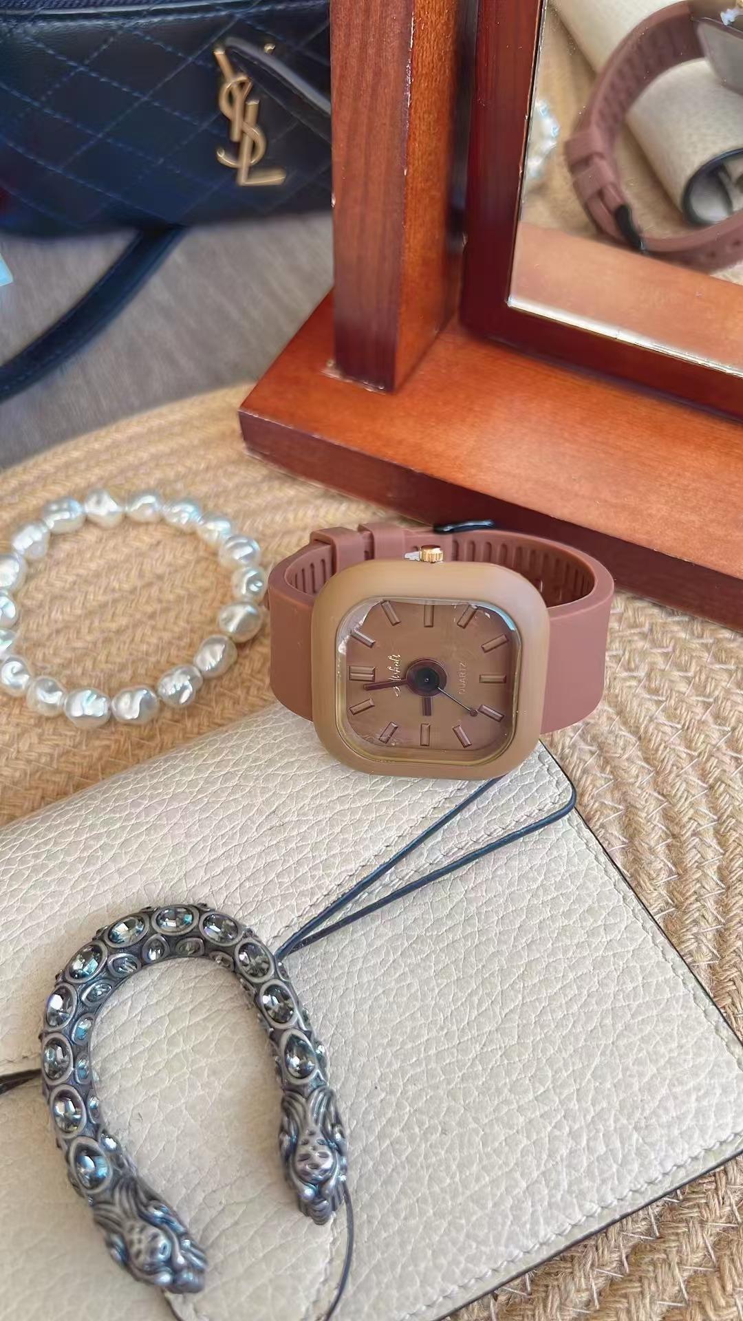 Reloj Melissa Maillard con esfera grande marrón para mujer, correa de silicona, informal, de moda, unisex, resistente al agua, de marca.