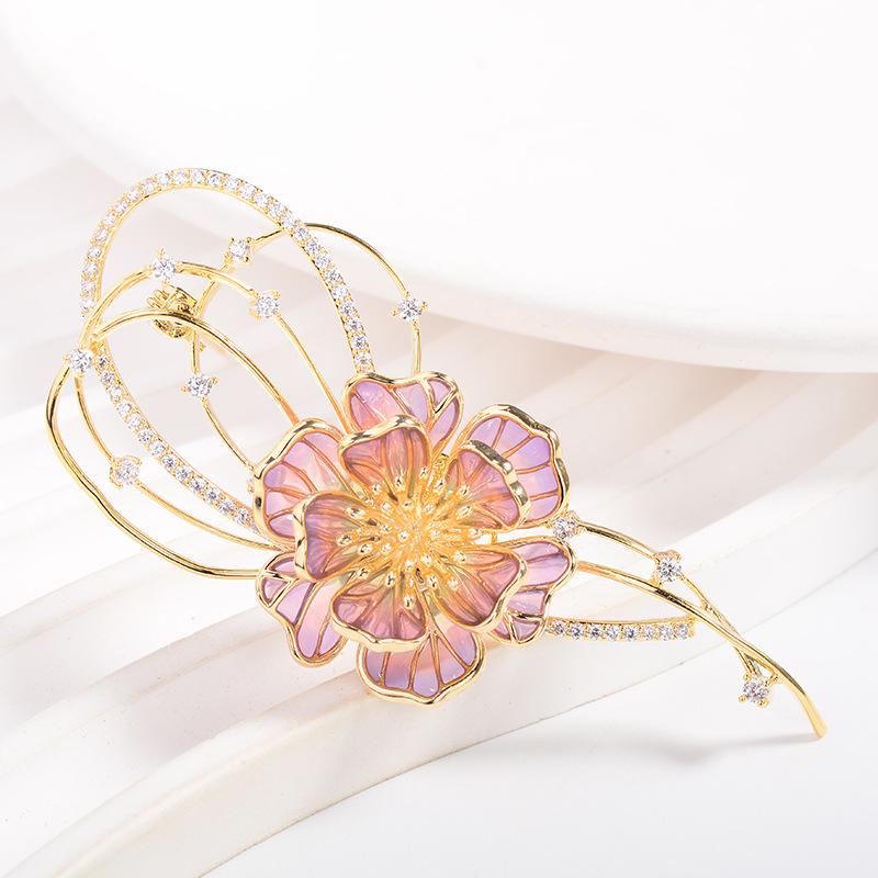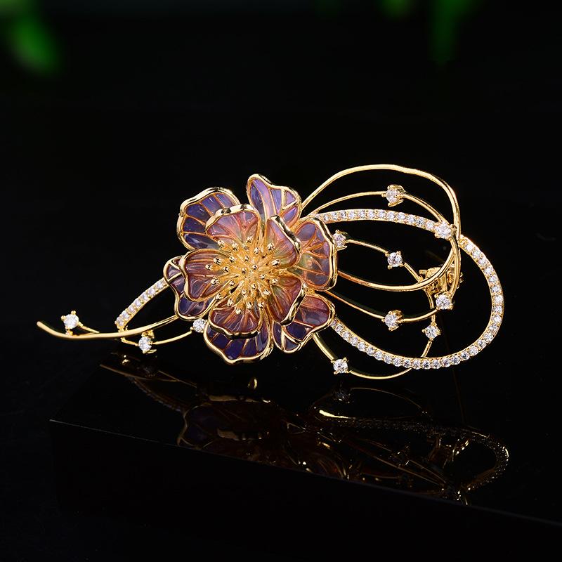 Broche de flor de iris elegante y moderno, con un toque avanzado, delicado y lujoso, esmaltado, ideal para trajes y abrigos.