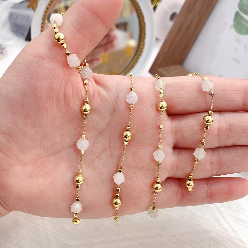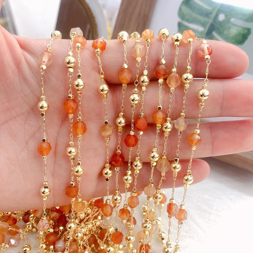 Suministro de comercio electrónico transfronterizo cadena de cuentas chapadas en oro de 5 mm semiacabada de piedra natural hecha a mano DIY collar pulsera al por mayor