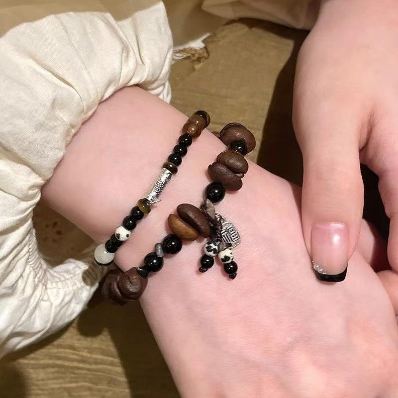 Pulsera Apilada Ojo de Tigre Estilo Chino Nuevo Vintage Grano de Café Diseño Nicho Todo Combinable Accesorios Pulsera de Pareja