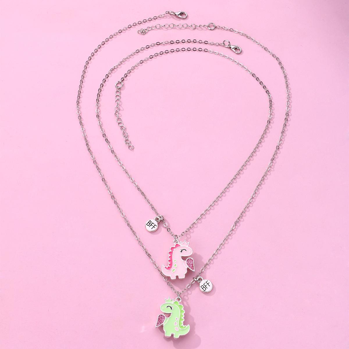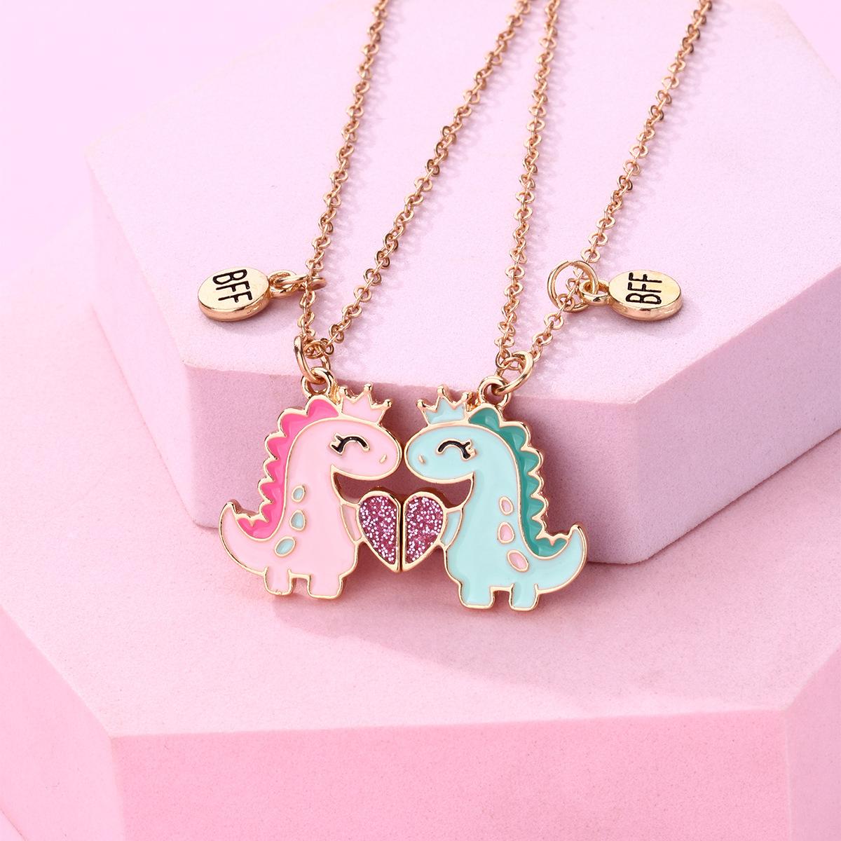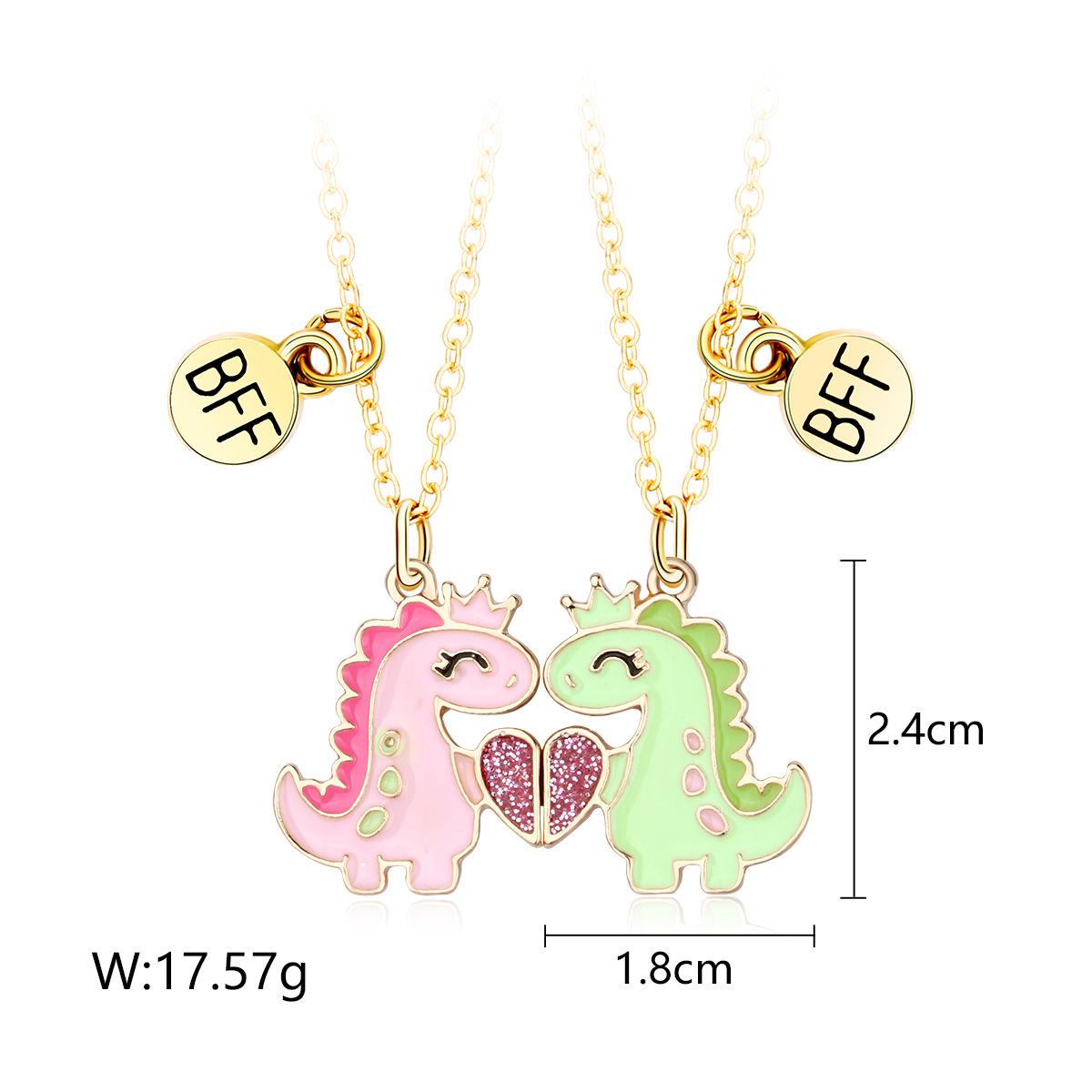 Nuevo y lindo collar de dinosaurio pequeño con corona transfronteriza, colgante magnético de amor, joyería con letras de aceite de gota de Amazon, venta al por mayor