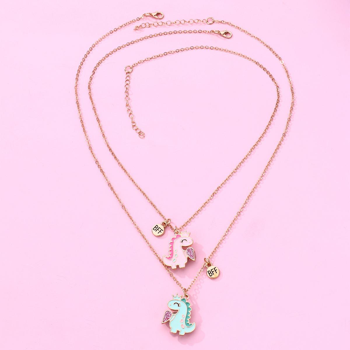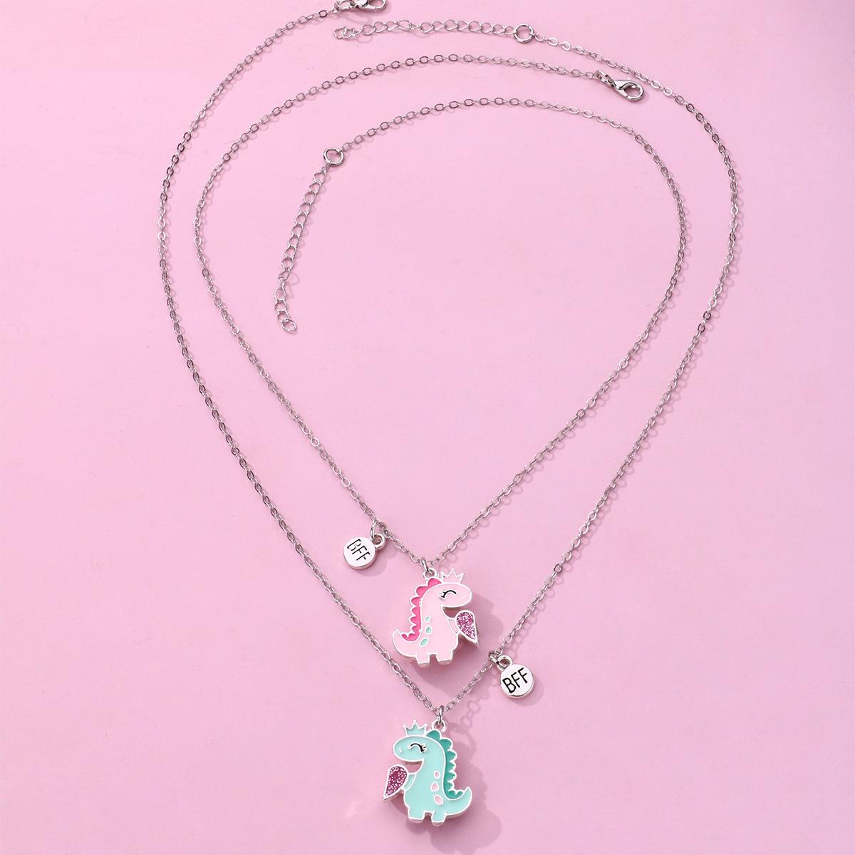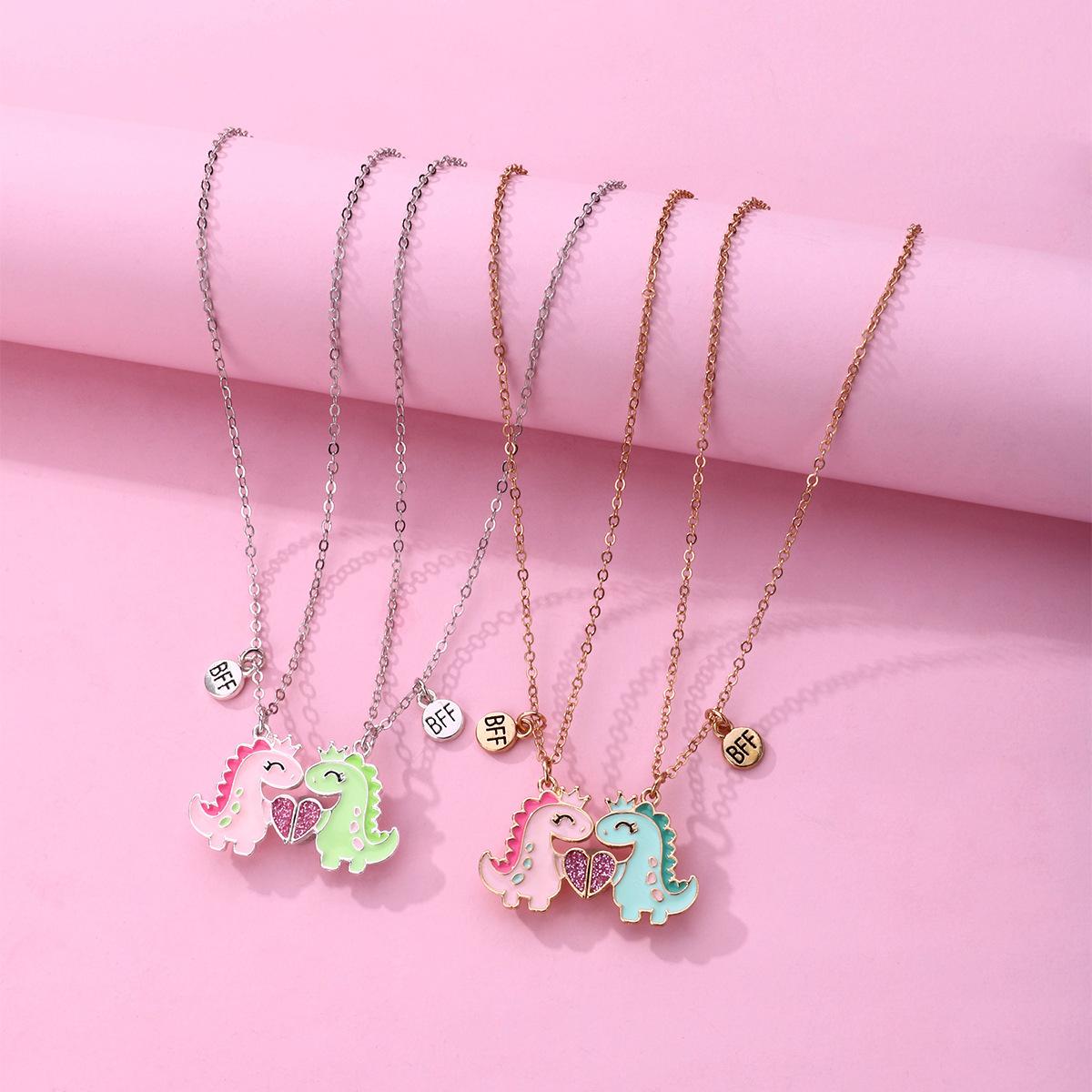 Nuevo y lindo collar de dinosaurio pequeño con corona transfronteriza, colgante magnético de amor, joyería con letras de aceite de gota de Amazon, venta al por mayor