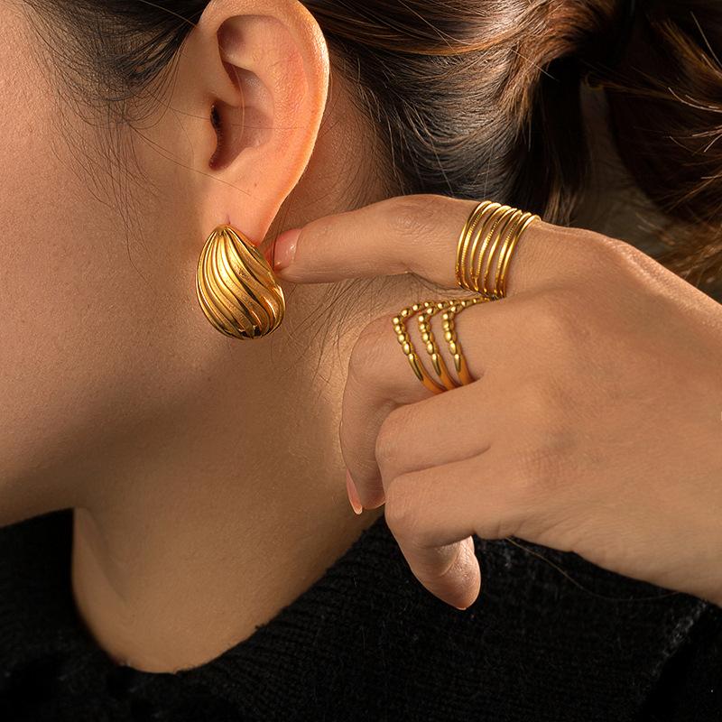 Pendientes de estilo europeo y americano con diseño de rayas geométricas, hilo, acero inoxidable, titanio y oro de 18 quilates.