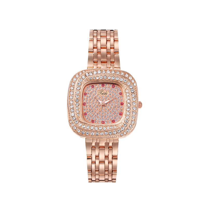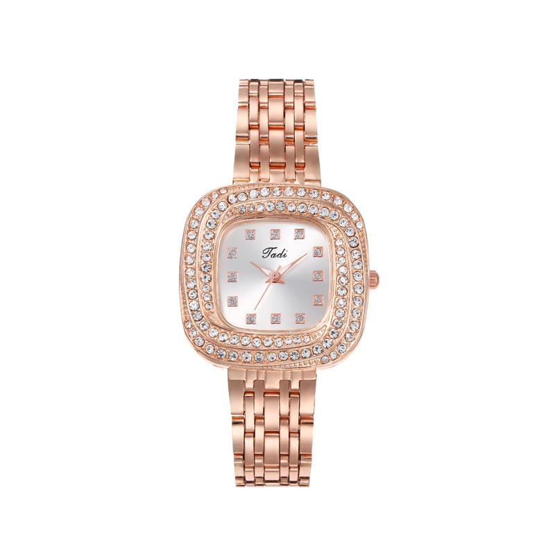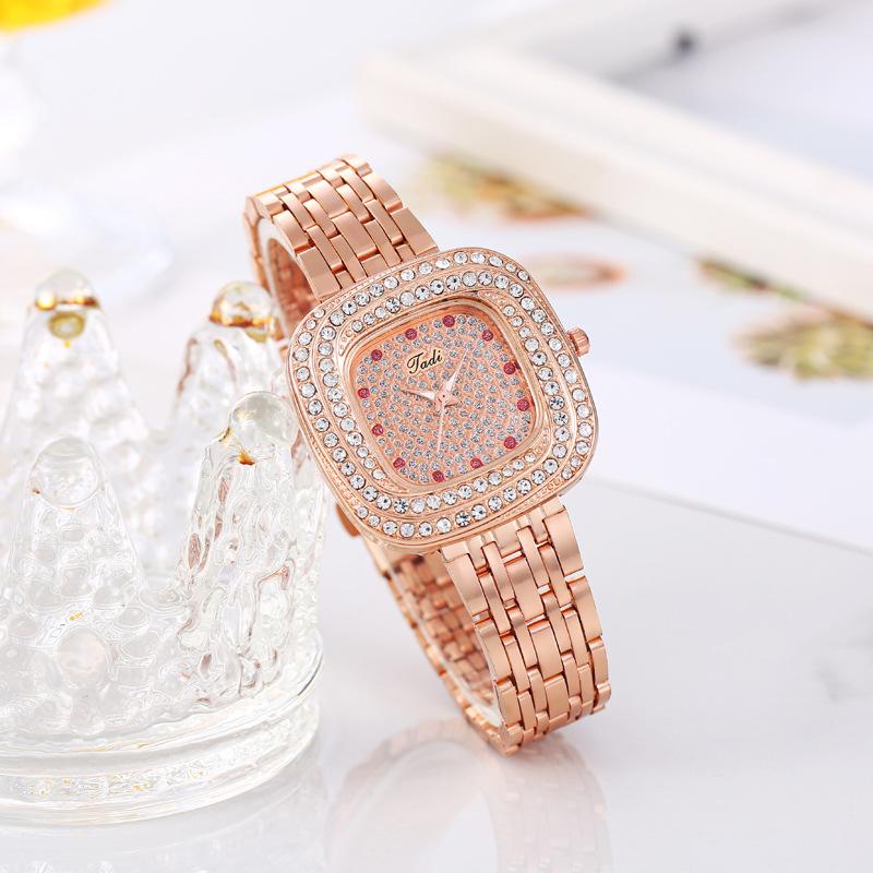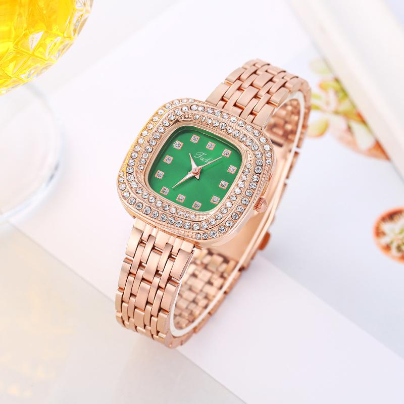 Reloj de mujer Tiktok de moda popular personalizado con diamantes cuadrados incrustados, reloj de cuarzo con correa de acero a juego de moda, venta al por mayor de fábrica