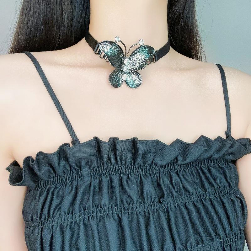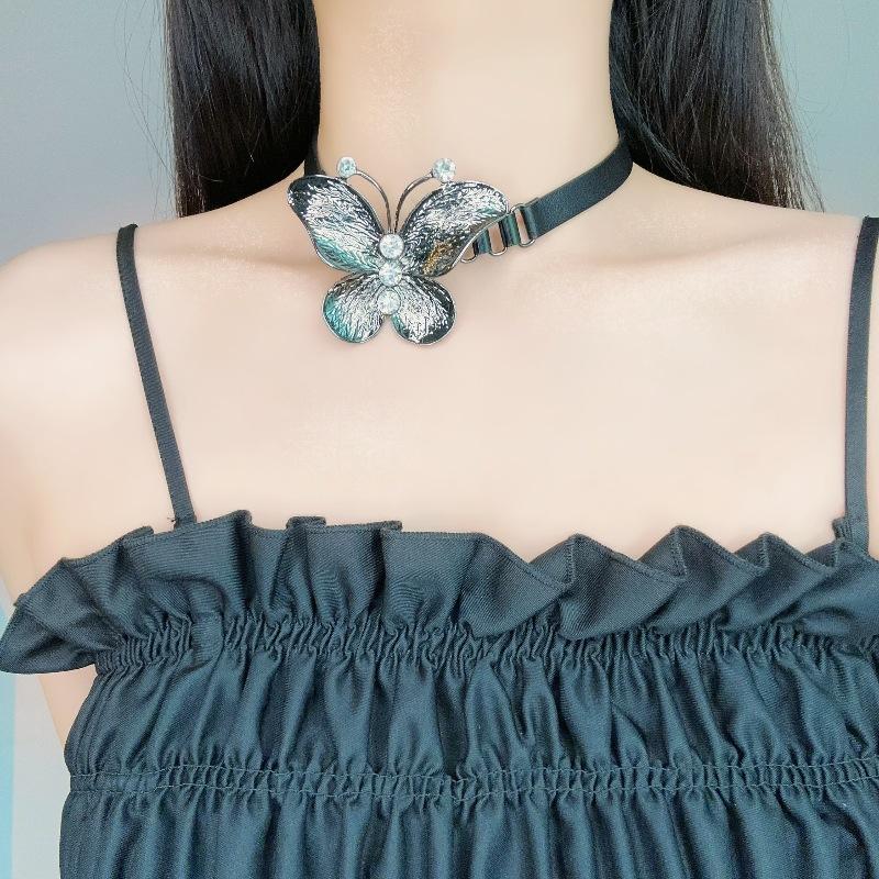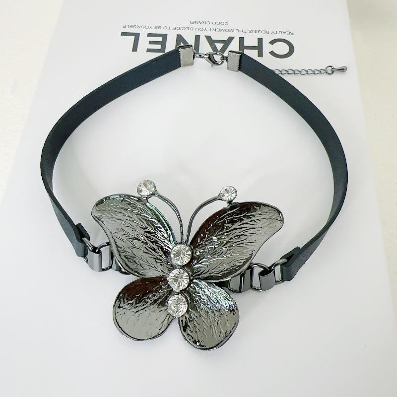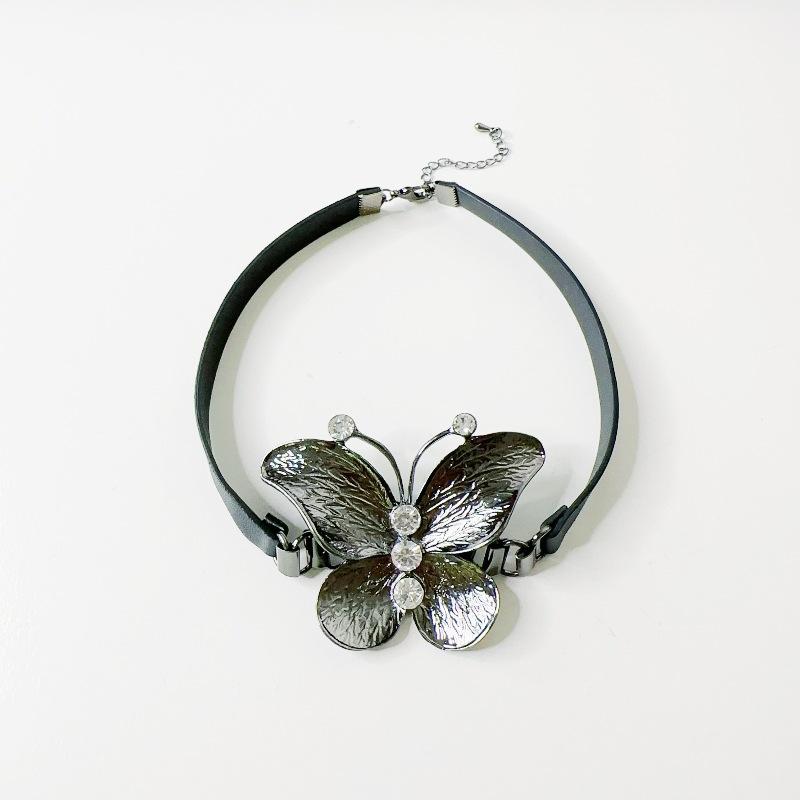 Collar de cuero con diseño de mariposa y elegante diseño de nicho para mujer, collar de cadena de clavícula sencillo y combinable con todo.