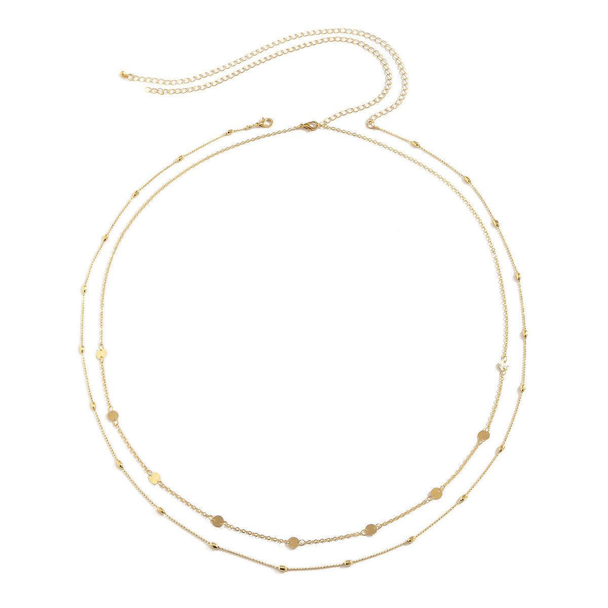 Compra Verano Playa sexy cadena corporal simple sexy metal lentejuelas cadena de cintura moda femenina doble capa cadena corporal cadena de cintura femenina al por mayor en Joom.pro