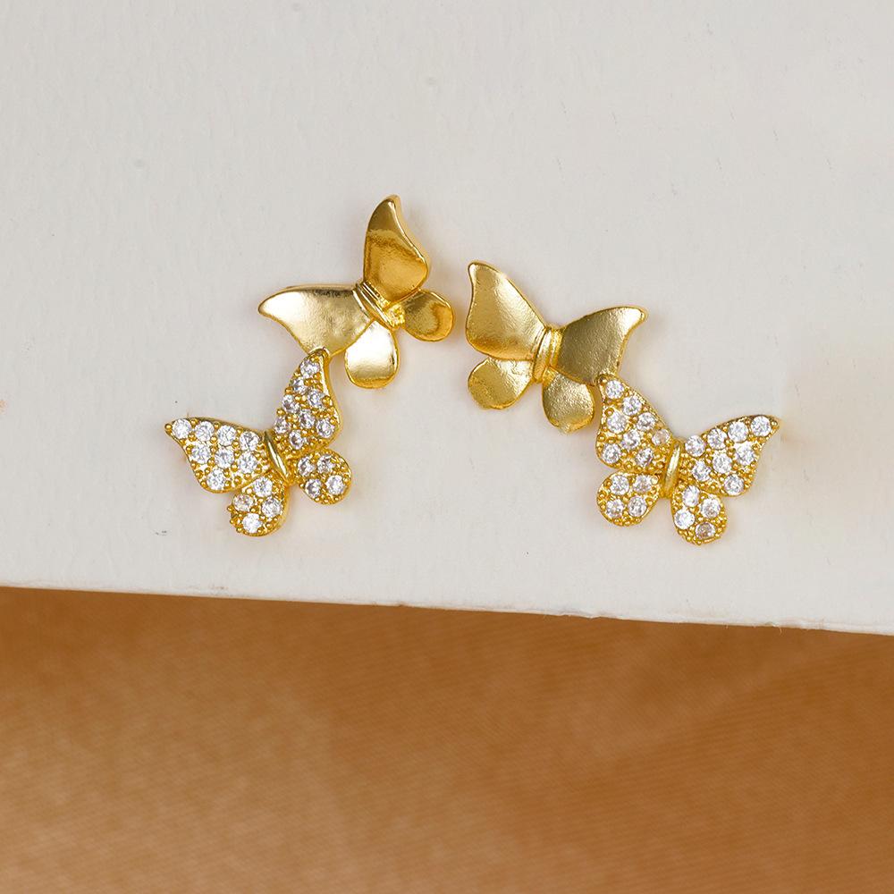 Compra Pendientes de cartílago personalizados con doble mariposa Mori, de moda europea y americana, con circonitas, pendientes de mariposa de moda para mujer. al por mayor en Joom.pro