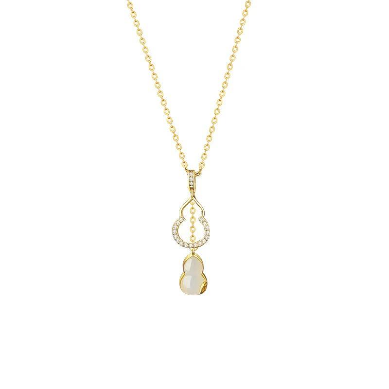 Compra Collar de calabaza de calcedonia de plata esterlina S925, colgante de nicho con temperamento de marea nacional, colgante de fortuna hueco, cadena de clavícula con borla, venta al por mayor para mujeres al por mayor en Joom.pro