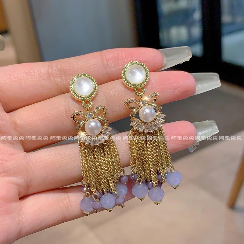 Pendientes de borlas de cristal retro de la industria pesada, nueva moda 2024, personalidad exagerada, pendientes largos de alta gama para mujer