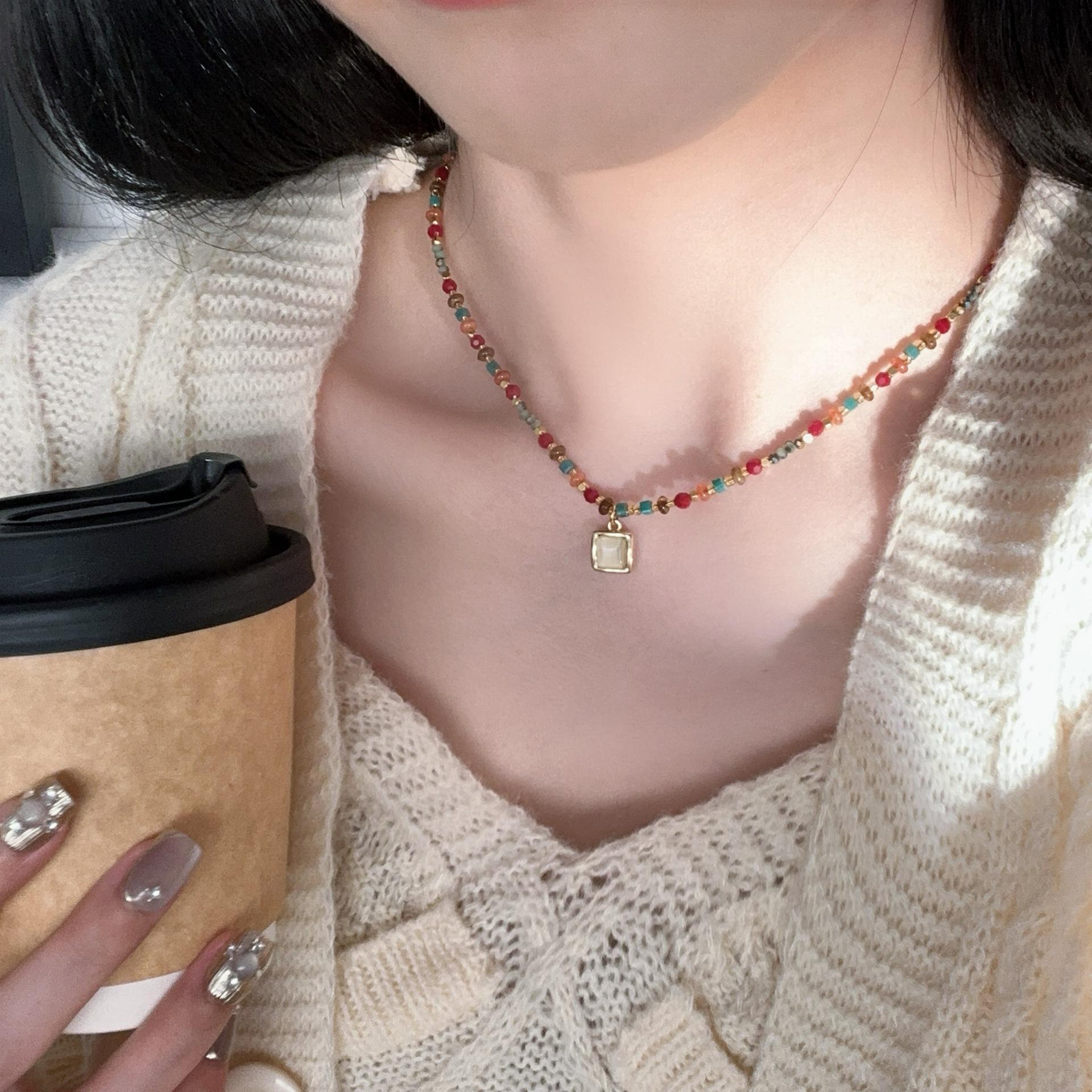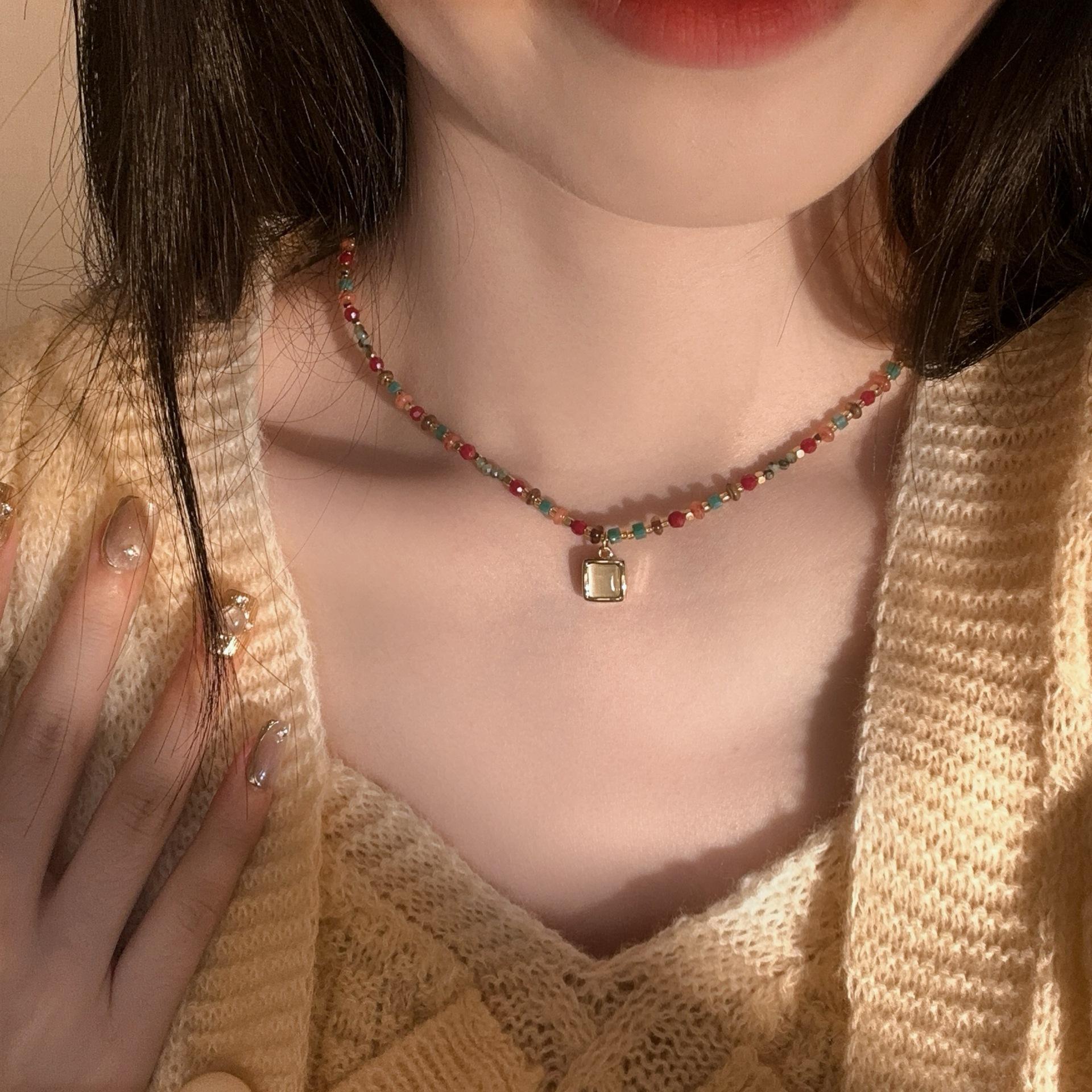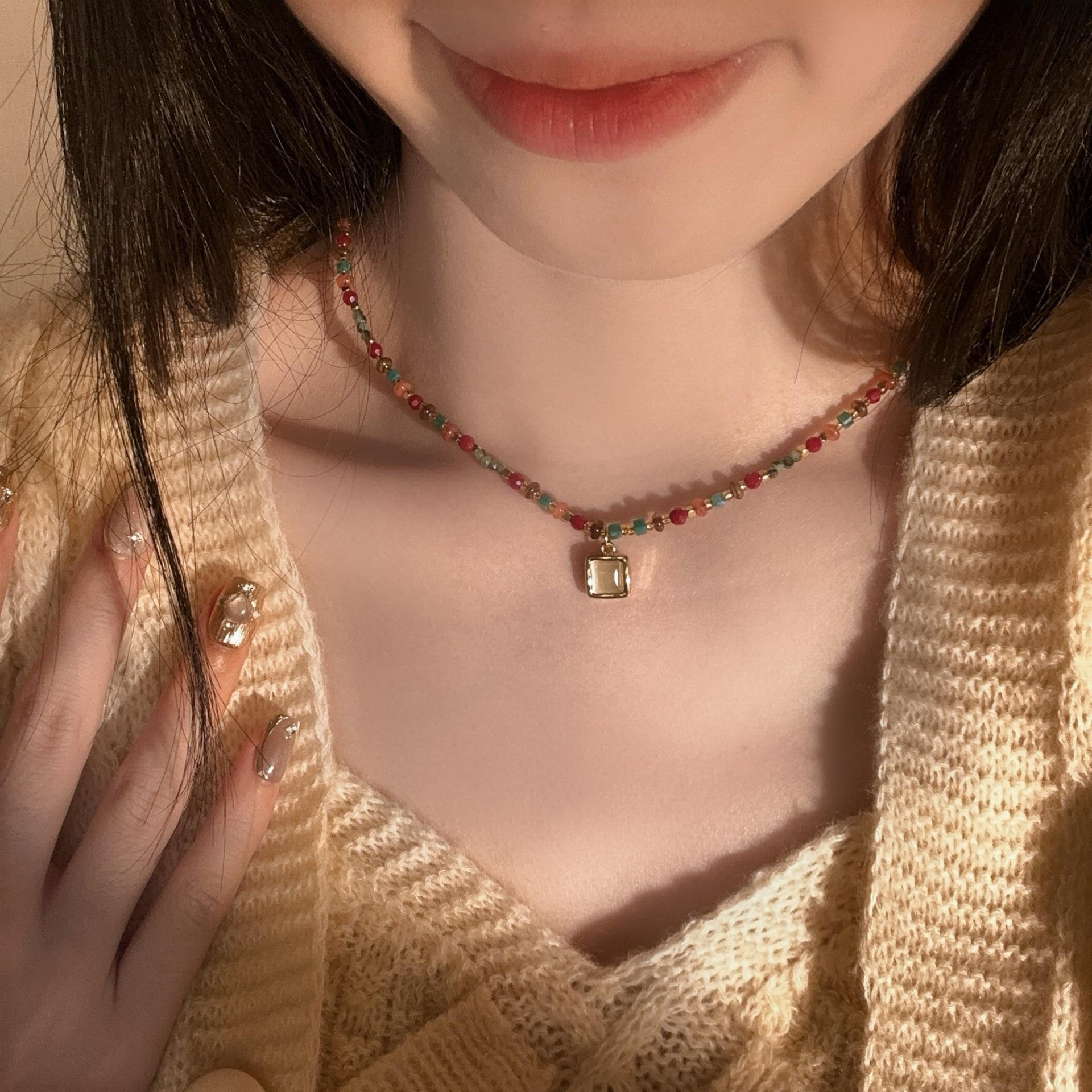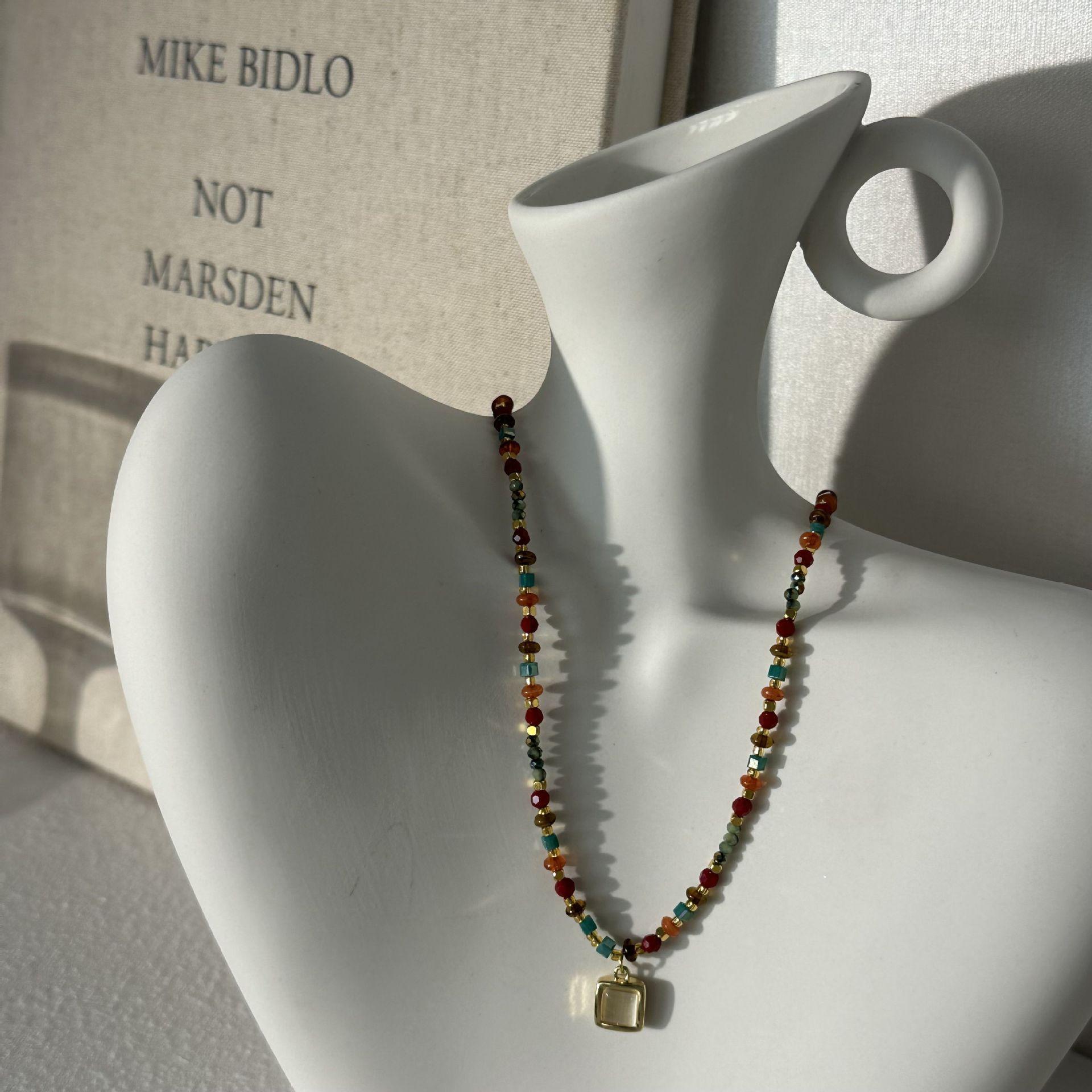 N1186 sugar cube cat eye beaded necklace