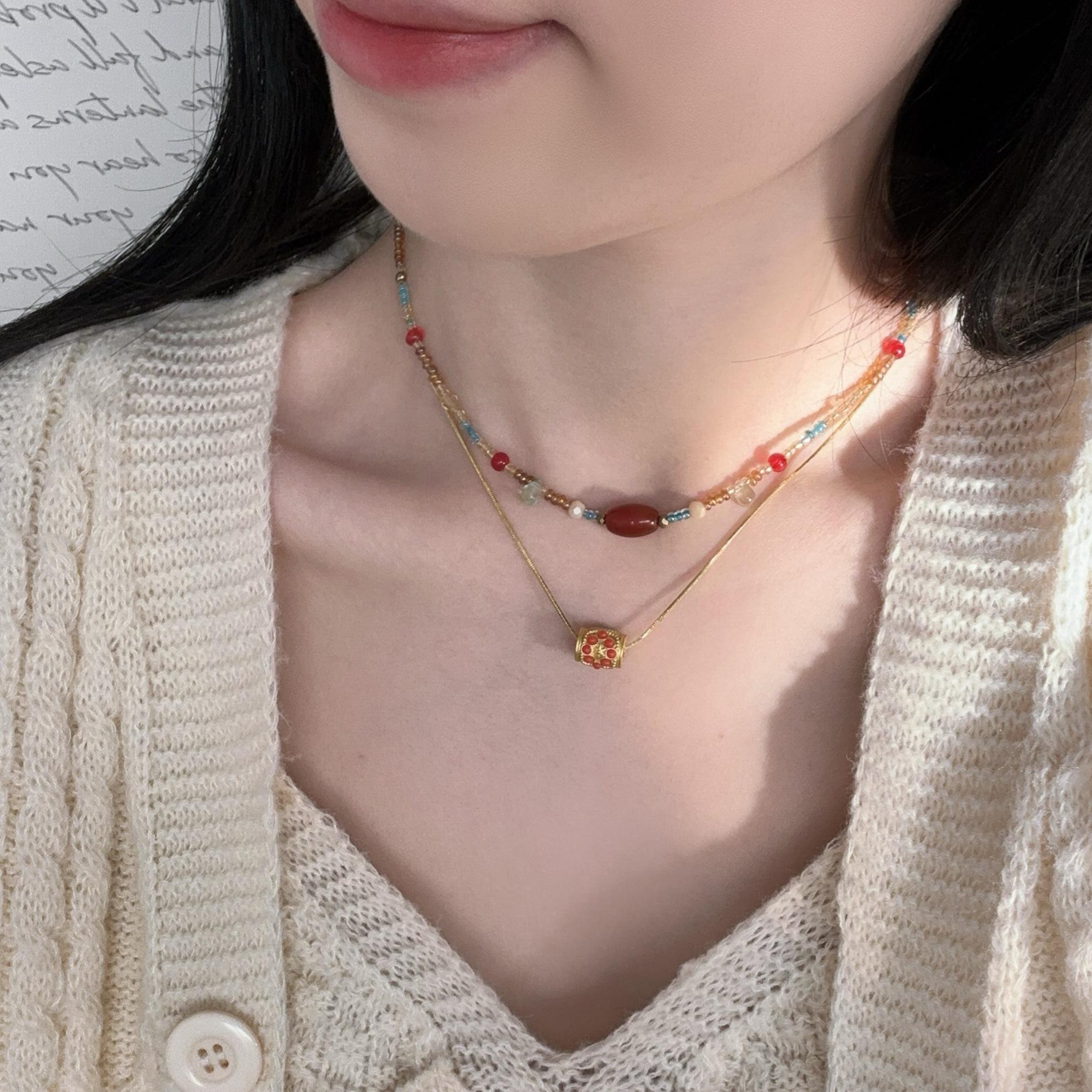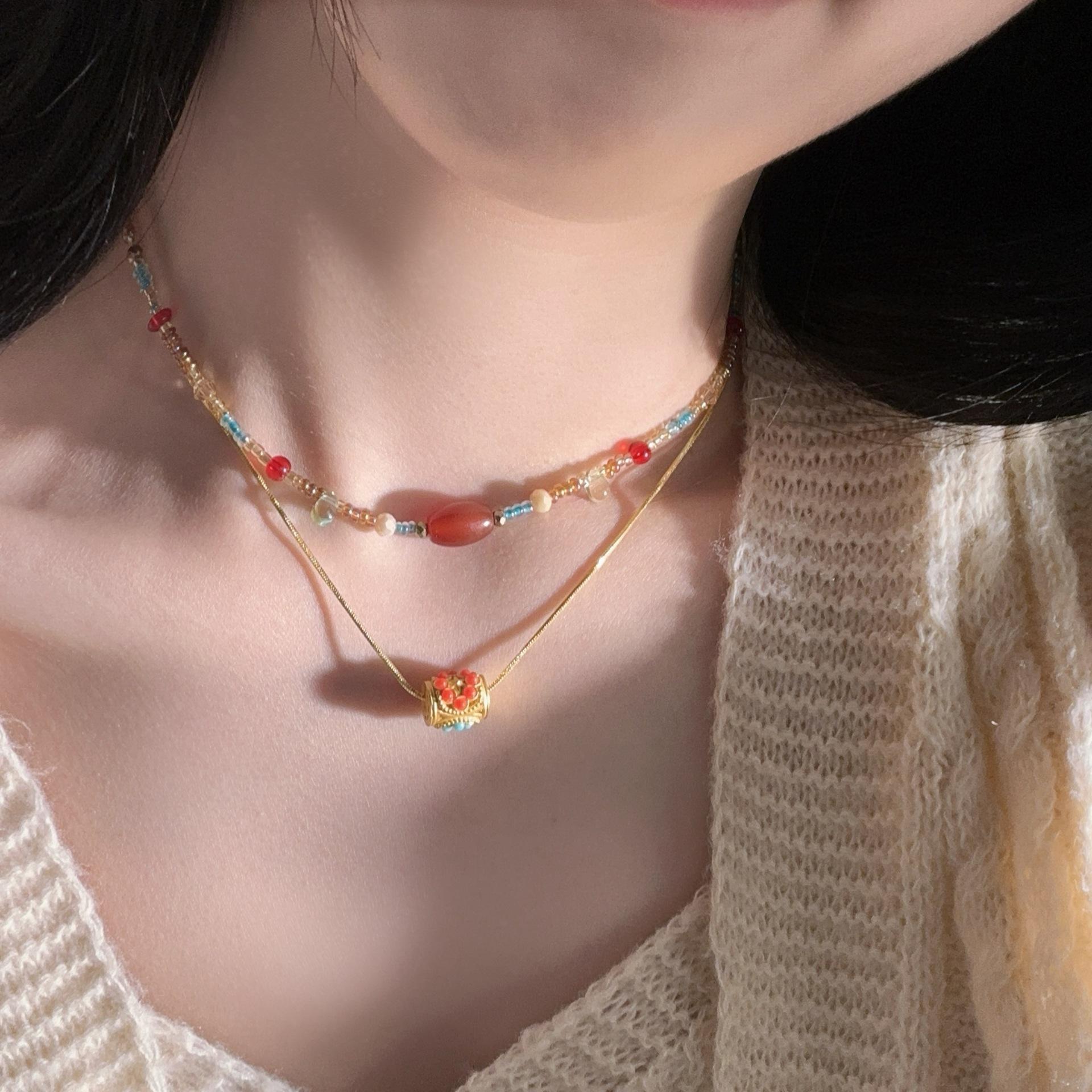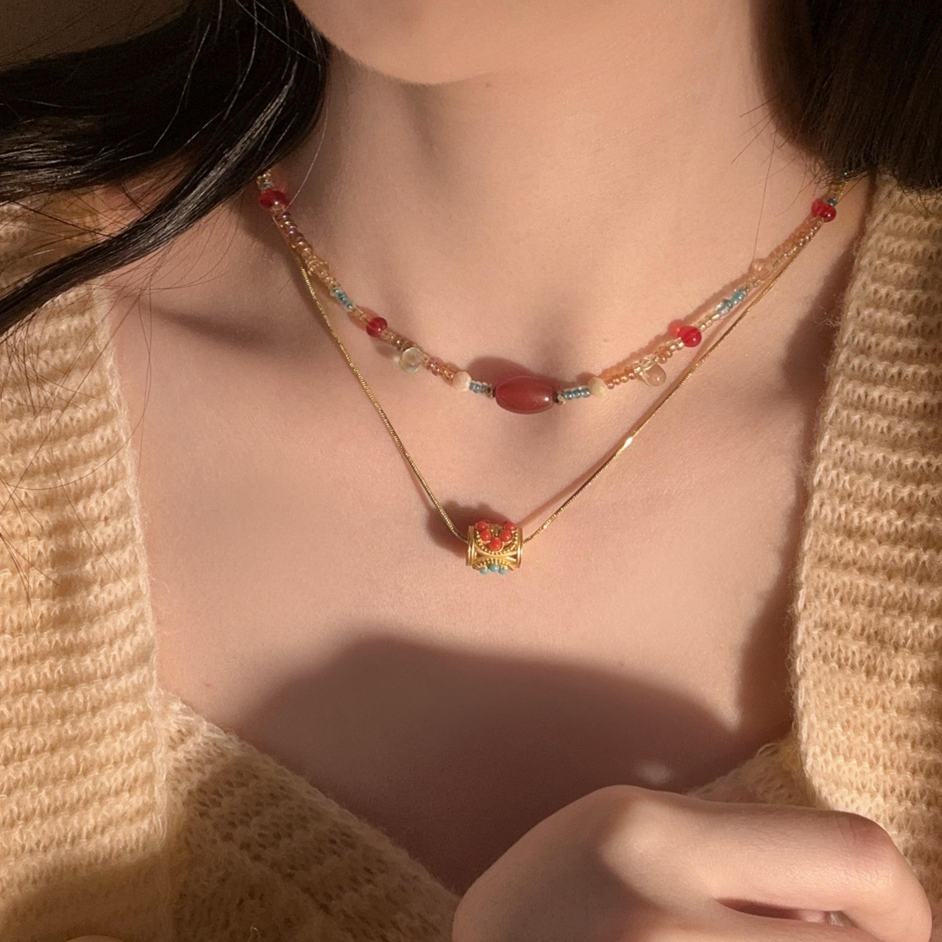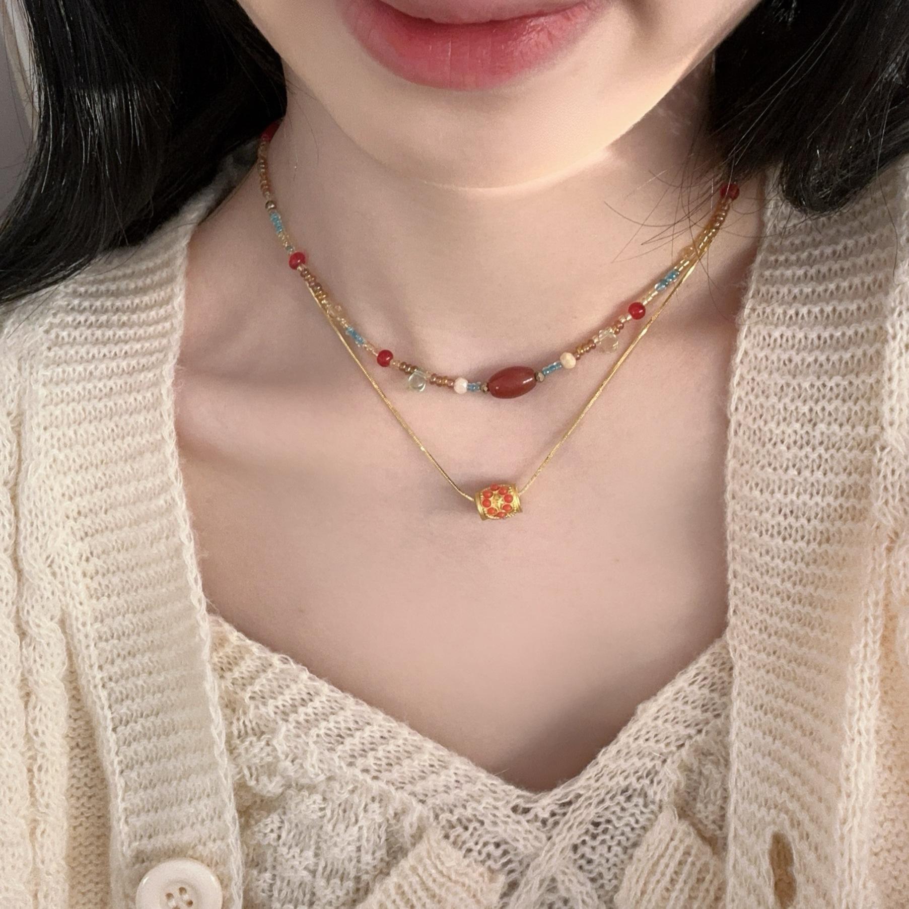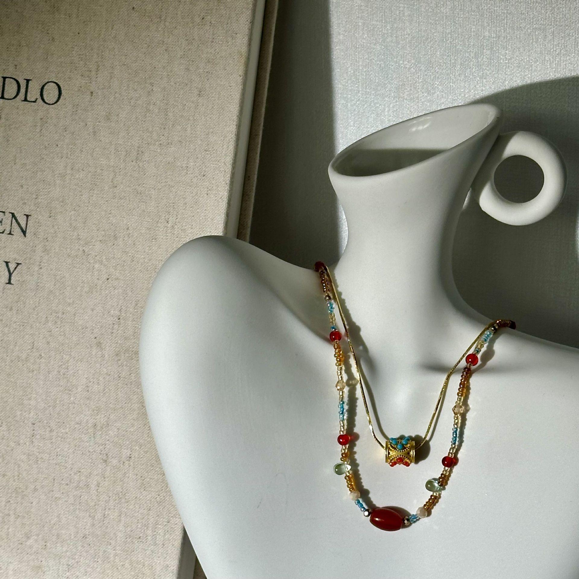 N1187 dunhuang beaded double layer necklace
