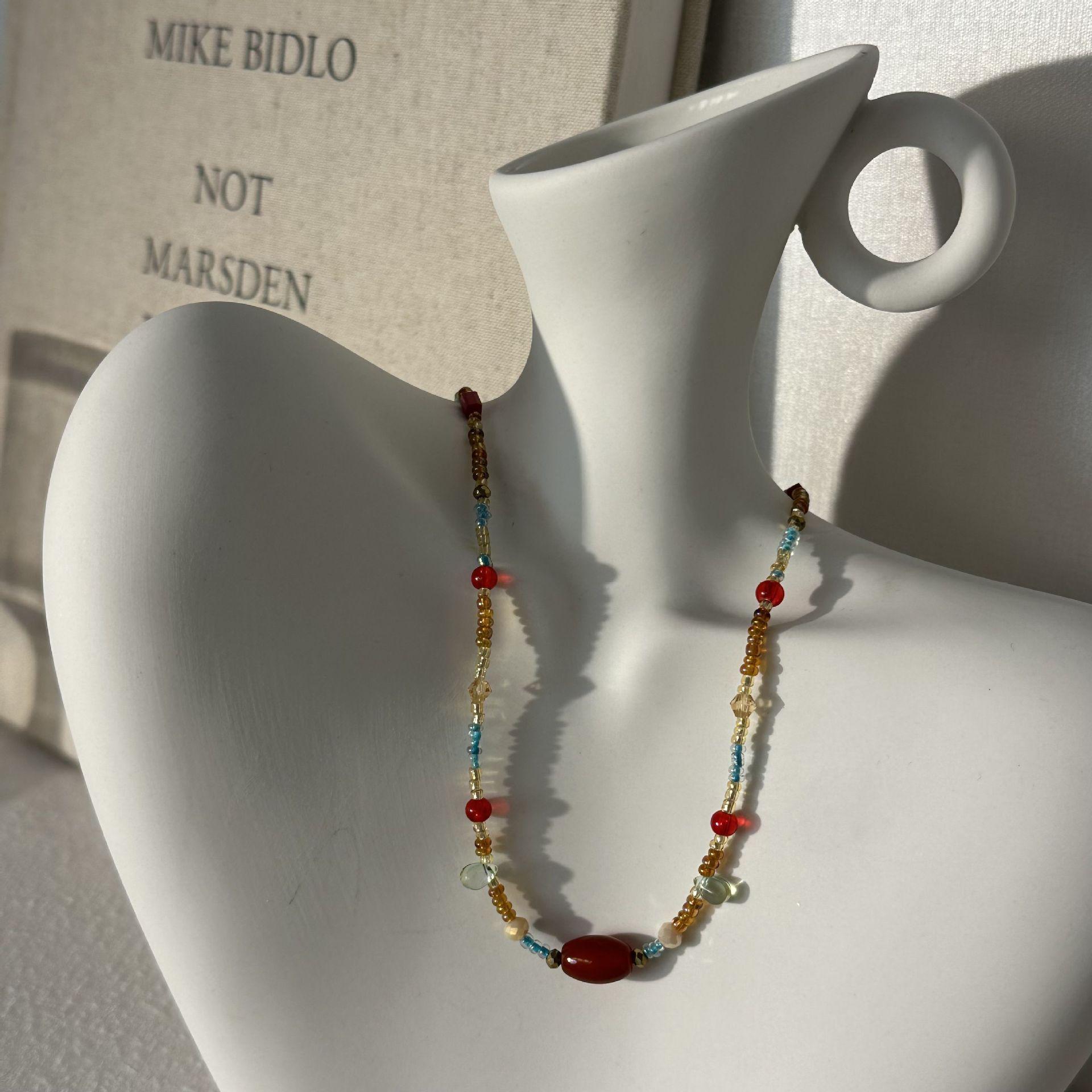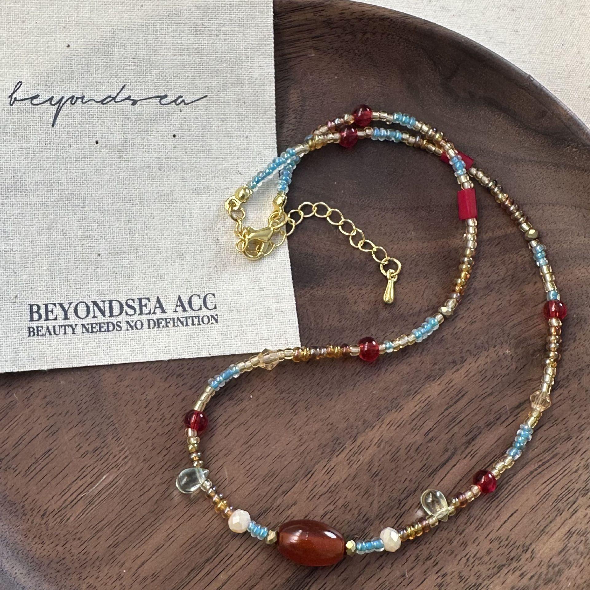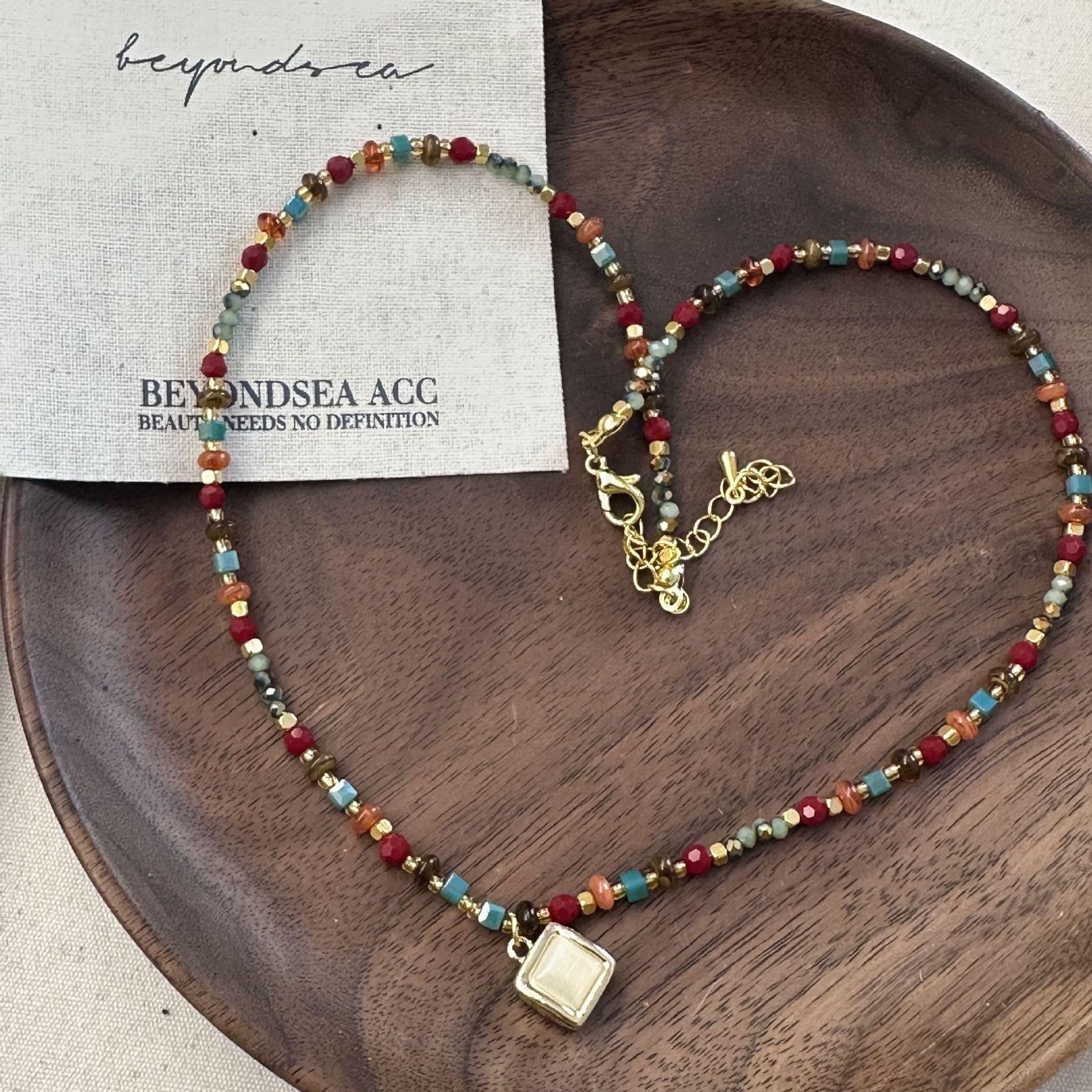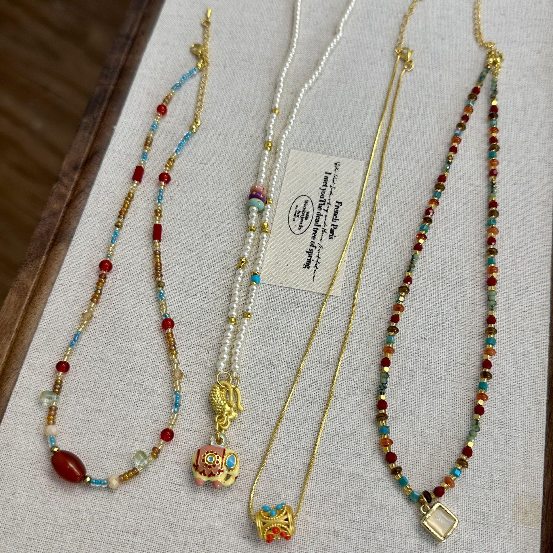 N1187 dunhuang beaded double layer necklace, N1186 sugar cube cat eye beaded necklace, N1166 pearl elephant sand gold necklace