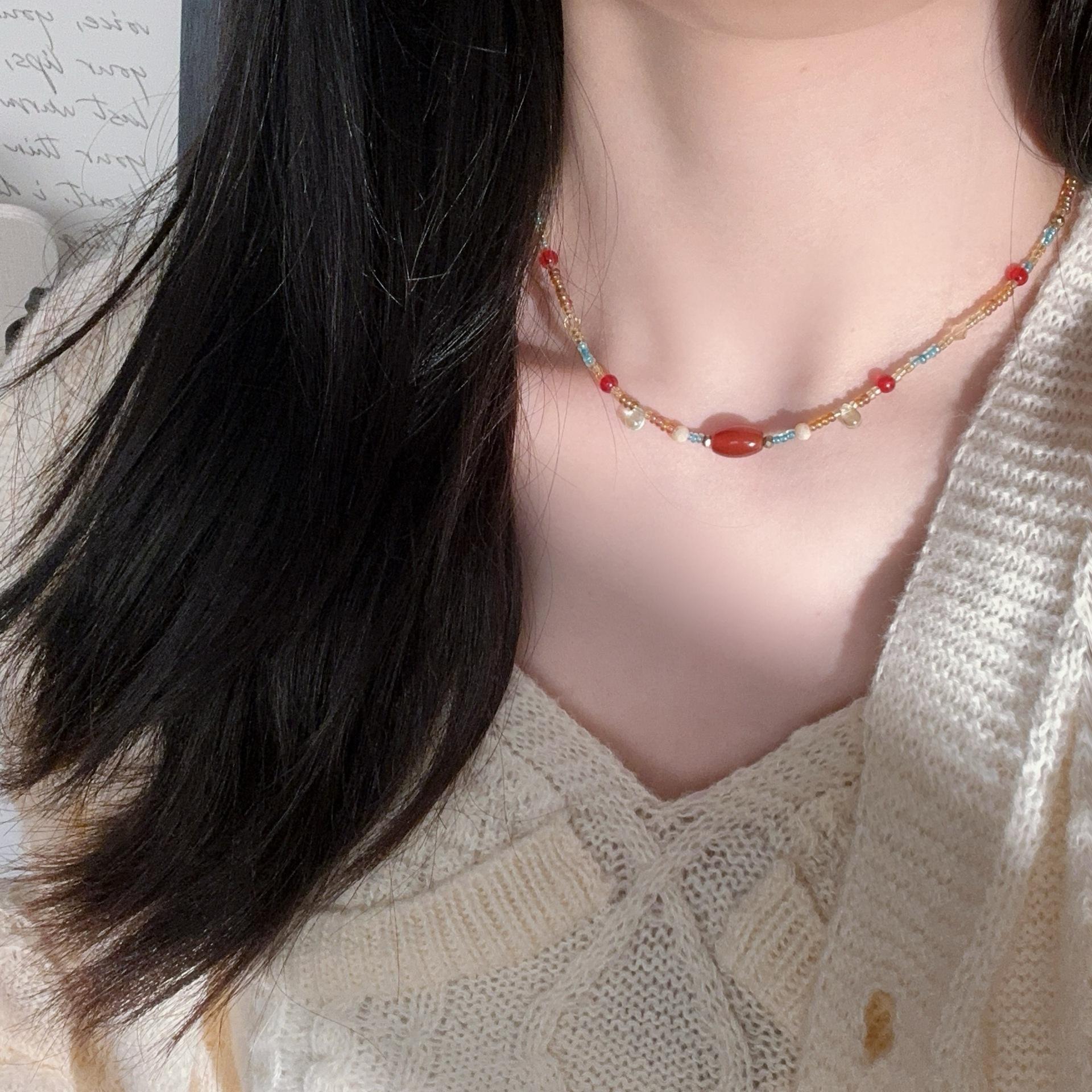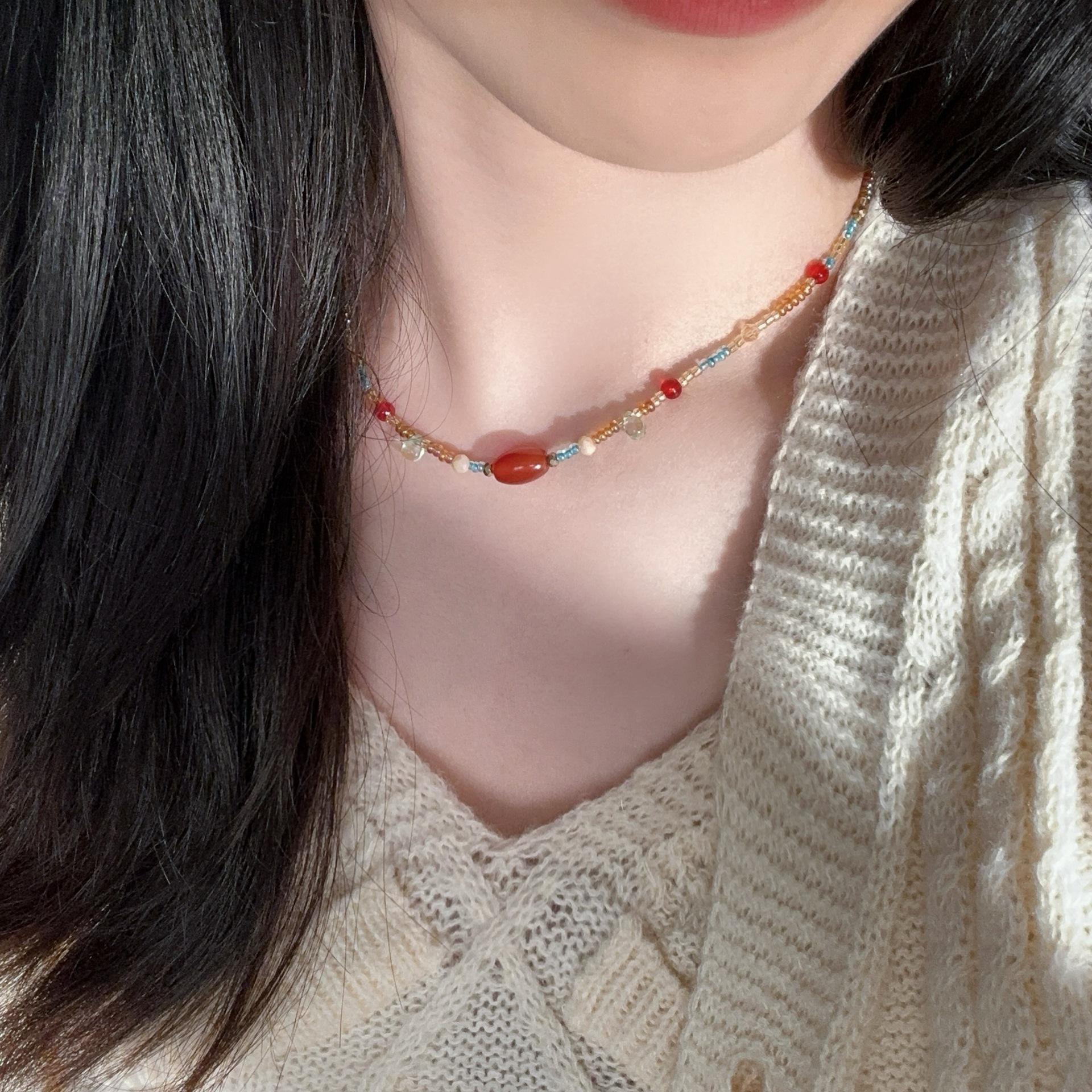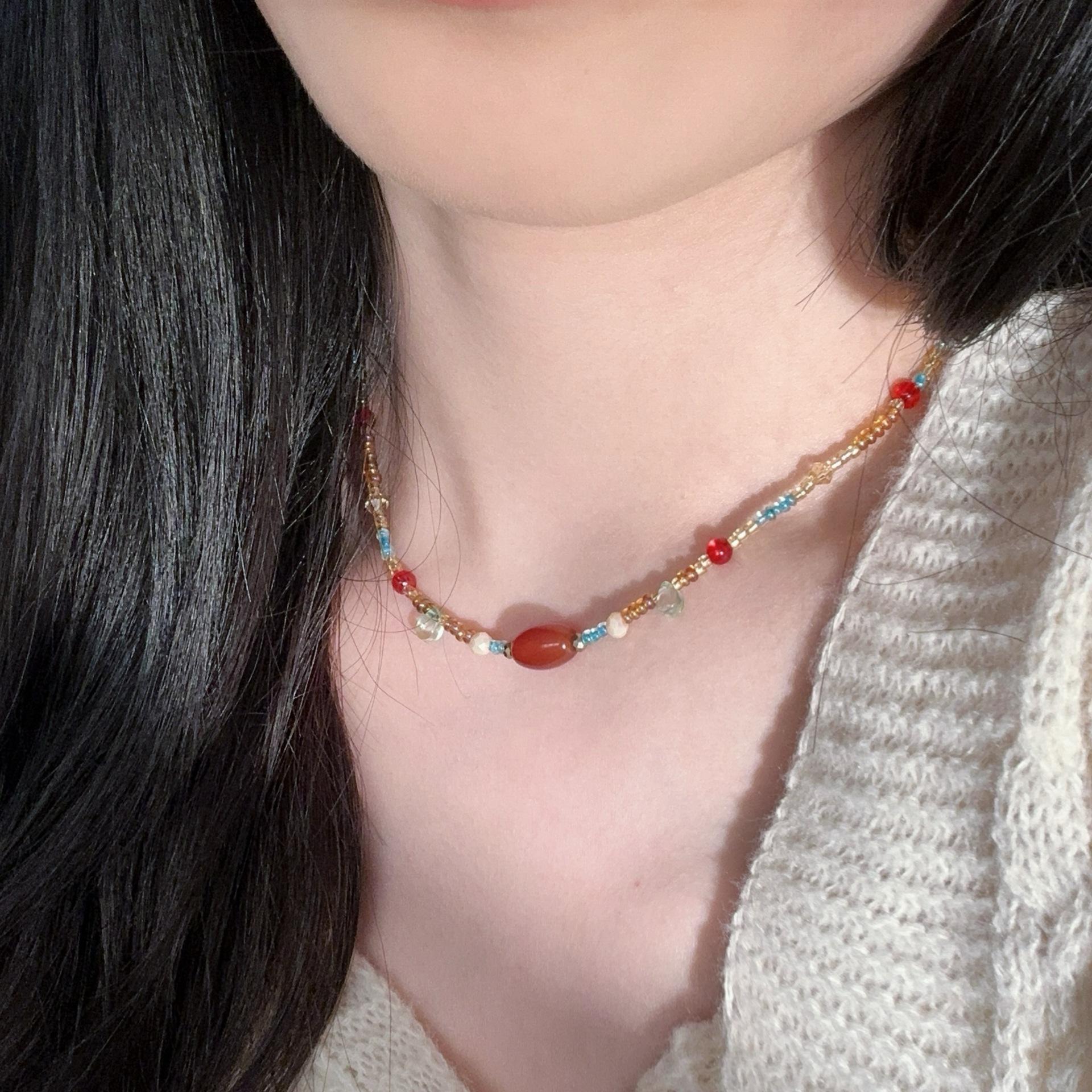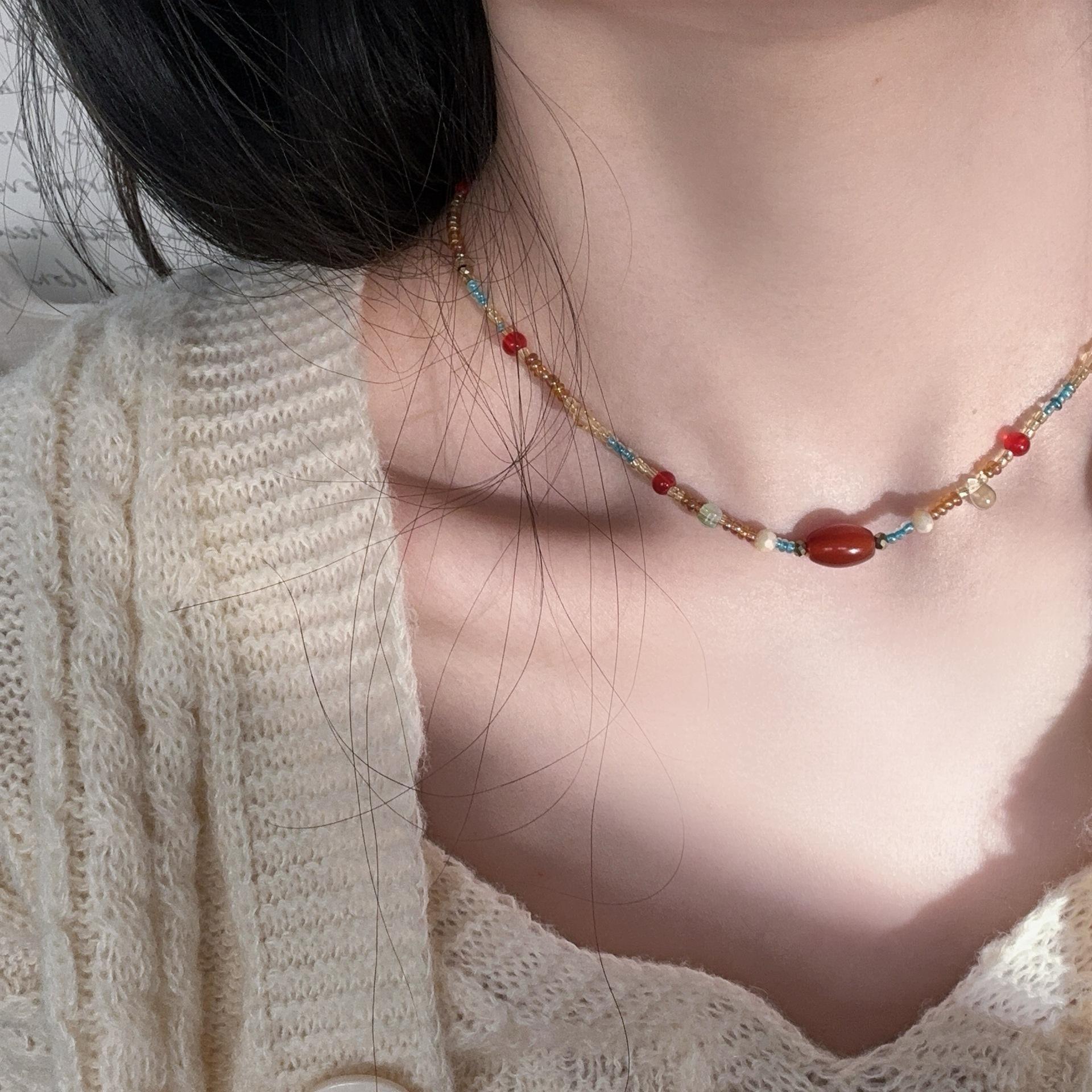 N1187 dunhuang beaded double layer necklace, N1186 sugar cube cat eye beaded necklace, N1166 pearl elephant sand gold necklace