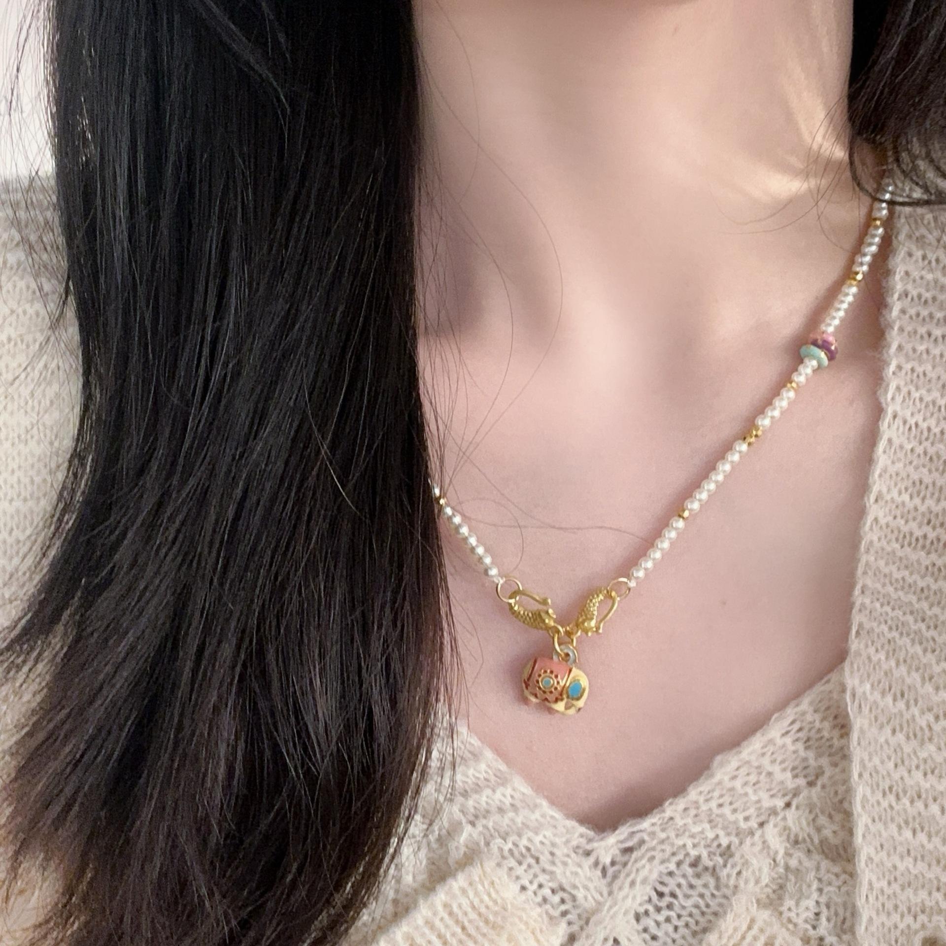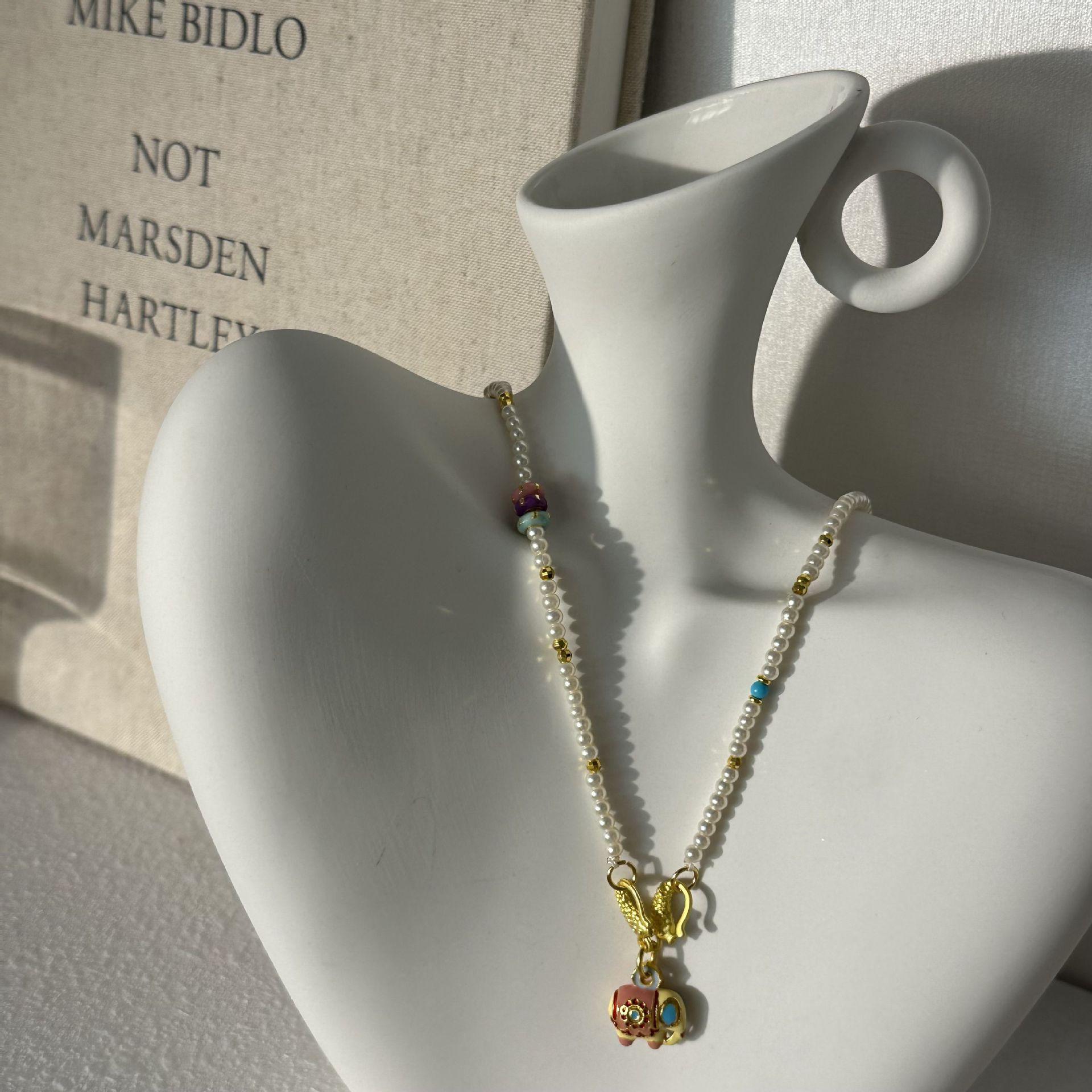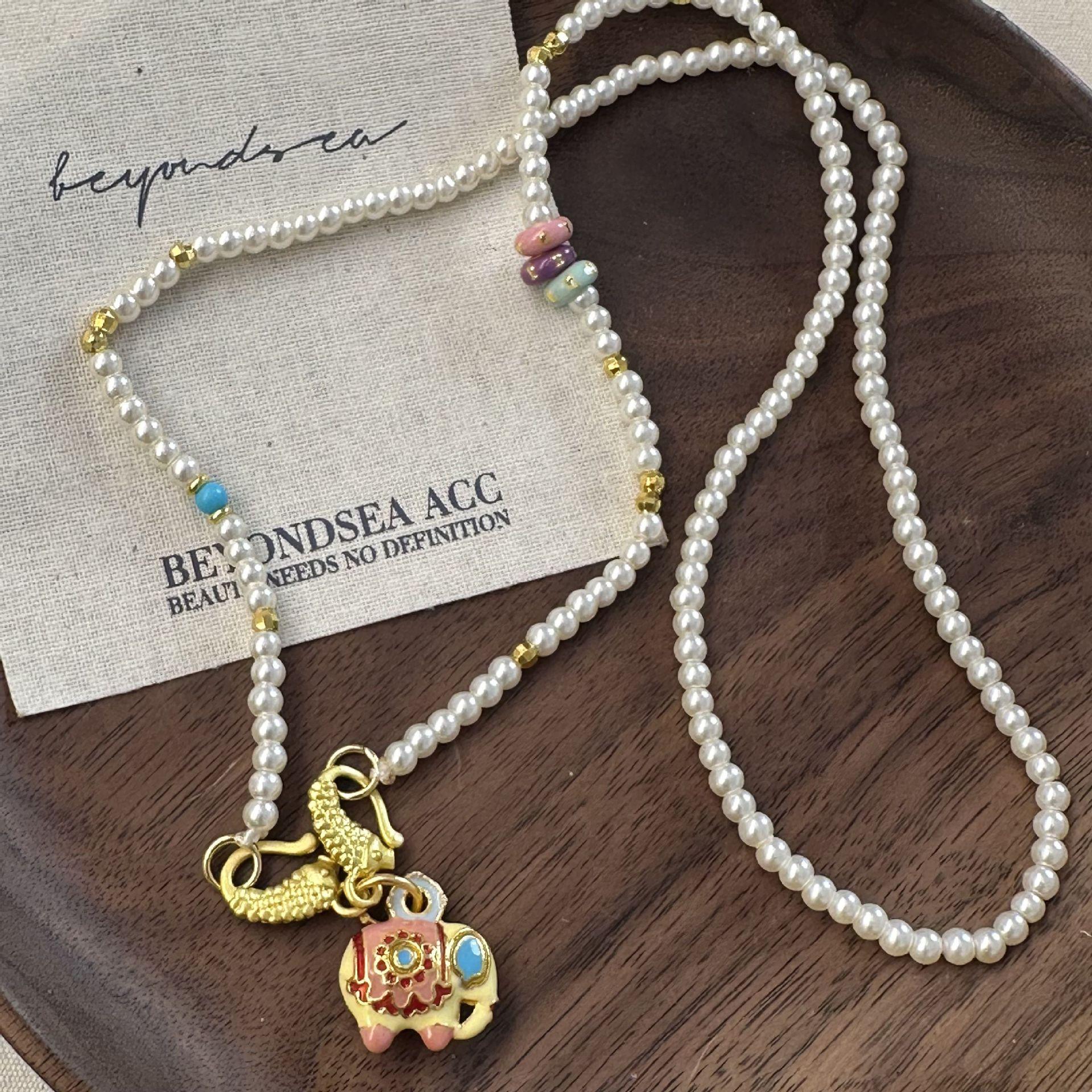N1166 pearl elephant sand gold necklace
