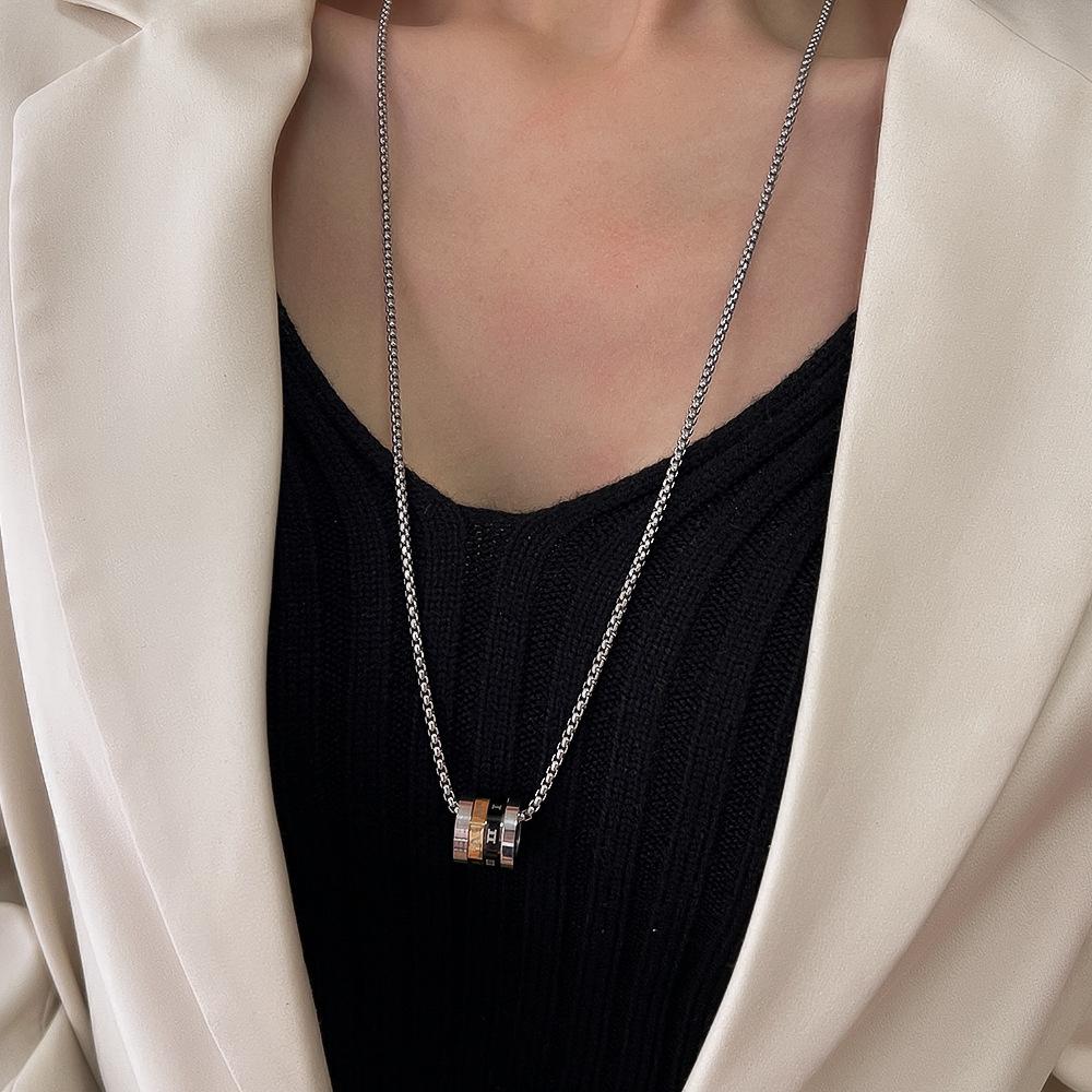 Collar de titanio romano combinable de estilo coreano, colgante de celebridad de Internet de hip hop, cadena de lana, accesorios de joyería para parejas