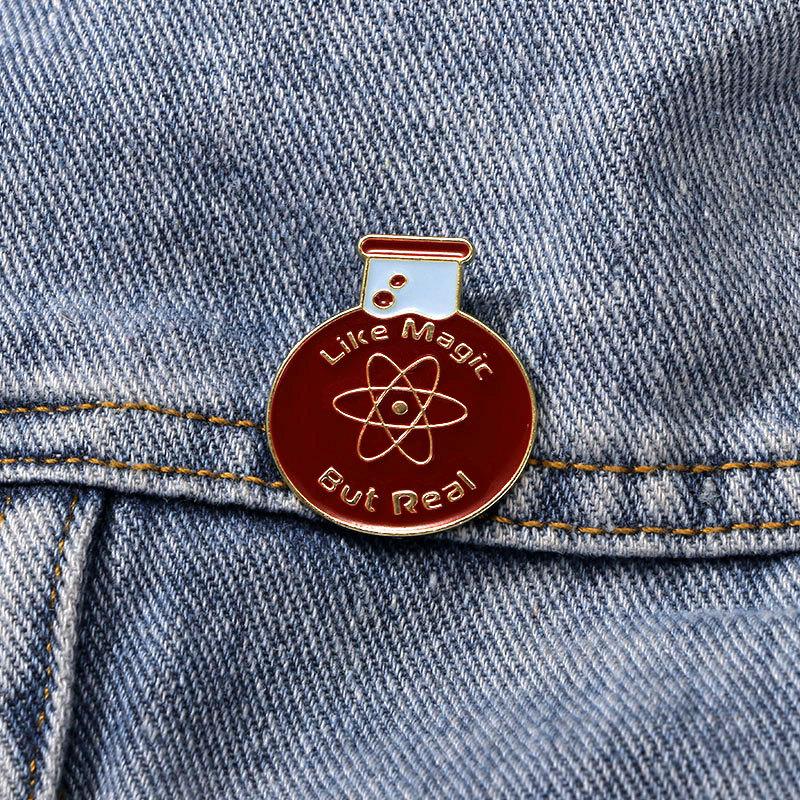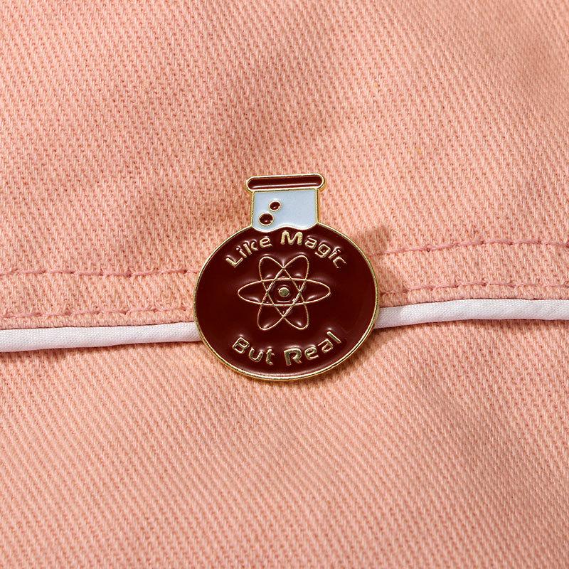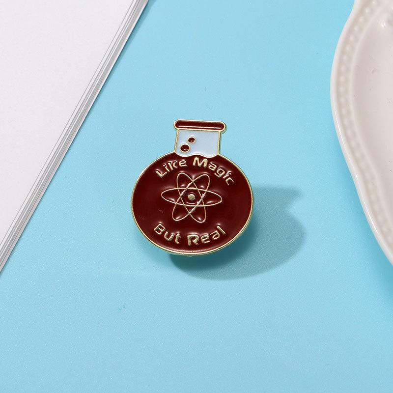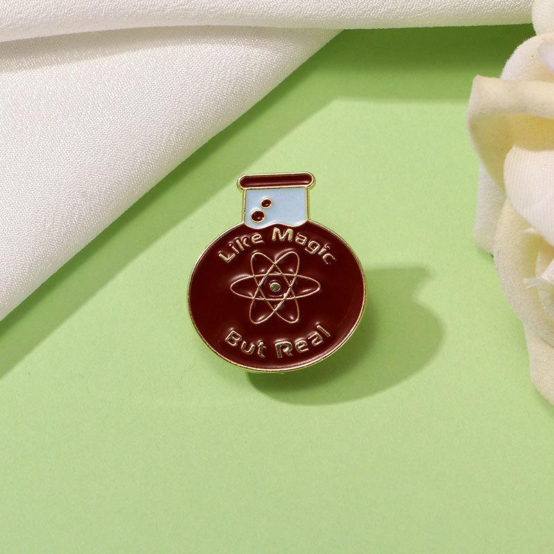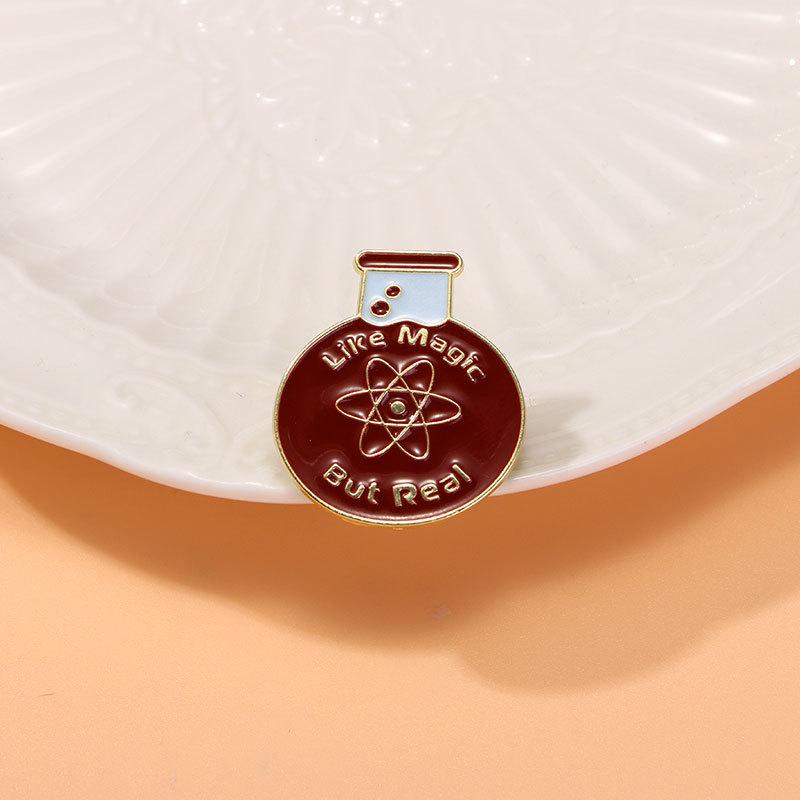 Broche de dibujos animados, insignia de aleación, vaso químico creativo, símbolo de letras inglesas, modelado de ropa, decoración, accesorios para mochilas escolares