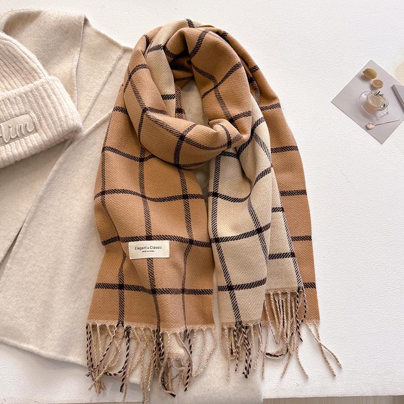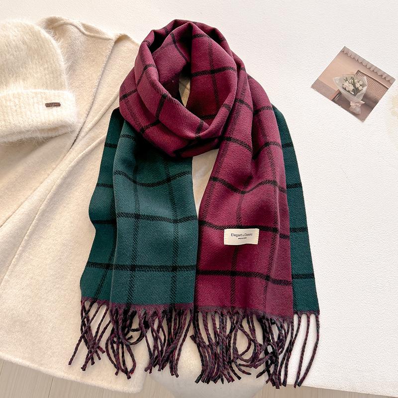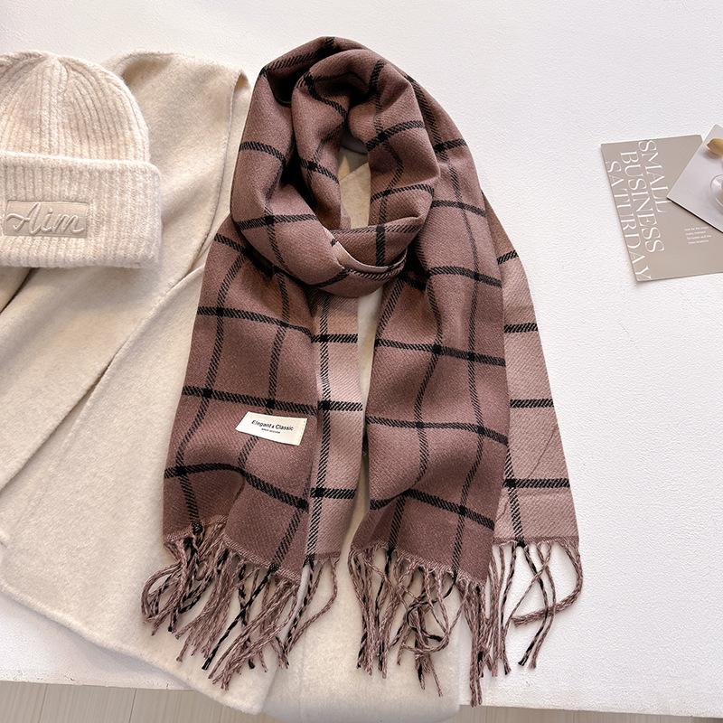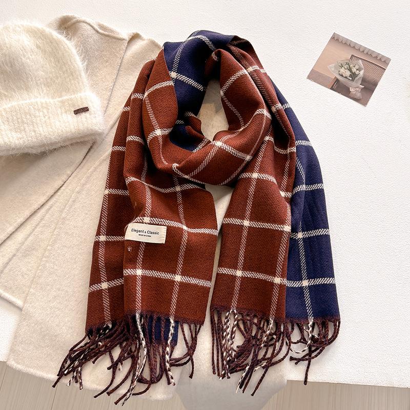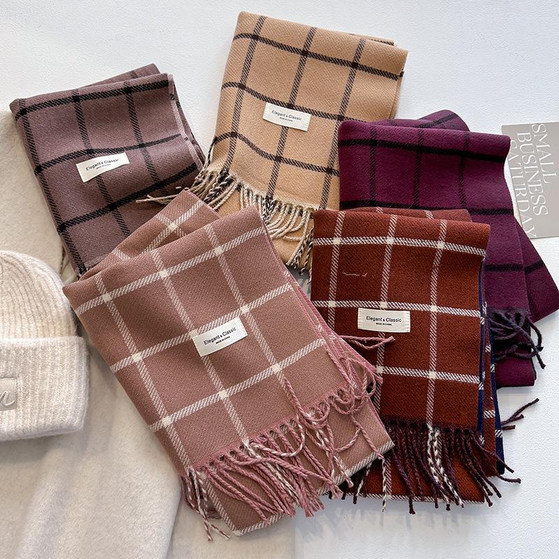Nueva bufanda de cachemira de doble cara a cuadros para otoño e invierno, sencilla, ligera, de lujo, cálida, con borlas, suave, cerosa y gruesa, para mujer.