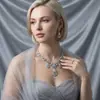 Aretes Collar Set Aguja de Plata Gota de Agua Incrustados con Gema de Diamante Lujo Ligero Francés Estilo Palacio Cadena Clavícula Joyería Nicho Venta al por Mayor