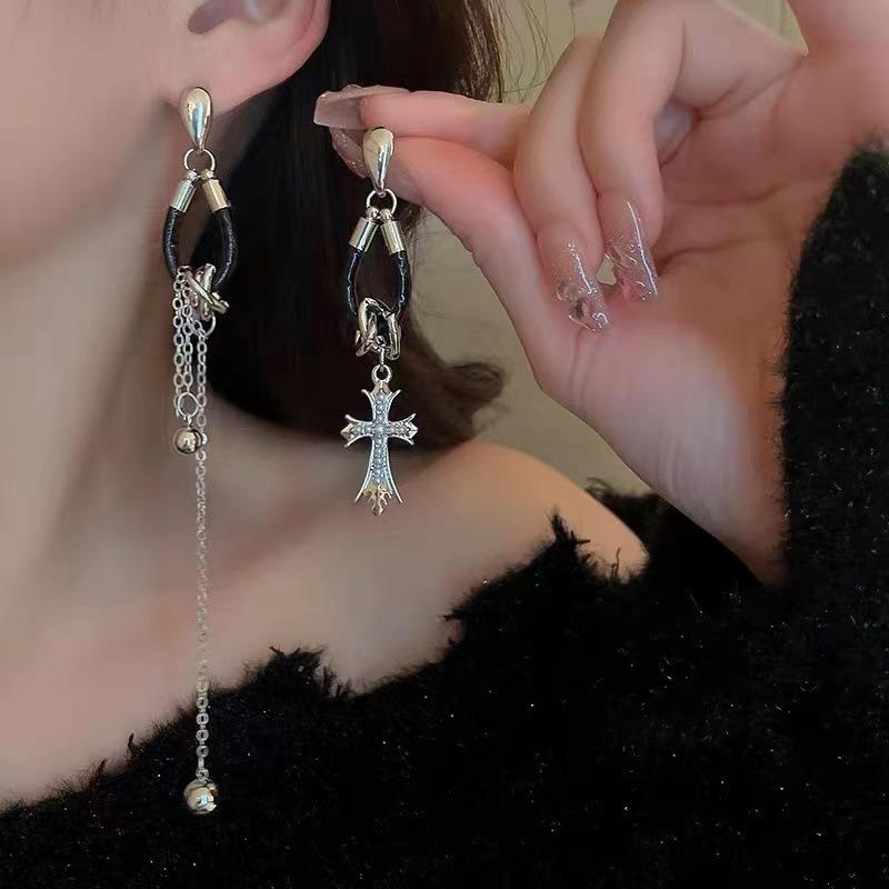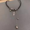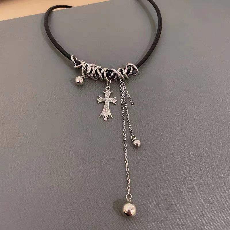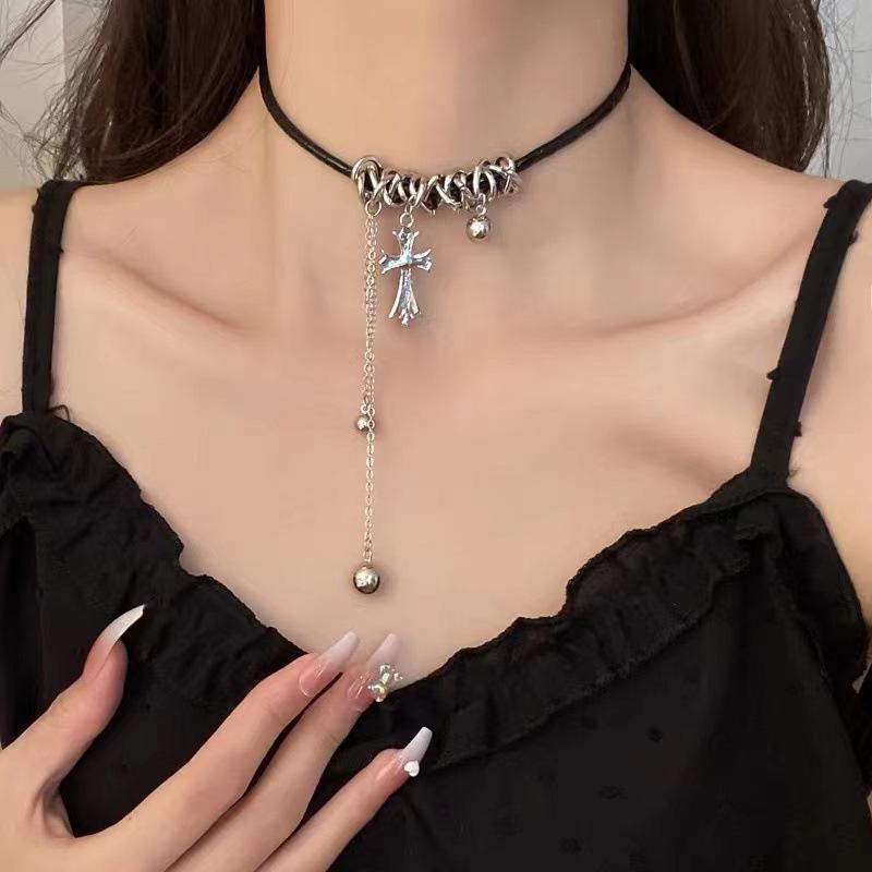 Collar Choker Simple de Chica Picante Negra Diseño Nicho Cadena Clavícula Collar de Cuero con Cruz para Mujer Estilo Punk