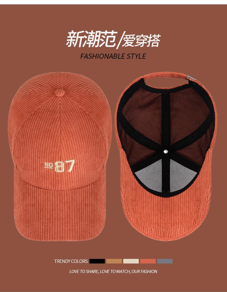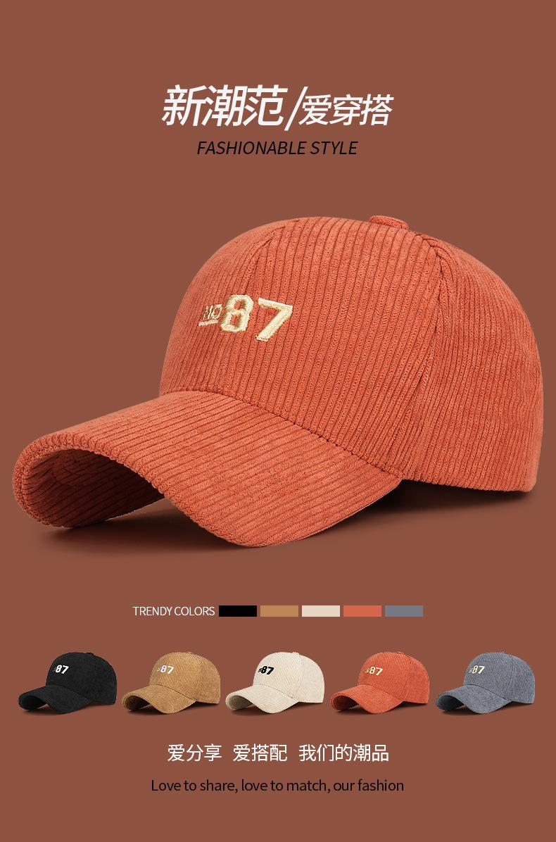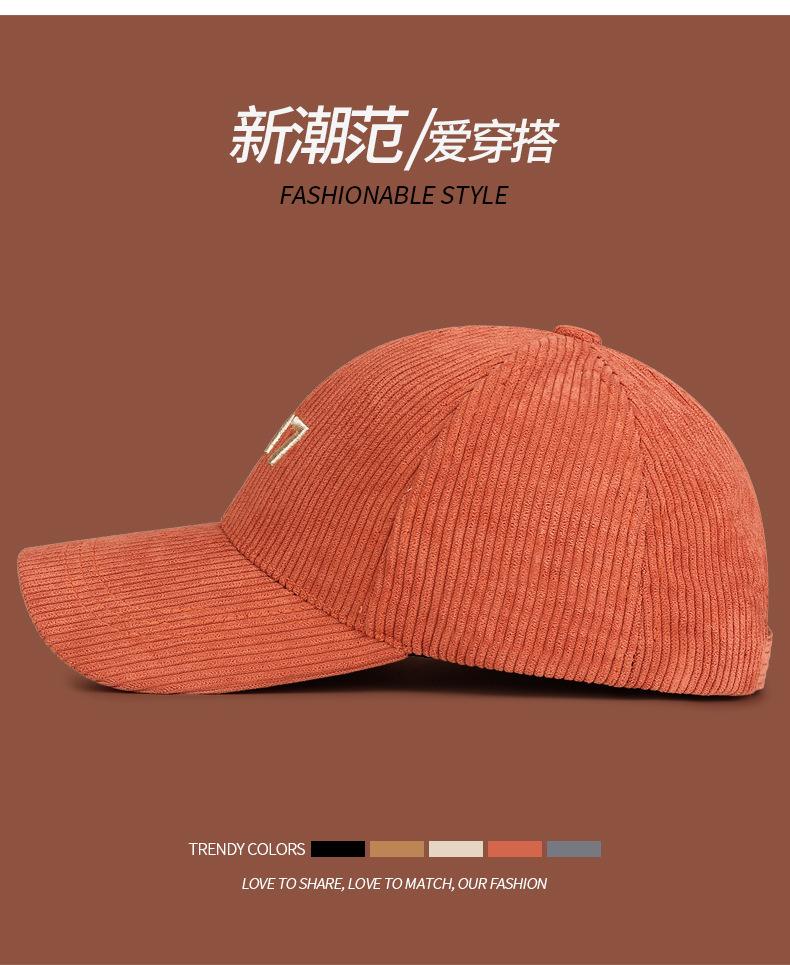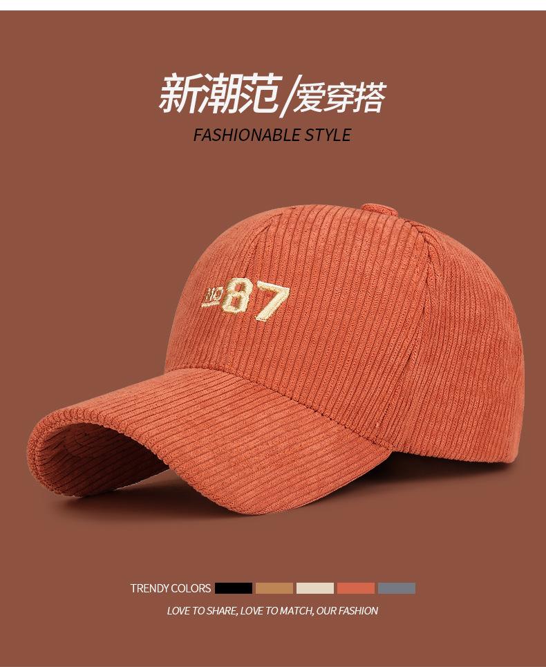 Gorra de béisbol de pana retro con bordado digital nueva para otoño e invierno, gorra casual con aleros curvos y parte superior dura para hombres y mujeres