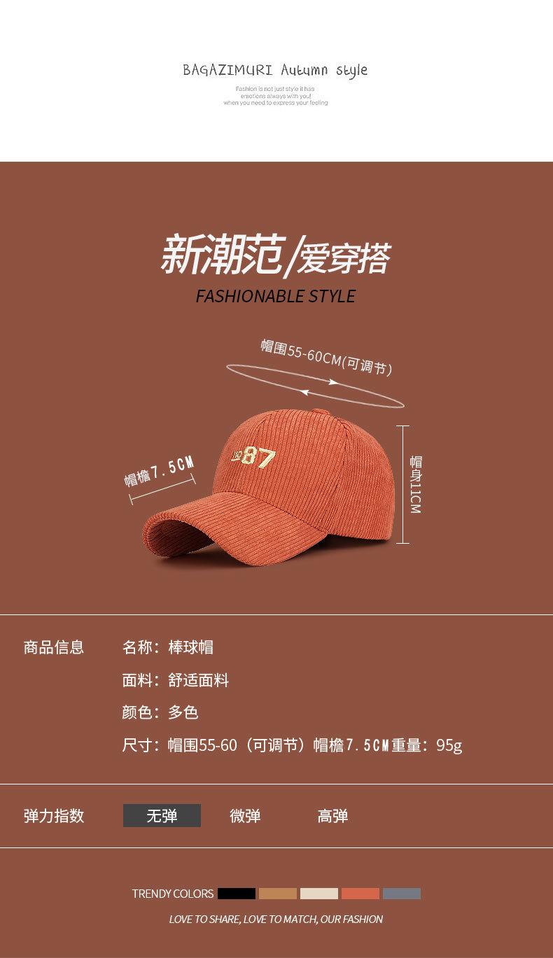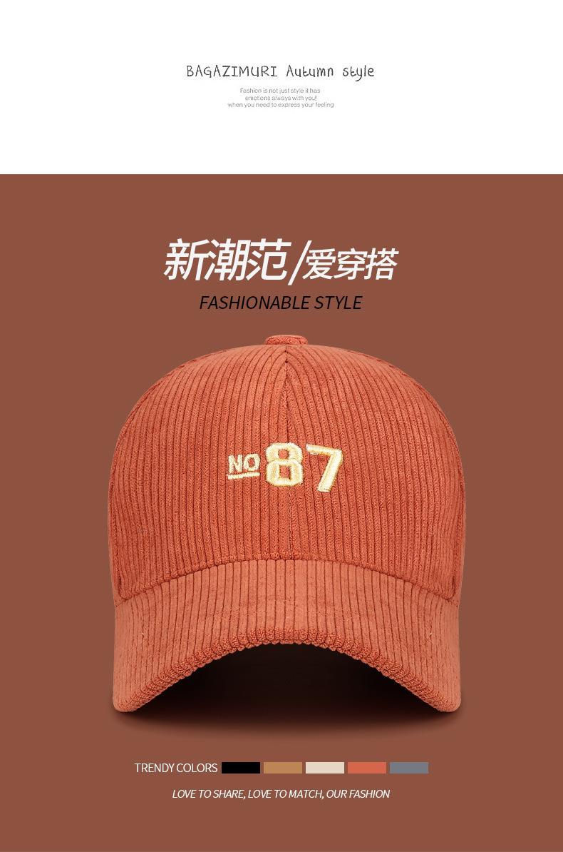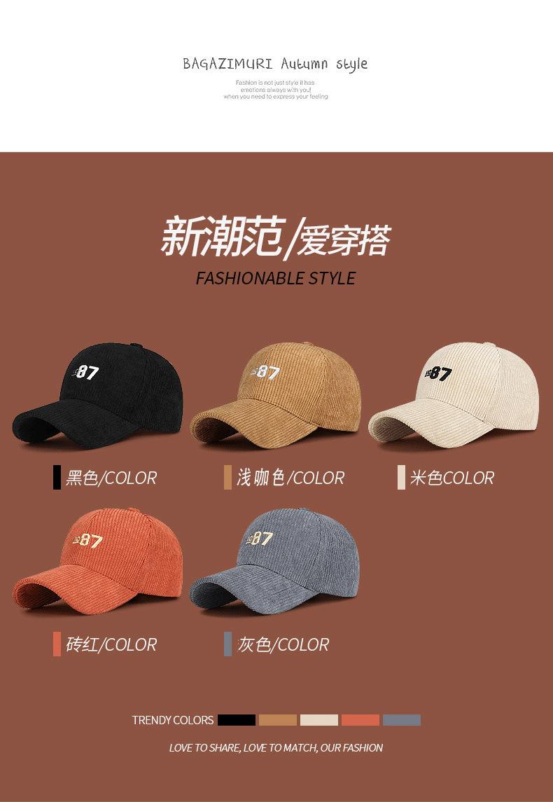 Gorra de béisbol de pana retro con bordado digital nueva para otoño e invierno, gorra casual con aleros curvos y parte superior dura para hombres y mujeres